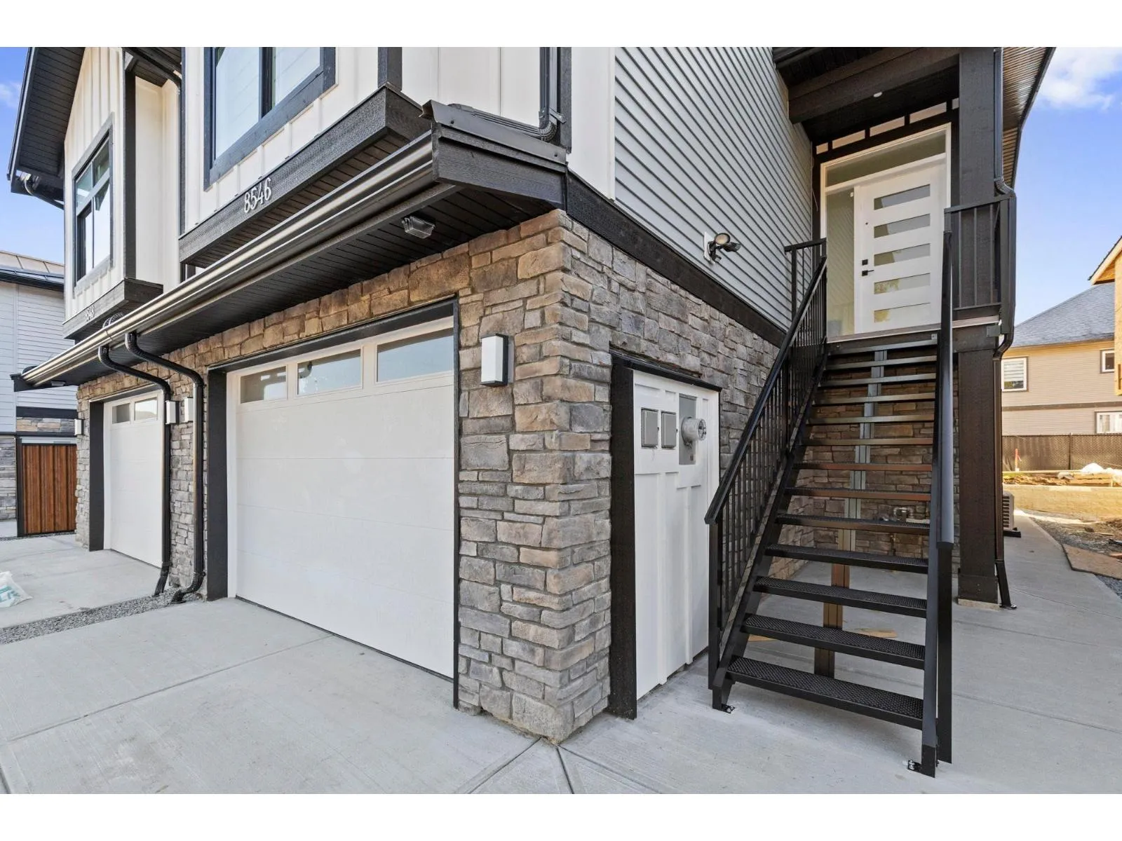 3 level 1/2 duplex with 1 bedroom suite and double garage! This unique floorplan offers modern kitchen with flat panel cabinetry and quartz countertops, great room with gas fireplace and Primary bedroom on the main floor. Top floor for children with 2 bedrooms, full bathroom and laundry! Lower level is ground level with 1 bedroom suite with separate entrance and own laundry (no stairs for your parents and no window wells, bright, all above ground) Long life metal roof plus metal fenced yard, double garage, huge driveway, heat pump/ac, all at an unbeatable price with no strata fees or rules! Better than a townhome, call today to view! (id:27476)