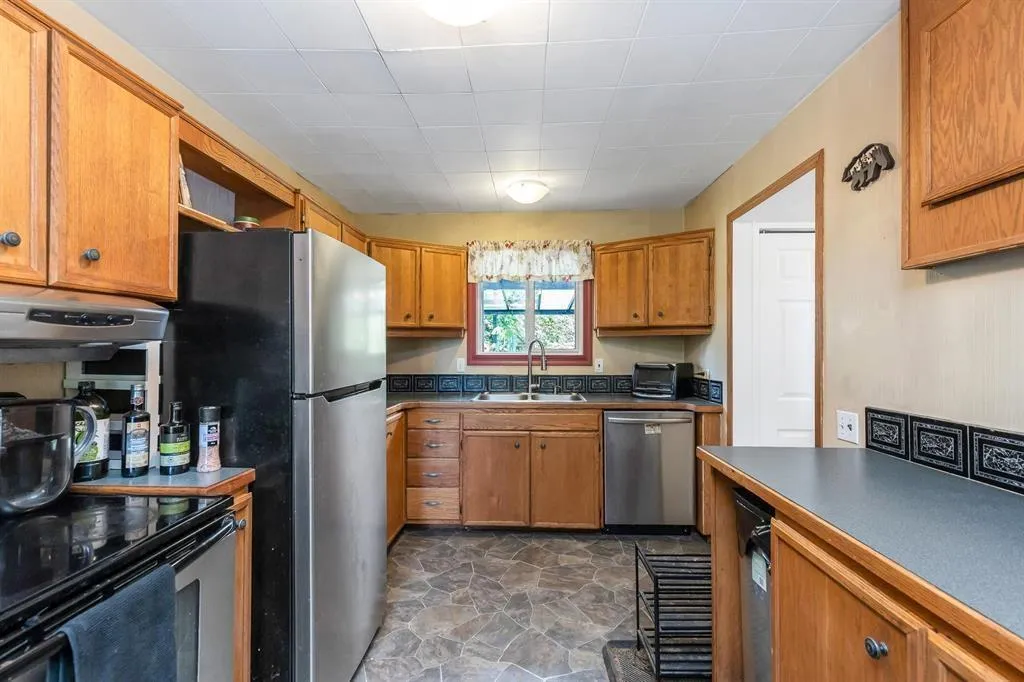 Investor/Developer wanted! OCP designated Future Employment Lands - prime for growth. This 3 bed, 2 bath rancher sits on a lush, private lot w/ extensive edible landscaping, walking trails & creekside serenity. Updated throughout: new perimeter drains, windows, upgraded plumbing, high water pressure, and more. Spacious 3rd bed features lounge/office area & ensuite. New cov'd back deck ideal for relaxing or entertaining. Wired for Shaw fiber. Close to schools, amenities & transit. Great holding prop w/ current comfort & future potential. City Open to ReZoning. (id:27476)