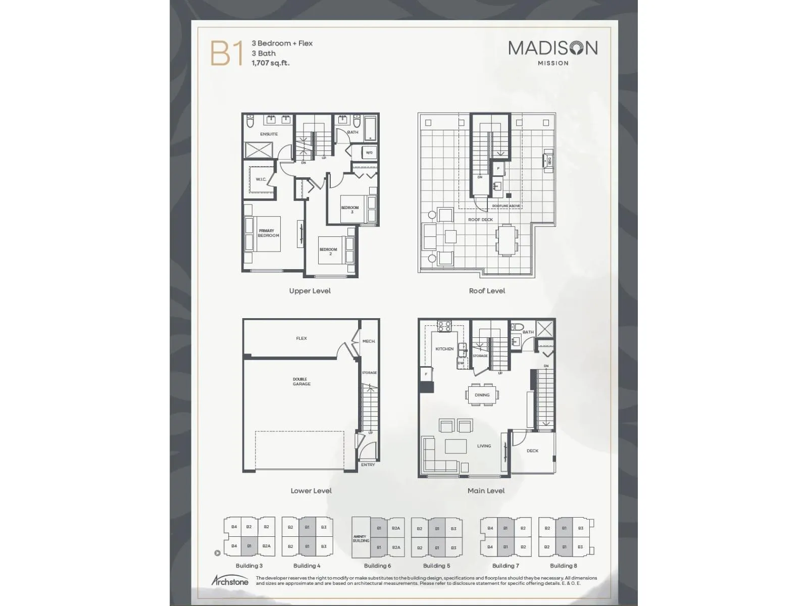 Modern Elegance & functionality is guaranteed at Madison, Central Mission's newest, upscale community. Located next to Albert McMahon school & Griner Park, Madison is a collection of 3/4 bedroom contemporary townhomes with both tandem & side-by-side garages. This 3 bed+flex room+roof top patio (B plan) has a sleek, modern kitchen opening up to a light & airy living/dining room. The primary bedroom has a luxurious ensuite with dual sinks, black hardware & wall to floor porcelain tile. Today's necessities with stainless steel (LG) appliances, quartz counters & forced air heat with a/c for your comfort & a flex room off the garage. HUGE roof top deck for entertaining, fenced yard & the 2 level amenity room is a great space to meet with family & friends. Call Today! (id:27476)