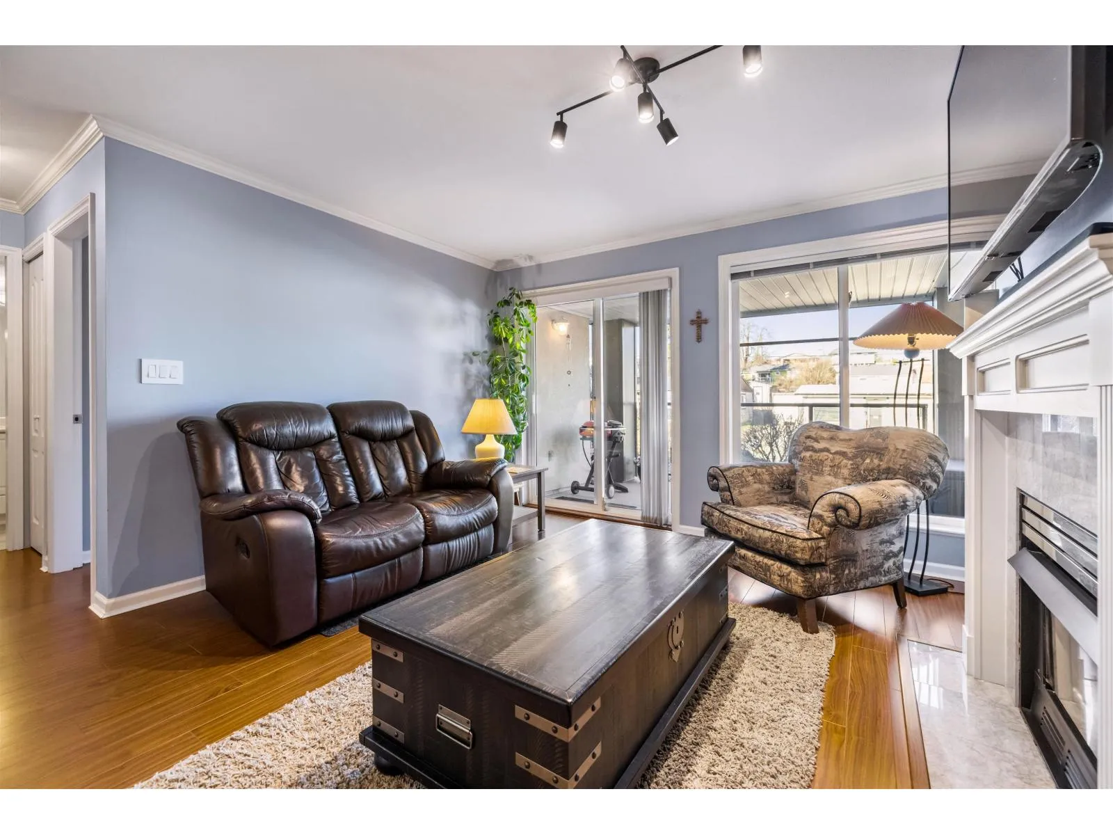 Welcome to the desirable Kathleen Court! This immaculate 2 bedroom , 2 bath 1050 sq ft condo is a perfect place to call home. Great split floor plan with bedrooms on opposite sides. Gas fireplace in living room with sliding door leading to large covered deck to enjoy your morning coffee. Laminate floors in living & bedrooms. White kitchen with stainless steel dishwasher & stove. Extra room for storage & new microwave. In suite laundry room with full size washer & dryer. Complex is well managed with amenity room/guest suite & stunning valley Views. Secured underground 2 side by side parking spots for your full size truck & massive storage locker for all your storage needs! Footsteps to all levels of schools & downtown with shops & restaurants. Mr. & Mrs. Clean live here! (id:27476)