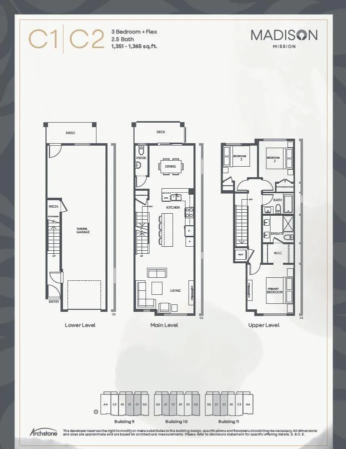 Modern Elegance & functionality is guaranteed at Madison, Central Mission's newest, upscale community. Located next to Albert McMahon school & Griner Park, Madison is a collection of 3/4 bedroom contemporary townhomes with tandem & side-by-side garages. The centre of this 3 bed (C plan) is a sleek kitchen with a HUGE island AND breakfast bar with living & dining areas either side. Primary bedroom has a luxury ensuite with dual sinks, black hardware & wall to wall porcelain tile. Homes have today's necessities with stainless steel (LG) appliances, quartz counters & tile. Forced air heat & a/c for your comfort & a fenced yard for your kids & pets. The 2 level amenity room is a great space to meet with family & friends. Call Today! (id:27476)