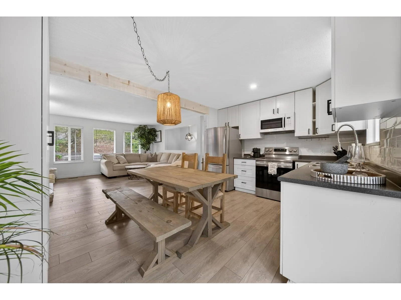 Welcome to this bright and updated 4-bedroom, 2-bathroom basement-entry home on a spacious corner lot in Mission. The main floor offers three bedrooms, one bathroom, modern flooring throughout, a light-filled open-concept living and dining area, and an updated kitchen. The lower level features a 1 bed 1-bath in-law suite with shared laundry-ideal for extended family, mortgage helper, or just extra living space! Enjoy ample parking, a fully fenced backyard, and side yard access for RV parking or recreational toys. Conveniently located near schools, shopping, dining, recreation, with quick access to Highway 7 and Highway 11 for easy commuting. (id:27476)