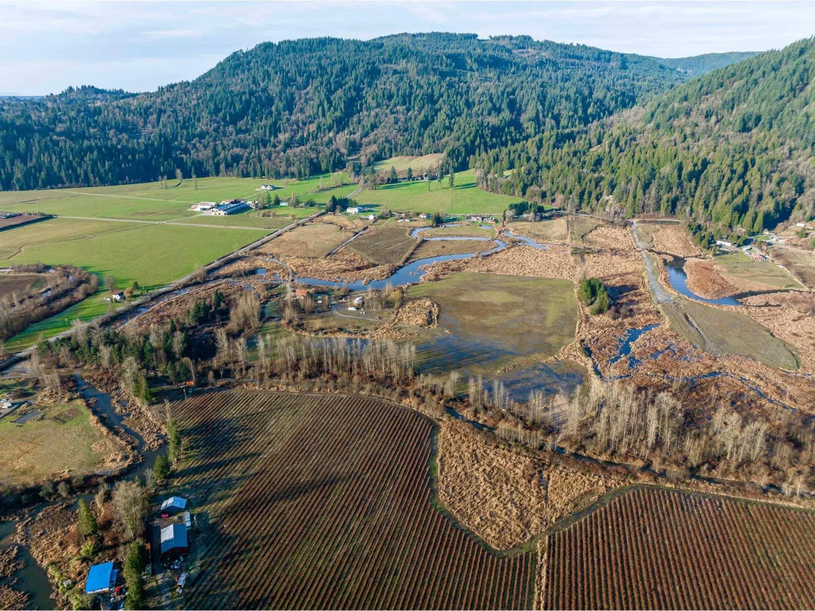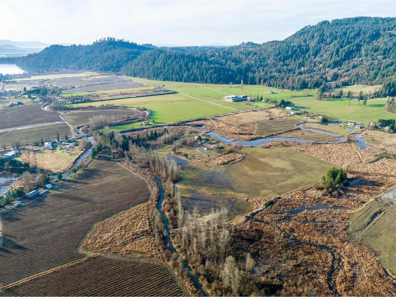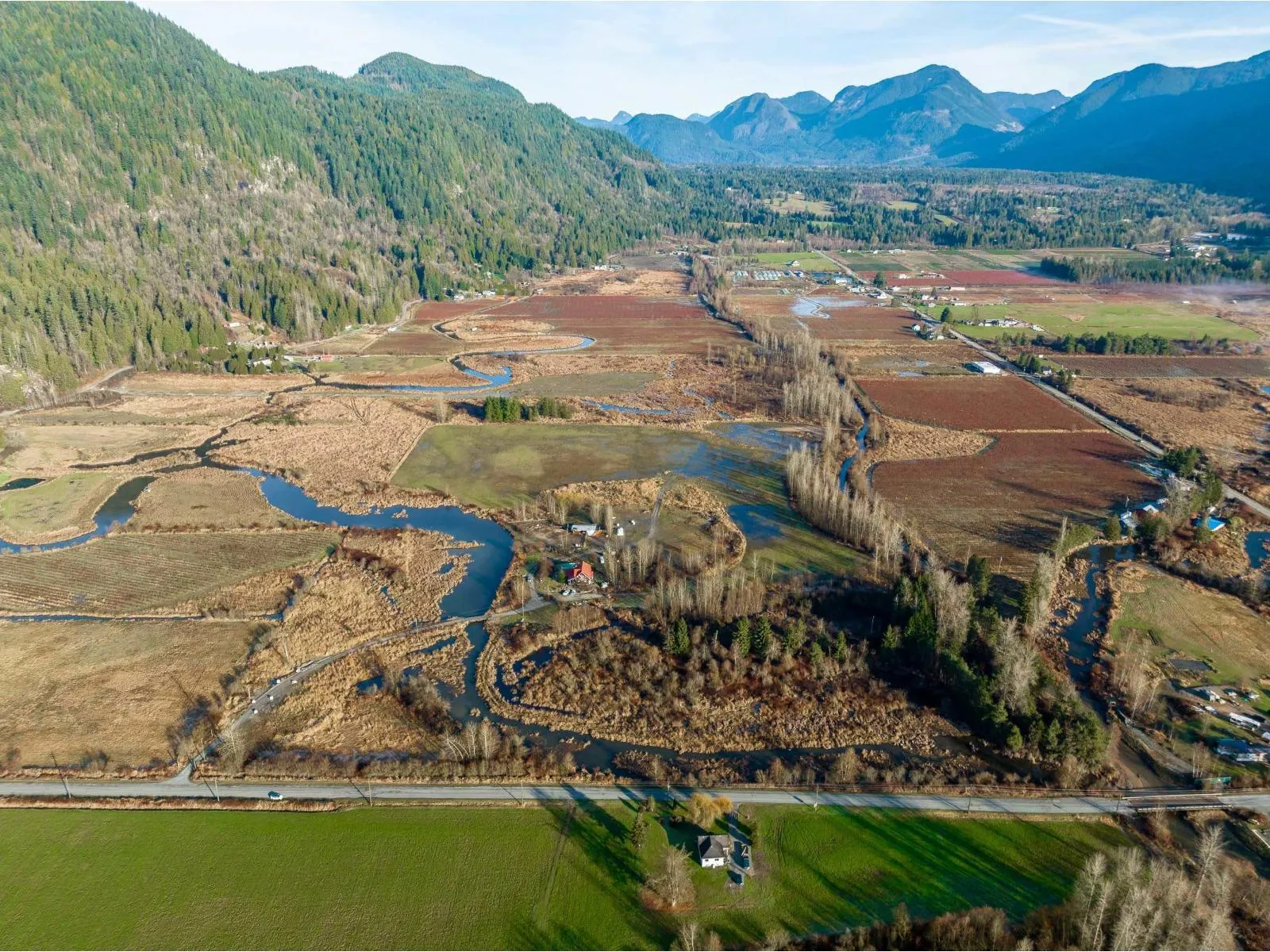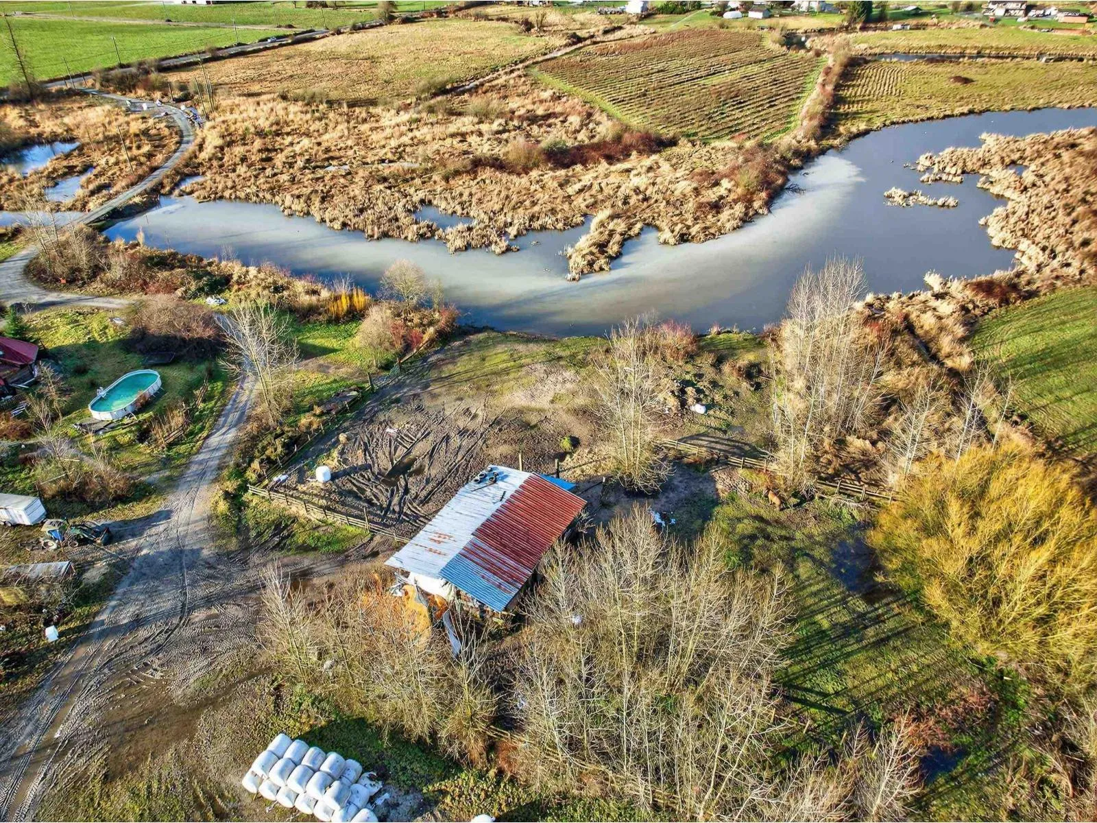 Exceptional 40-acre property featuring flat, usable land with CITY WATER, approximately 25 acres of productive hay fields, two horse paddocks, and a 45' x 30' outbuilding with hay storage and run-in stalls. The expansive acreage offers outstanding versatility and long-term value. Complementing the land is a custom-built 5-bedroom log home showcasing fir log construction, soaring 22-foot cathedral ceilings, and warm ashwood flooring throughout. Ceramic tile finishes the living room and kitchen, both with radiant in-floor heating, extending into the bathrooms for added comfort. The upper bathroom features marble tile and a classic cast iron clawfoot tub (id:27476)