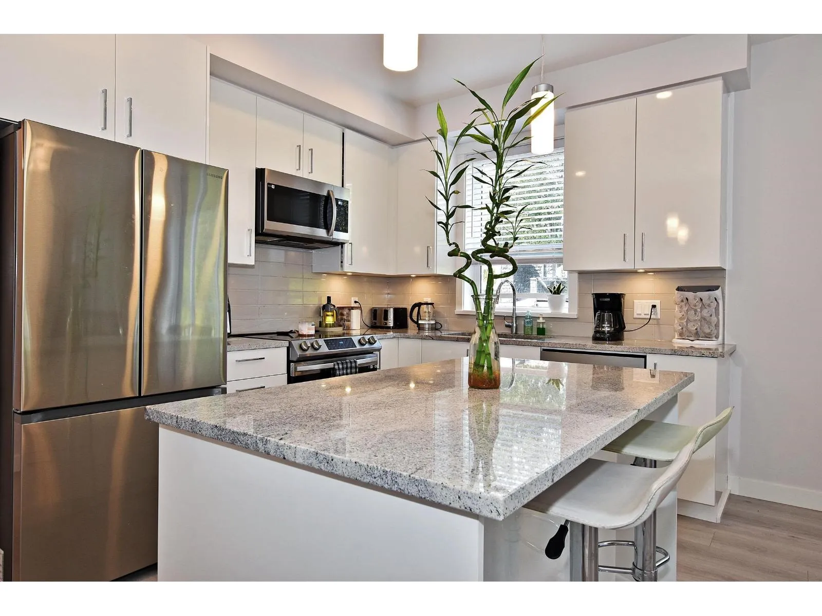 WELCOME TO THE PRESTON! LARGEST UNIT IN THE COMPLEX! Urban luxury lifestyle in the city!!! This first-floor unit has two bedrooms, two bathrooms, a den, and two parking spaces. Adorable as can be + move-in ready!. Award-winning Redekop Faye constructed a well-liked condo in the West Coast style. Gorgeous laminate flooring, well furnished with designer paint, and lots of windows letting in natural light. High-end S/S appliances, granite worktops, and an undermount sink are features of the kitchen's contemporary white cabinets. A timeless bathroom featuring a soaker tub, mosaic tile, LED lighting, and white quartz counters. Added bonus: sound-absorbing walls and ceilings. Amenities; kids play area,yoga studio,clubhouse,game room,dog washing station, home office hub, green belt on both sides. (id:27476)