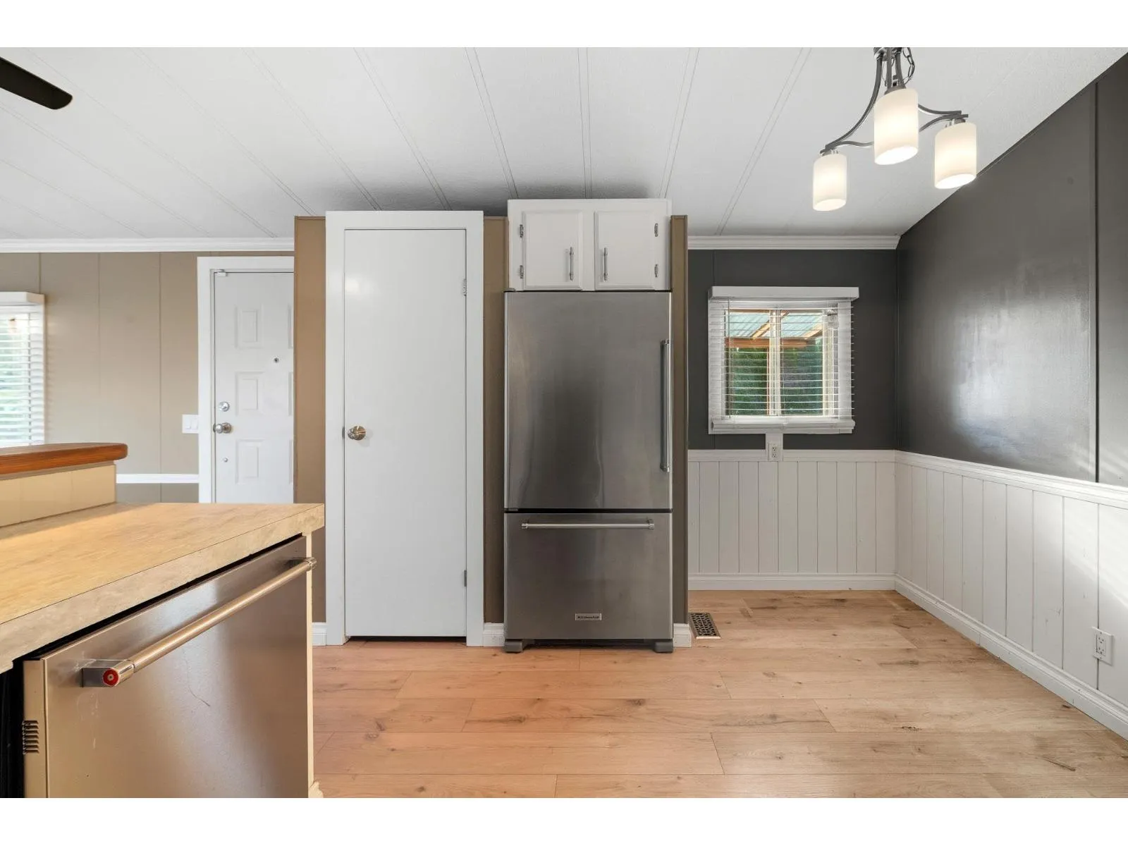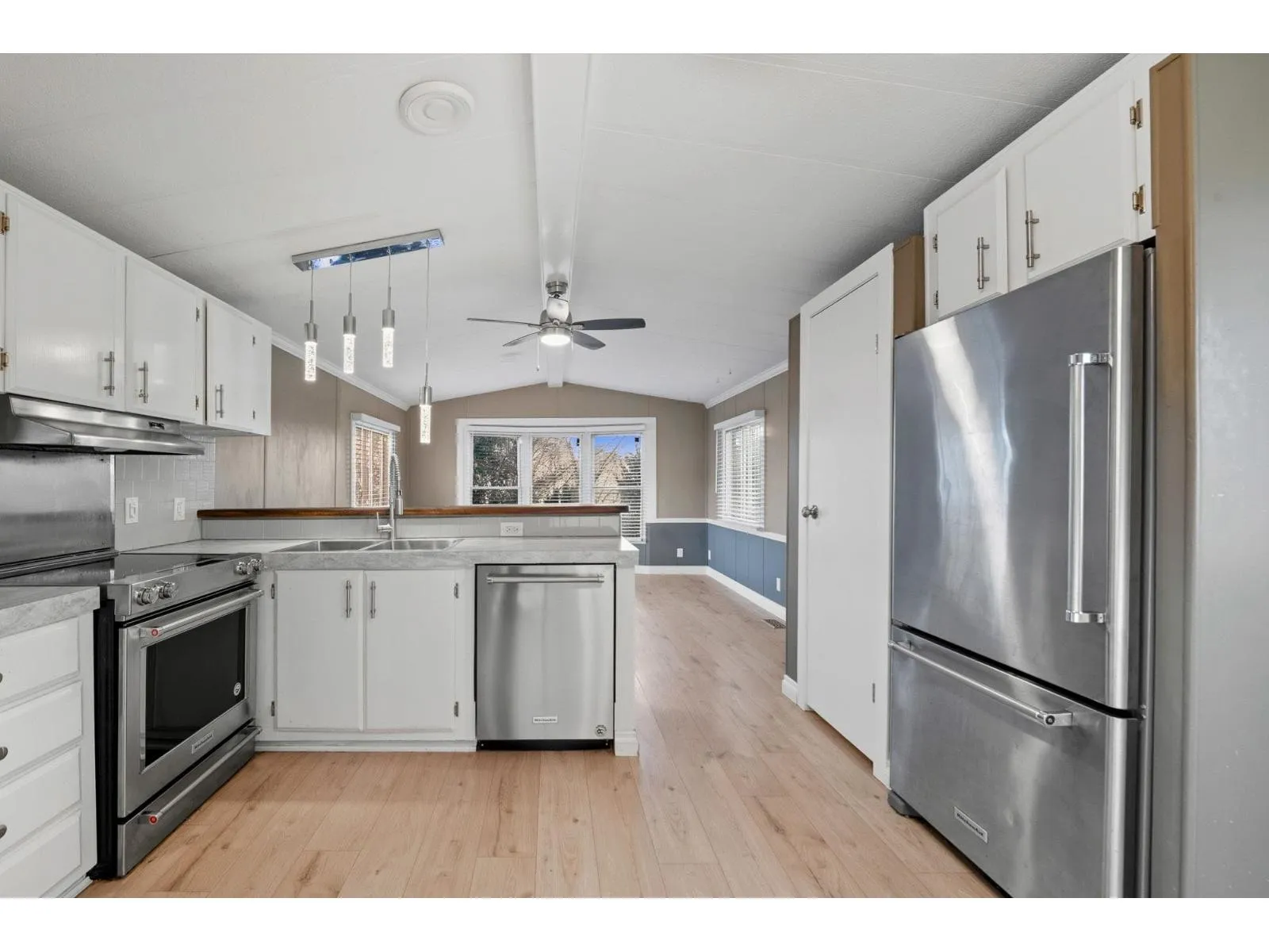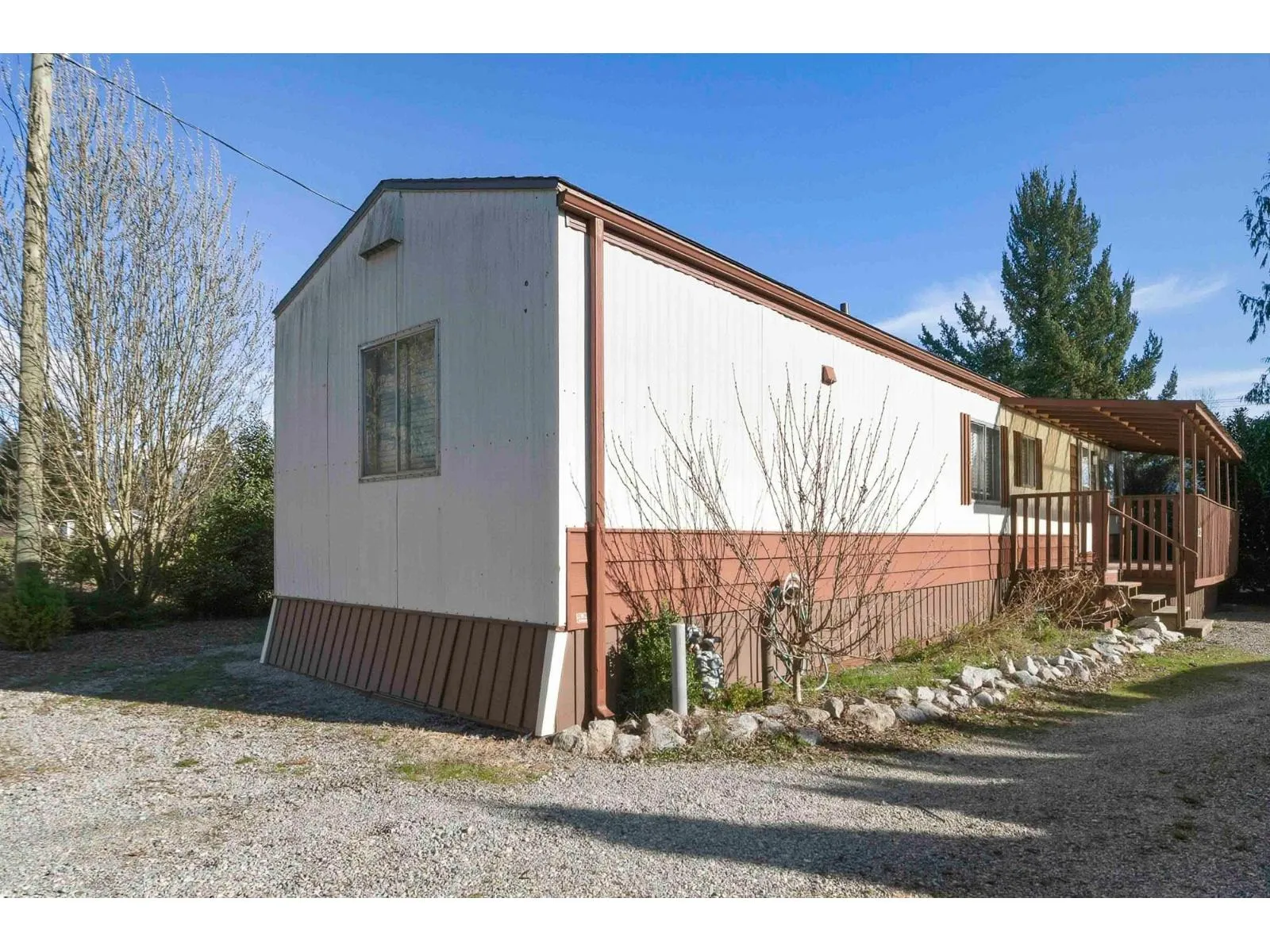 This 55+ mobile park is located in the very desirable community of Hatzic......just minutes to downtown Mission and the West Coast Express. This home sits on a cement pad and has been tastefully renovated in 2021 with S/S appliances, white front loading washer & dryer, kitchen countertops, 2 A/C units, laminate flooring through-out, chrome & brushed light fixtures, ceiling fan, window blinds & modern paint colours. This home also boasts a new roof done in 2021, hurricane anchors for extra support and a heater so the pipes won't freeze. The outside showcases a big front deck for lounging, landscaped yard back yard for entertaining, enclosed back porch for the extras, back deck for BBQing and a storage shed for all the yard tools. Don't miss out and call today for your private showing! (id:27476)