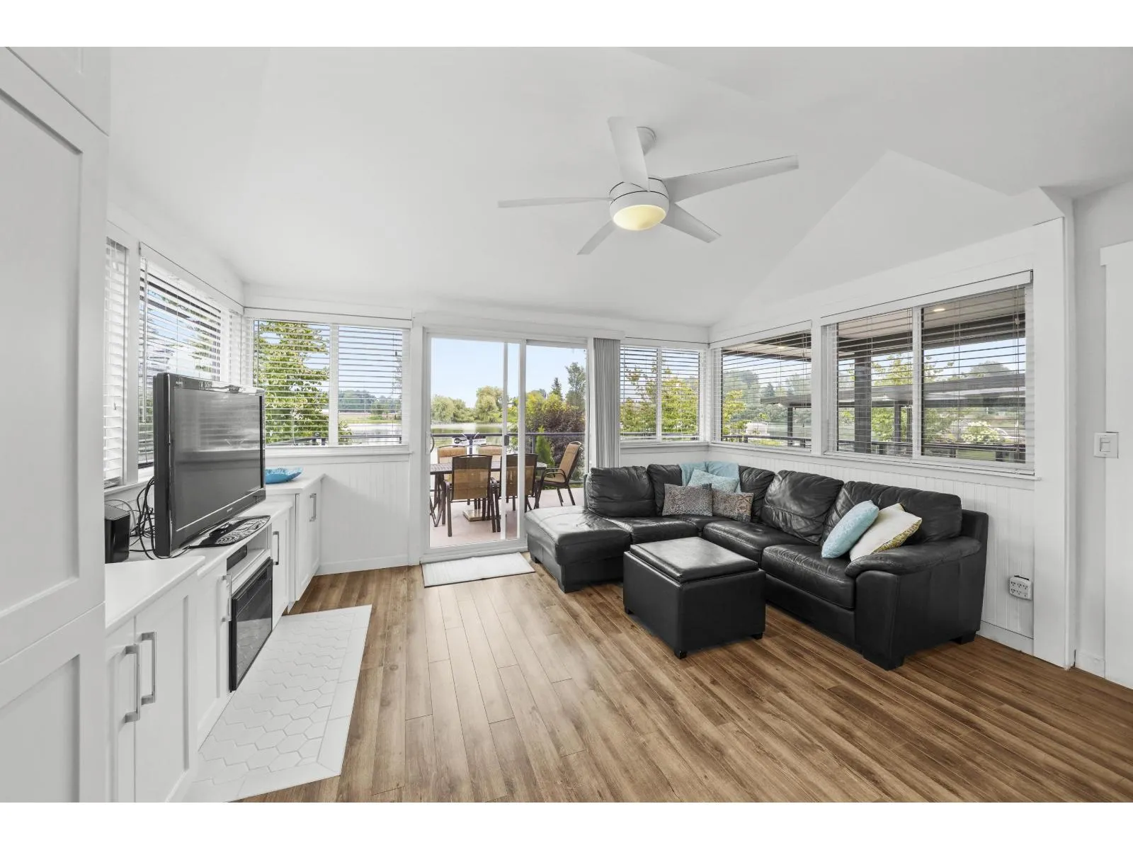 TRUE LAKEFRONT ESCAPE!!! Turnkey & fully furnished. Swim, boat, water ski, fish, paddleboard, or relax from this beautifully renovated cottage SITTING DIRECTLY ON THE SHORE OF HATZIC LAKE w/ PANORAMIC VIEWS of both water & mountains! RENOS include: New roof, new hot water tank, new custom cabinets/storage, fully renovated bathroom & kitchen, lighting, flooring, quartz counters, s/s appliances, new windows w/screens & blinds, exterior doors, massive partially covered deck overlooking lake, concrete foundation, new electric, new plumbing, electric fireplace! BONUSES: pickleball court, 2 boat launches, boat storage/parking, beach (swimming) area, playground, bike track, basketball court, Club House, golf carts allowed & Wifi. Includes HUGE concrete pad for RV with full 30AMP hookup & septic! (id:27476)