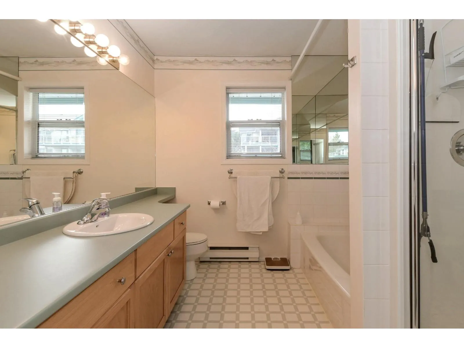 Terrific location - EDWARDS ESTATES is a quality, gated, 55+ complex.2 large bdrms with 2 full bathrooms - Upper floor end unit has lots of windows, and is very bright. Including an Acorn stairlift for those who need help getting up the stairs or for helping bring up the groceries. Large sundeck has hook up for natural gas barbeque - great for entertaining. Including in-suite laundry and an attached garage with direct access to your unit. The complex has a games room with shuffle board, a library and a guest suite. Lots of parking available. (id:27476)