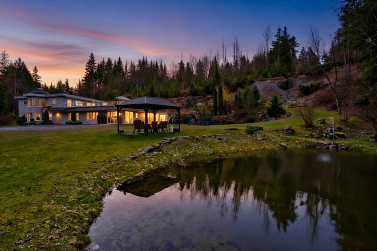 Truly one of a kind multi-generational estate on 2.72 acres in Mission! Castle-like custom build with Turret, 5,273 sqft home w/ 8 bedrooms & 6 bathrooms. Tucked behind lush greenery & gates w/ lazy river, pond, fire pit, garden, biking trails & play structure for kids. Built for 3 families w/ flexible suites for living or income! (Downstairs) 3-bed suite w/ full bath + (unfinished ensuite) massive open great room & in-floor heating throughout. (Entry level) 2-bed 2-bath suite w/ great room. (Upper) 3 beds, main bath & ensuite, great room & 1,700+ sqft deck w/ walkouts. Elevator, Instant hot water, 1-yr furnace with A/C, clean well water, septic 10yrs (pumped/yrly) (Outdoors) Workshop, 8x8 powered bunkhouse, RV parking, 20x40 paved tent area, 15x20 paved pad. Endless options, Call Today! (id:27476)