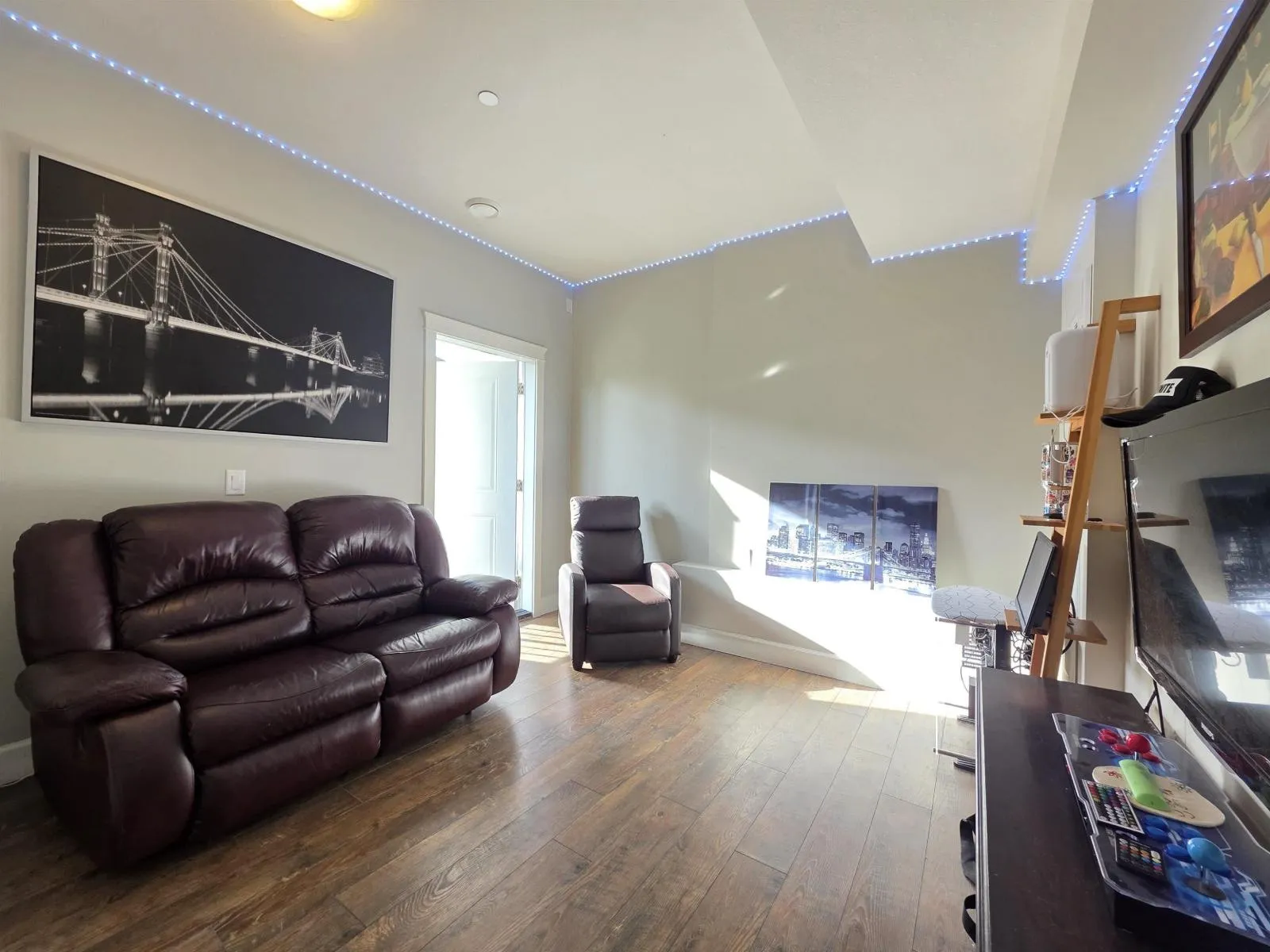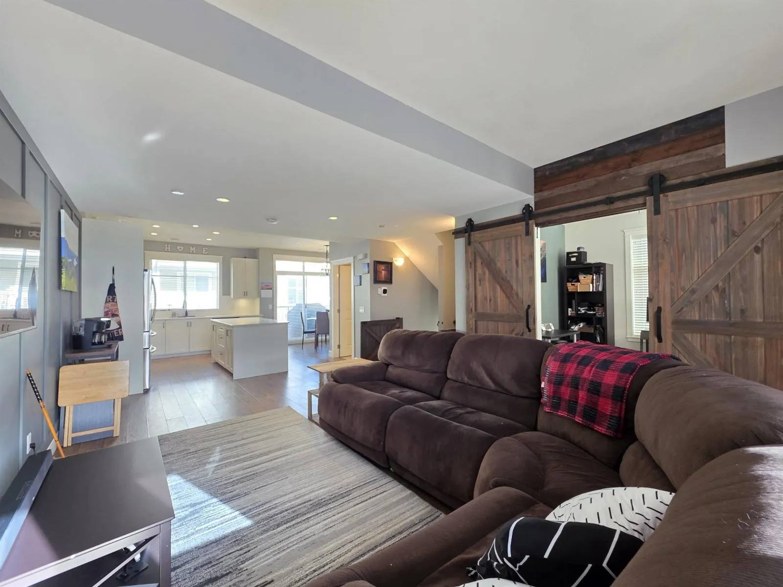 Welcome to Southwynd! This beautiful south-facing corner unit offers exceptional flexibility with up to potentially 5 bedrooms. Featuring 3 spacious bedrooms on the upper level, a bedroom/den on the lower level, and an office/den/bedroom off the main floor, this home is ideal for families of all sizes. Bright and modern with a functional layout, stylish updates, and a gourmet kitchen. Recent improvements include a new hot water tank, A/C, some fresh paint, updated fixtures, and a custom feature wall. Located in a well-maintained, landscaped community close to amenities, schools, and parks. (id:27476)