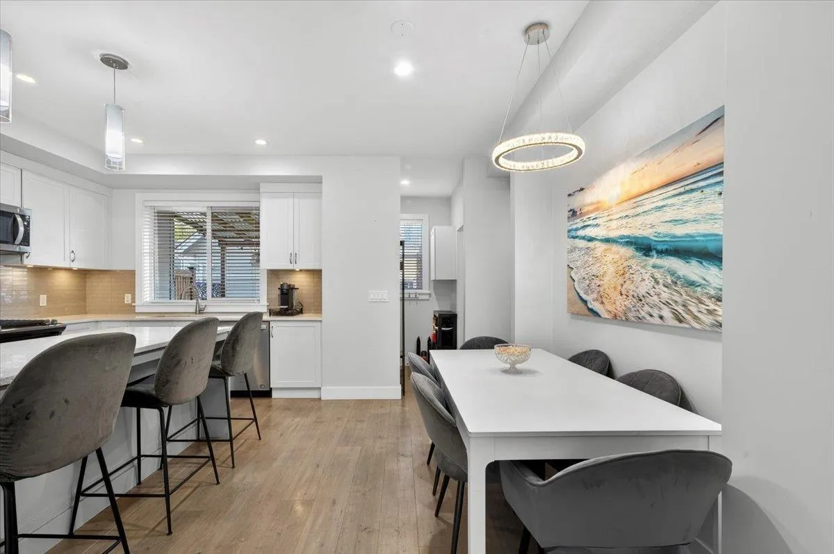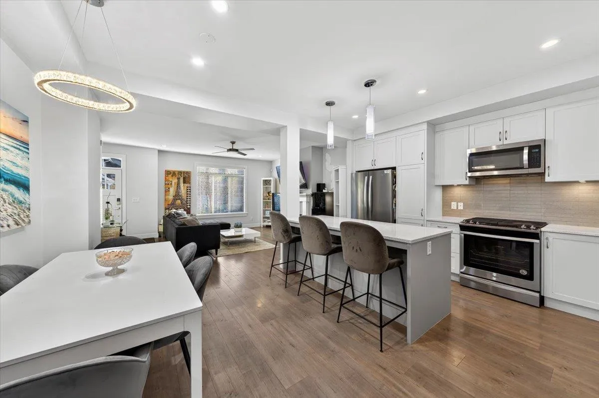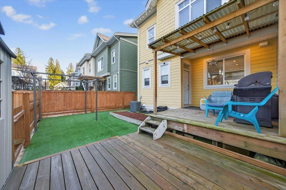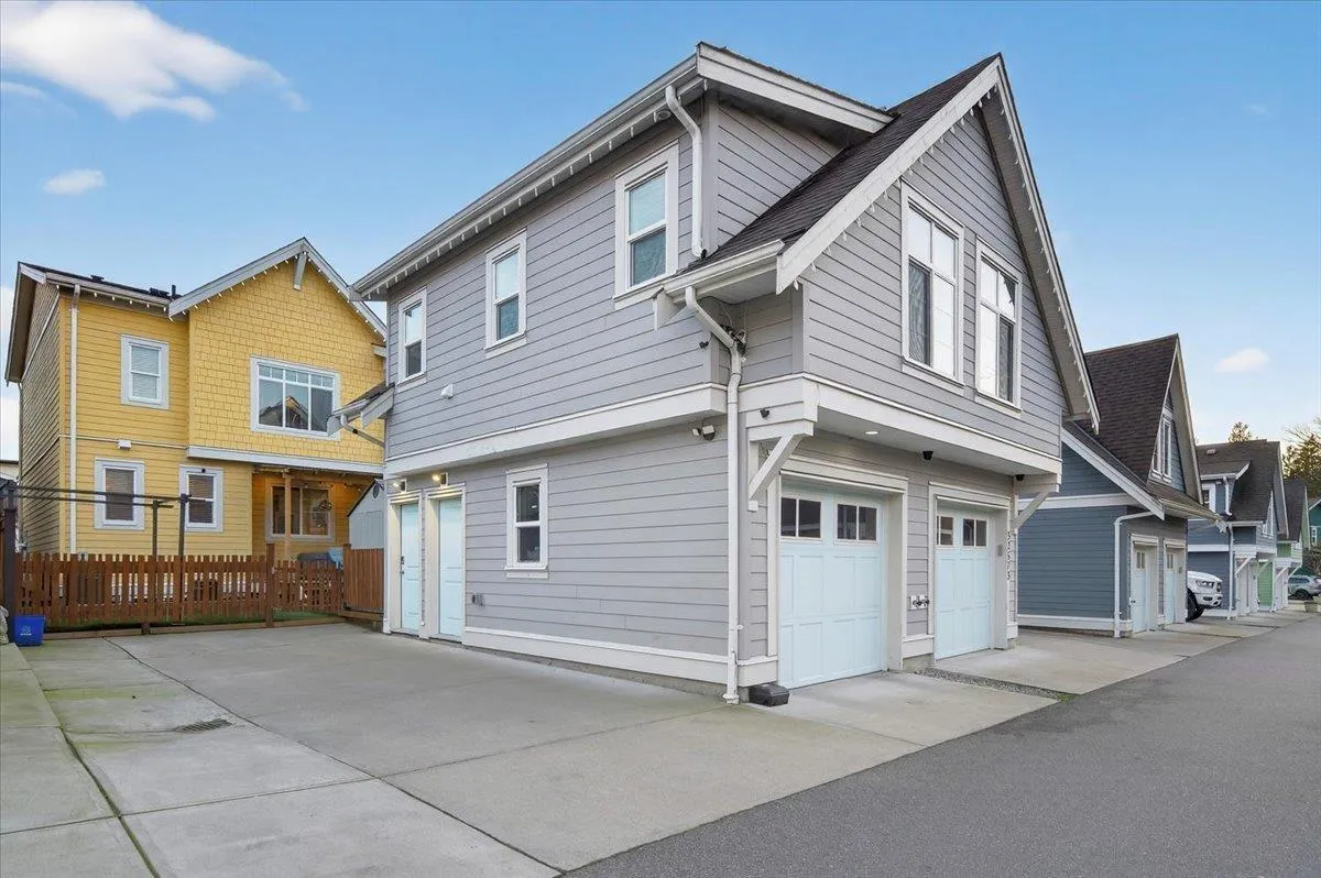NO STRATA end unit Rowhouse with a detached mortgage helper Coach House! This beautiful home has 3 bedrooms upstairs including master bedroom with walk in closet and ensuite. Main floor has large kitchen with stainless steel appliances, quartz countertops and under cabinet lighting. Opens up to your fully fenced backyard with beautifully professional installed artificial turf, patio and hot tub. Basement has large rec room and bathroom. Above your detached garage is a suitable coach house with its own laundry. Plenty of parking, air conditioning, central vacuum, 8x10 storage unit, gas BBq hook up. (id:27476)