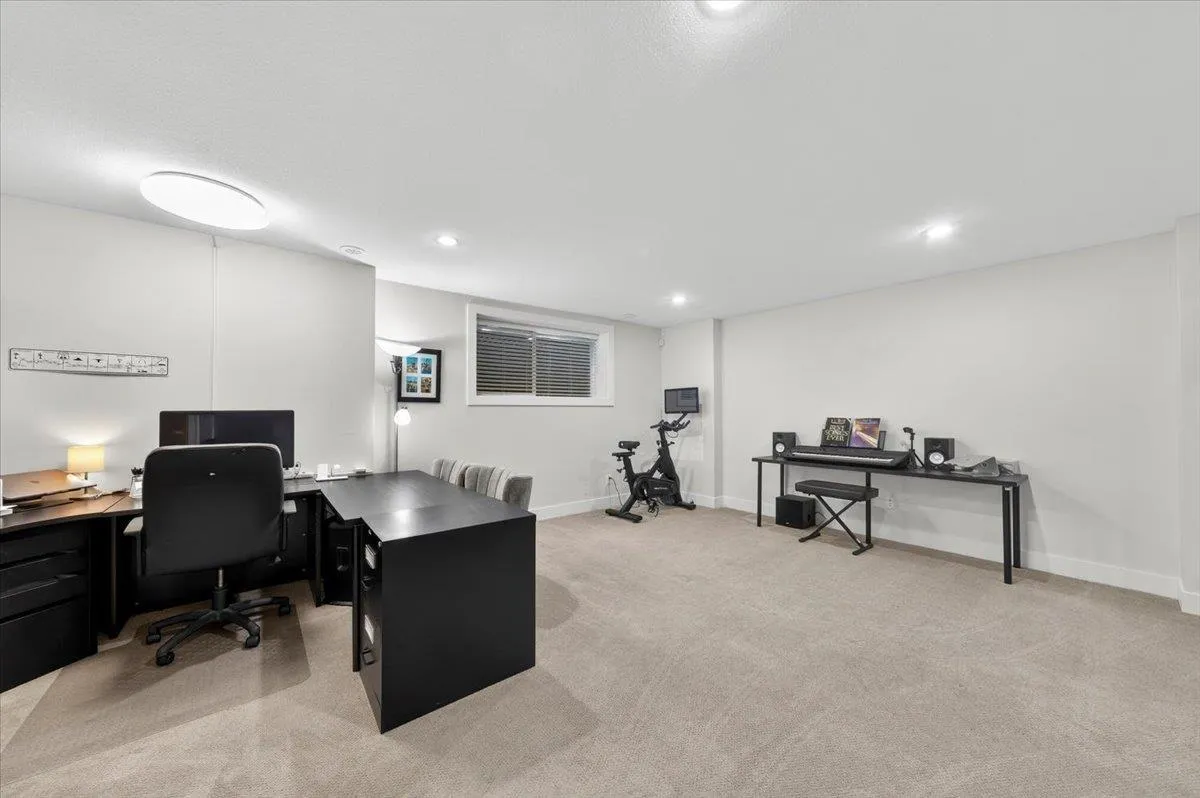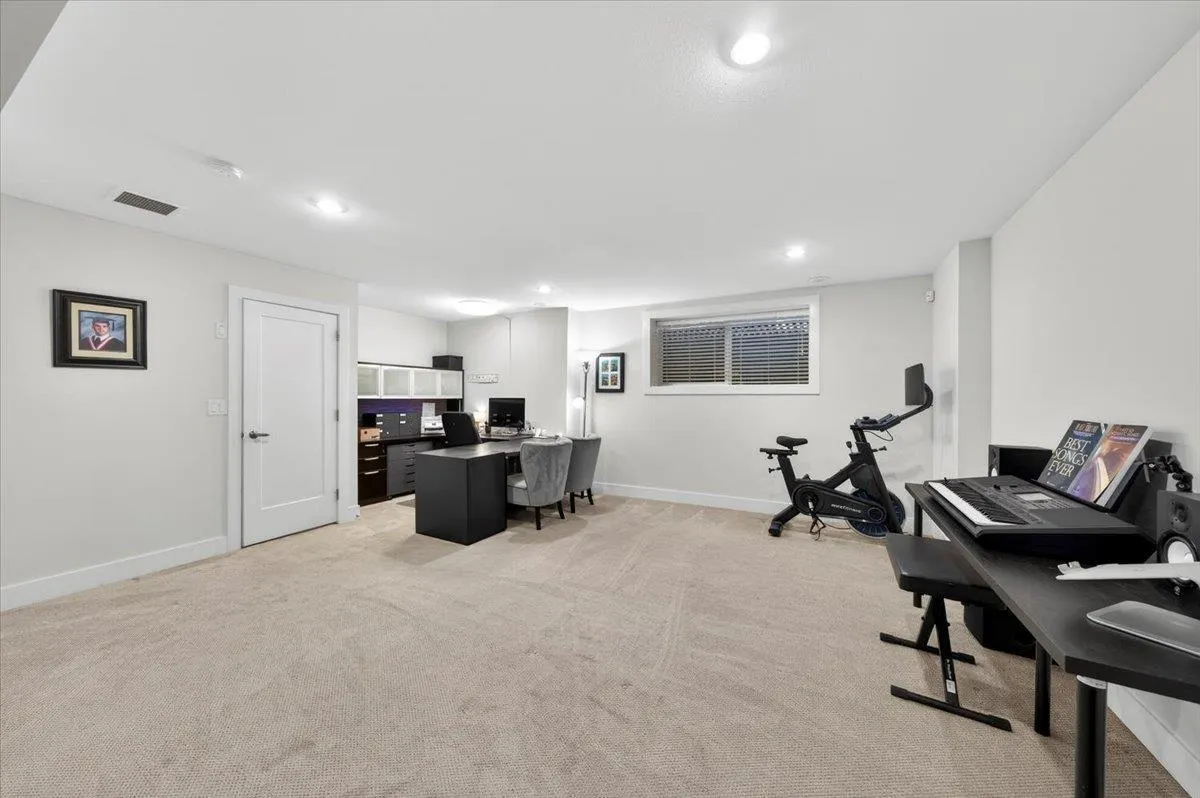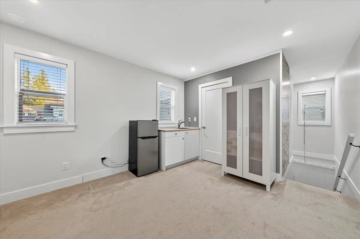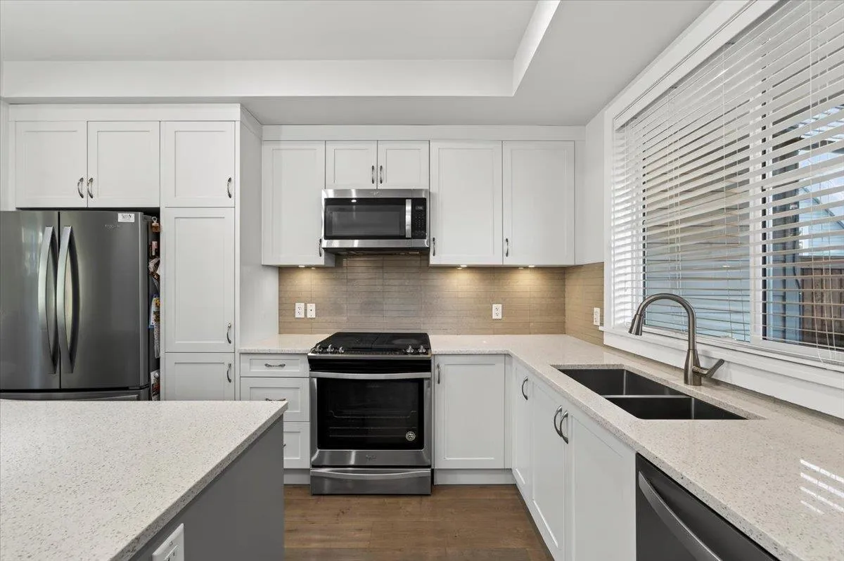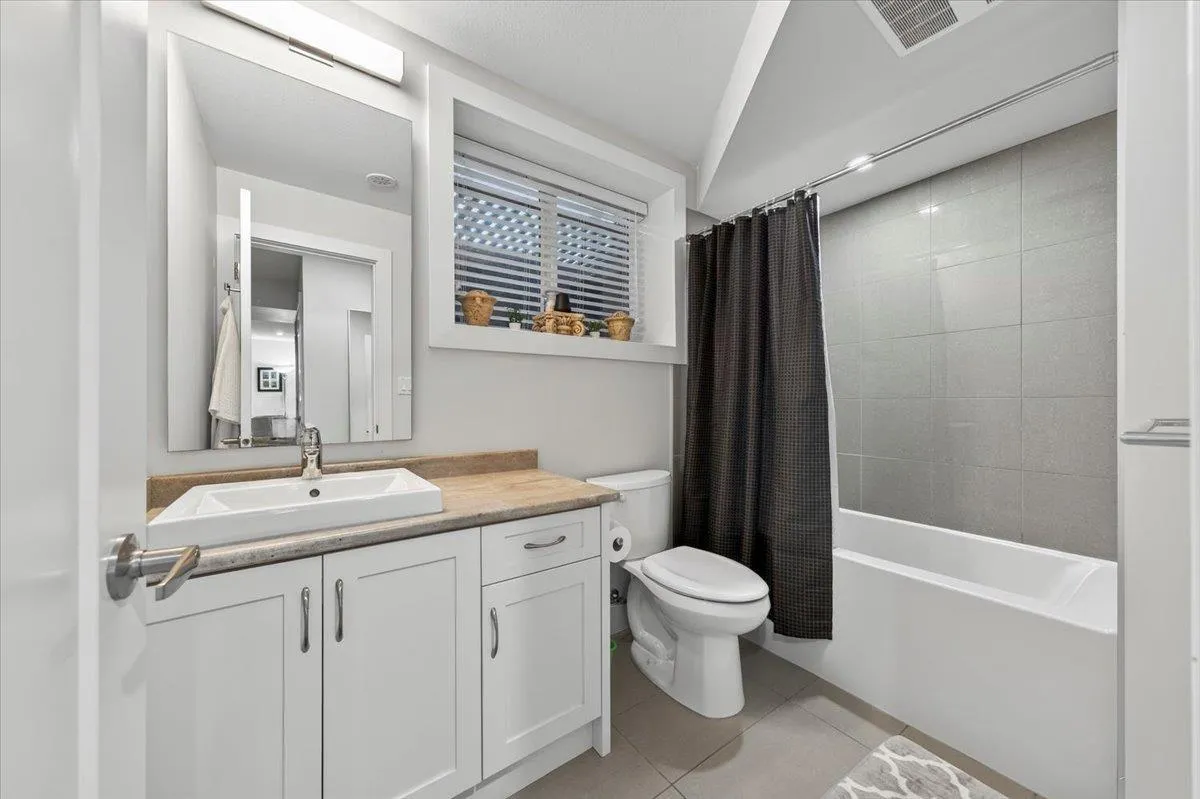 NO STRATA end unit Rowhouse with a detached mortgage helper Coach House! This beautiful home has 3 bedrooms upstairs including master bedroom with walk in closet and ensuite. Main floor has large kitchen with stainless steel appliances, quartz countertops and under cabinet lighting. Opens up to your fully fenced backyard with beautifully professional installed artificial turf, patio and hot tub. Basement has large rec room and bathroom. Above your detached garage is a suitable coach house with its own laundry. Plenty of parking, air conditioning, central vacuum, 8x10 storage unit, gas BBq hook up. (id:27476)