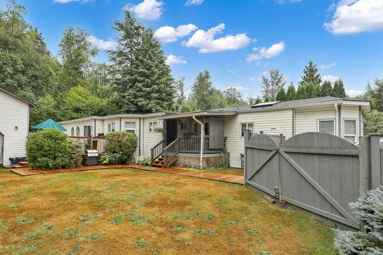 Feels just like a house! This updated 3 bed, 2 bath manufactured home in Nicomen Park features a spacious family/rec room, pressure-treated skirting, a new deck, and covered porch. Enjoy a huge fenced yard with flowers and trees, backing onto a greenbelt for total privacy. The shop is ready for heavy-duty wiring, perfect for hobbyists or trades. Located in a well-managed park near a marina, lake, and Hemlock Ski Hill. With affordable pad rent, this is a rare opportunity to enjoy space, comfort, and lifestyle in a private setting! (id:27476)