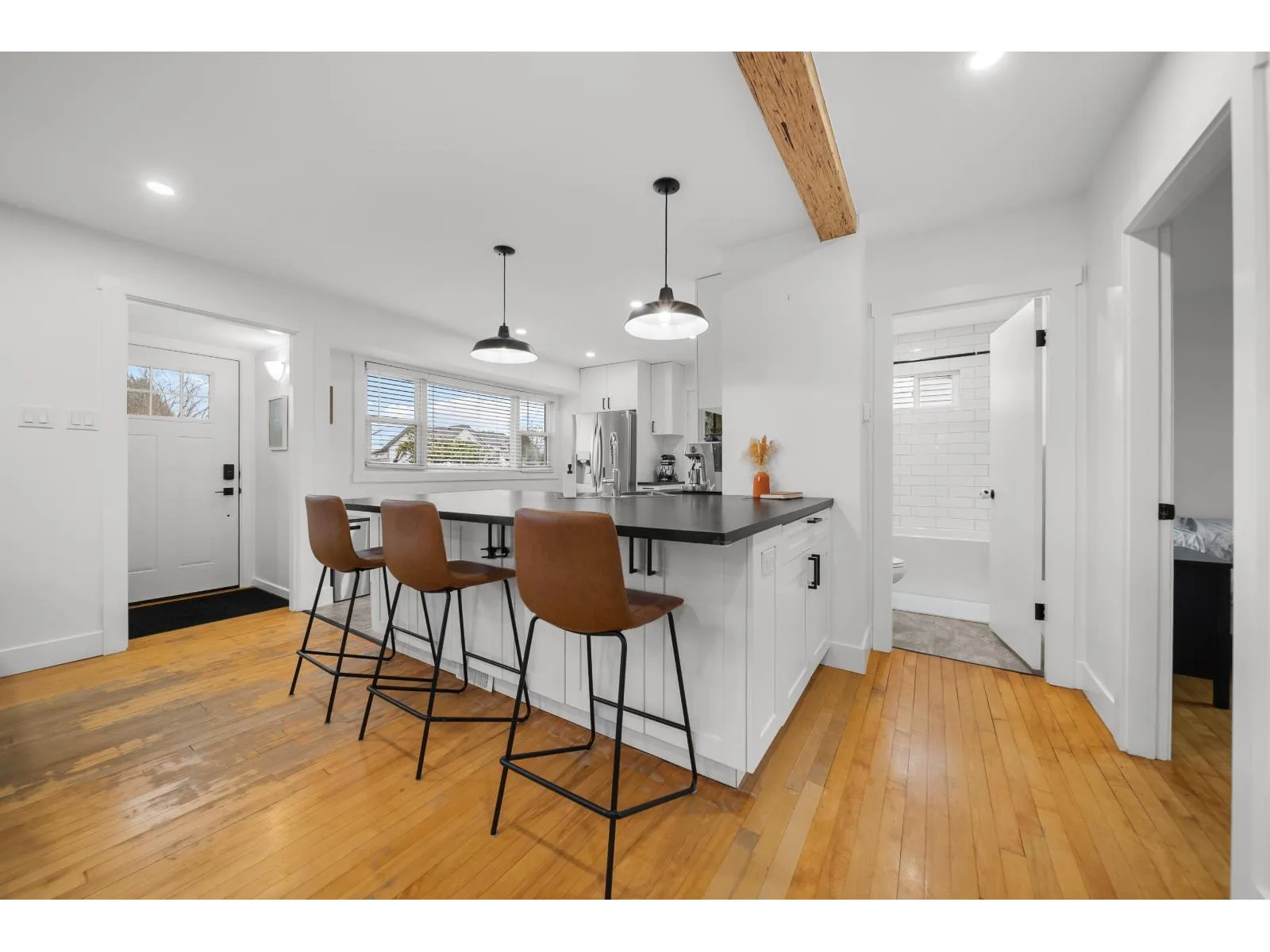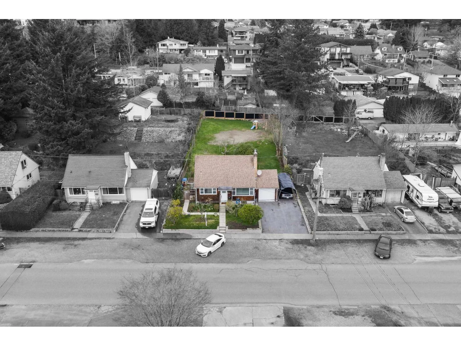 Rare 1/4 acre property with Mount Baker views and future development potential! Beautifully updated home perfect for a growing family, featuring a bright open-concept main floor with a new kitchen, gas range, modern cabinetry, countertops, and LED lighting throughout. Major upgrades are already taken care of including PEX plumbing, central A/C, updated HVAC ducting, gas fireplace insert, expanded driveway, insulated garage door, and a brand new sump pump. Enjoy the covered deck, and private yard with lane access, offering plenty of room for kids, pets, and entertaining. Walking distance to Mission Leisure Centre and Centennial Park. Move in, enjoy the space, and benefit from the long-term potential this large 1/4 acre property offers as the area continues to grow. (id:27476)
