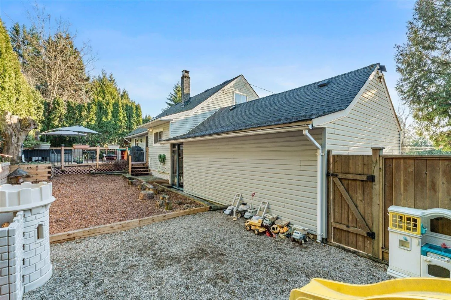 Well maintained 4 bedroom family home offering 2,204 sq ft of finished living space plus 517 sq ft unfinished, set on a large private lot. Functional layout with primary bedroom and full bath on the main, two bedrooms upstairs connected by a Jack & Jill bathroom, and a lower level featuring a bedroom, laundry, recreation room with bar area and separate entrance. Enjoy the fully fenced backyard with a large deck, great privacy and plenty of parking, plus a single garage and attached workshop. Updates include a newer furnace, 6 year old roof and 3 year old hot water tank. Rock retaining wall in front and wood retaining wall in backyard installed approx. two years ago. Steps to an elementary school and minutes to shopping and the West Coast Express. (id:27476)