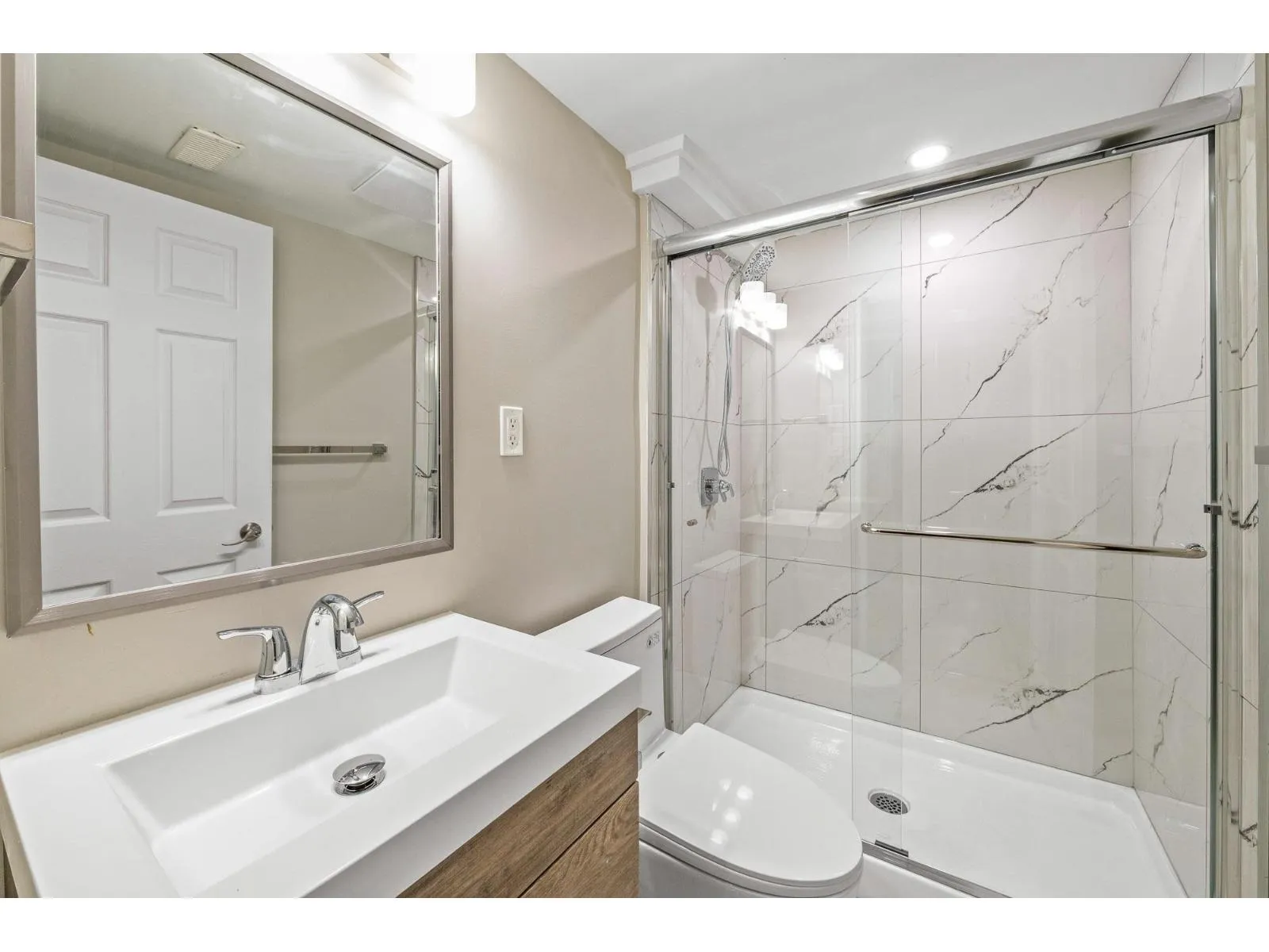 Beautifully renovated 4 bed, 3 bath 3-level split home in a central location! This vacant, move-in ready property features a bright main level with updated kitchen, dining and living areas. The dining room opens to a large patio and fully fenced backyard, perfect for relaxing or entertaining. Upstairs offers 3 bedrooms and 2 full baths, including a spacious primary bedroom with full ensuite and French doors leading to a private deck. The lower level features a fourth bedroom, full bath and large rec room with two separate entrances, offering great suite potential. Nicely landscaped with newly redone perimeter drainage. OCP designation allows potential future townhouse development. (id:27476)