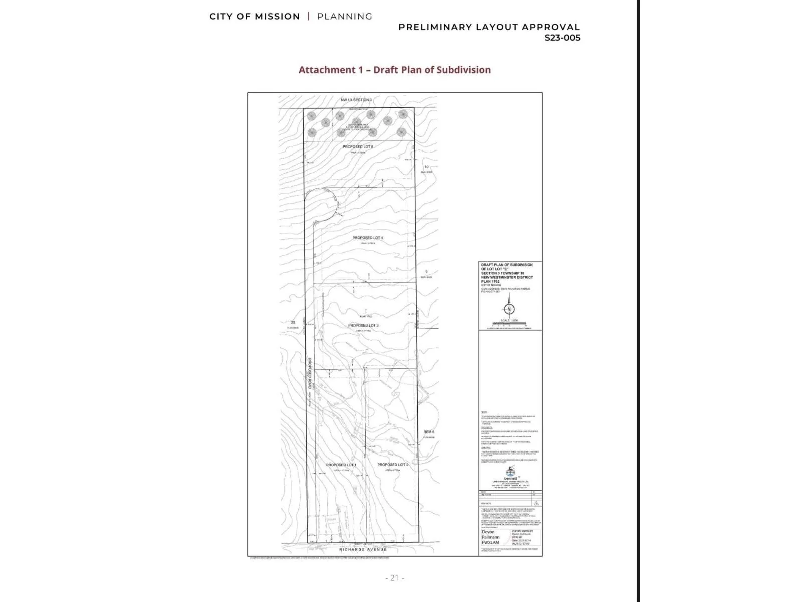 Investor/Developer Alert! Prime Development Opportunity in Mission! Rare chance to acquire a 9.8 acre property with Preliminary Layout Approval (PLA) for a 5-lot subdivision: 2 front lots by the Richards Ave, & 3lots in the back. Its 3 bedroom rancher house is rented $3,250/month. It is situated in a highly desirable & peaceful rural setting yet close to schools, shopping, and commuter routes, offering the best of both privacy and convenience. It is in a minute walking distance to the Moon Rock Access Trail, leading to the Bear Mountain Trails. Gentle slopes and expansive views create the perfect canvas for custom homes. A major development advantage is having a DFO (Fisheries and Oceans) approval for the repositioning of a culvert, removing a significant hurdle and saving buyers valuable time and effort. Properties with PLA are rare in Mission, and this shovel-ready opportunity allows you to move quickly and capitalize on the growing development momentum. Don't miss out-act fast on this exceptional property! (id:27476)