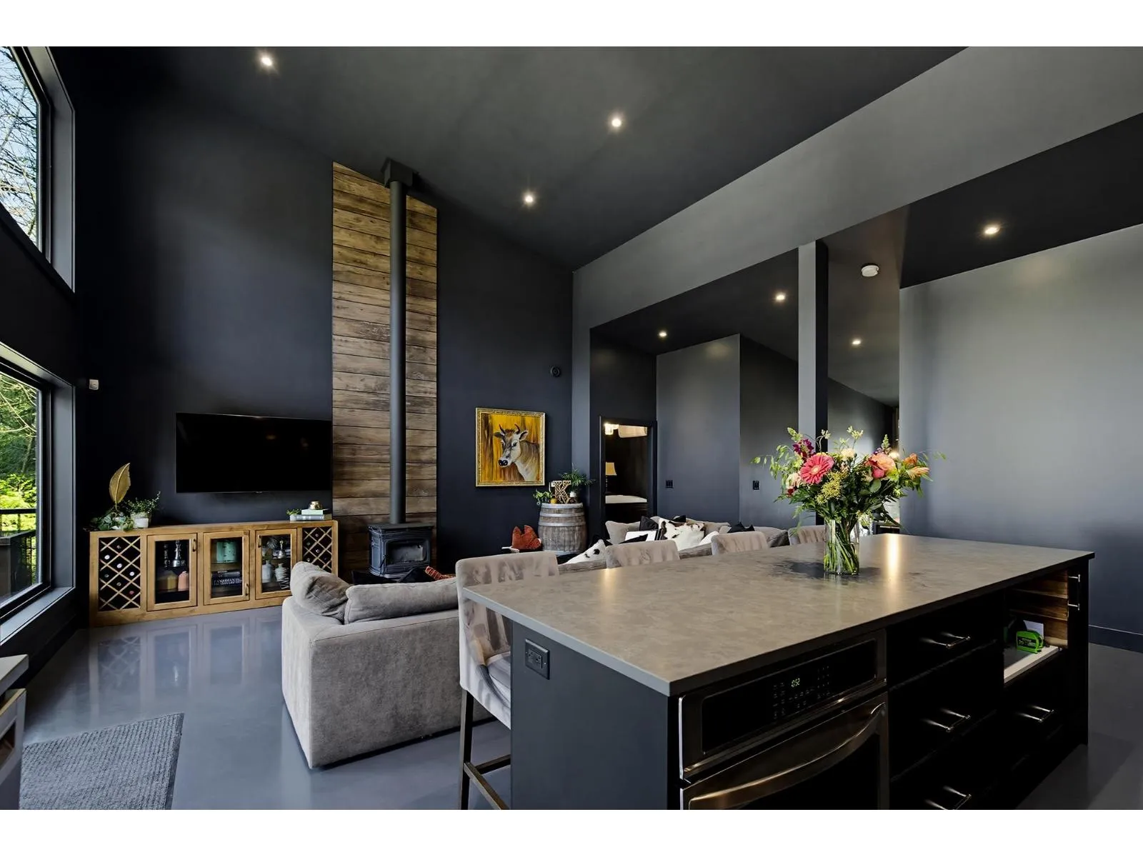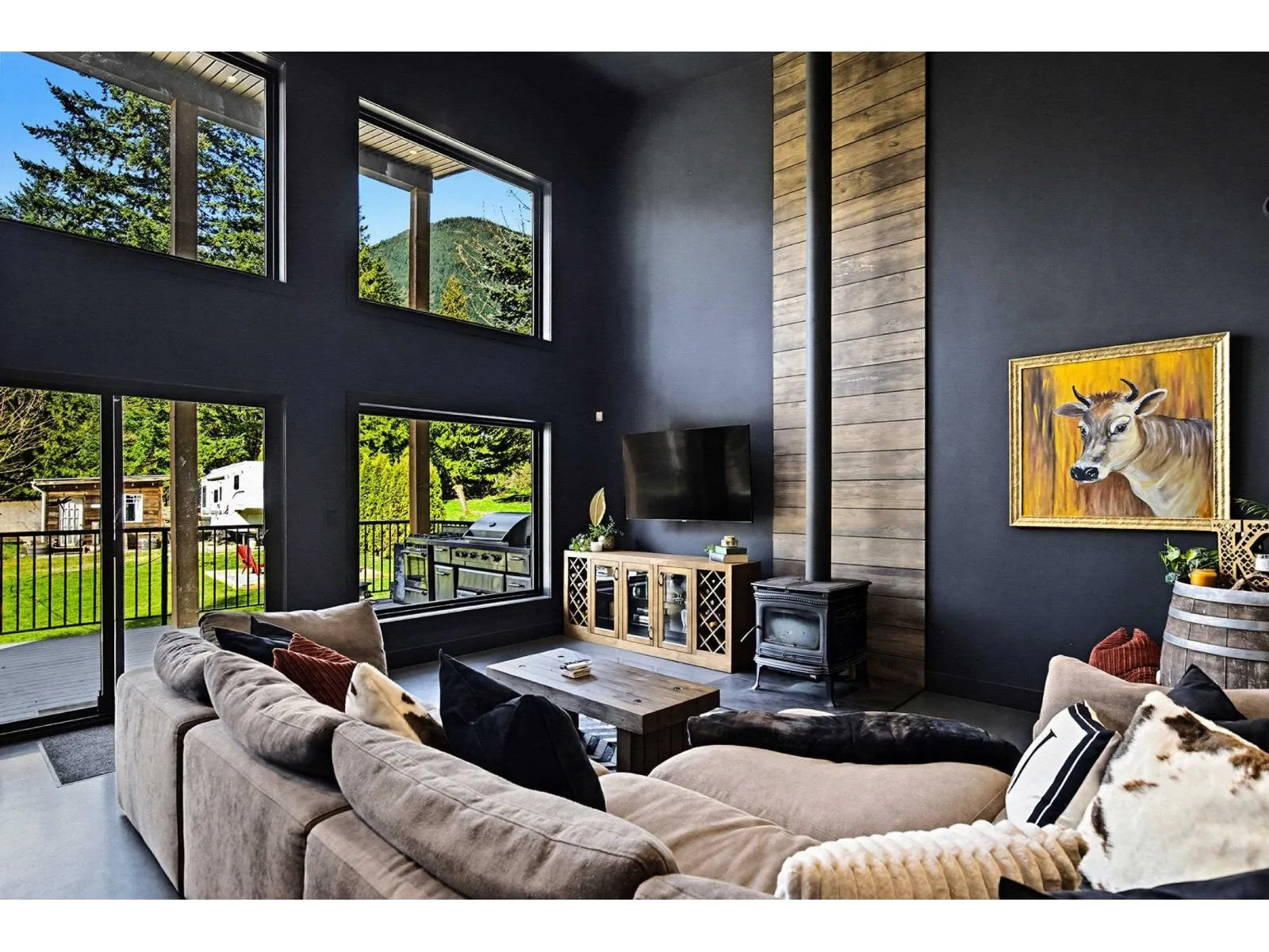 Tucked into a stunning rural setting, this 1300sqft 2 bed, 2 bath + den West Coast contemporary home blends bold design with everyday comfort. Thoughtfully built with exceptional style, it features an open floor plan, high end appliances, radiant in-floor heating, a mini split A/C system and a cozy wood burning stove. Outside, enjoy a massive covered patio, hot tub and endless space for gardening or small animals. A creek runs along the back, with incredible mountain views in every direction. RV parking adds convenience, while nearby hiking, skiing and golfing complete the lifestyle. A truly unique home, finished with exquisite taste throughout. (id:27476)