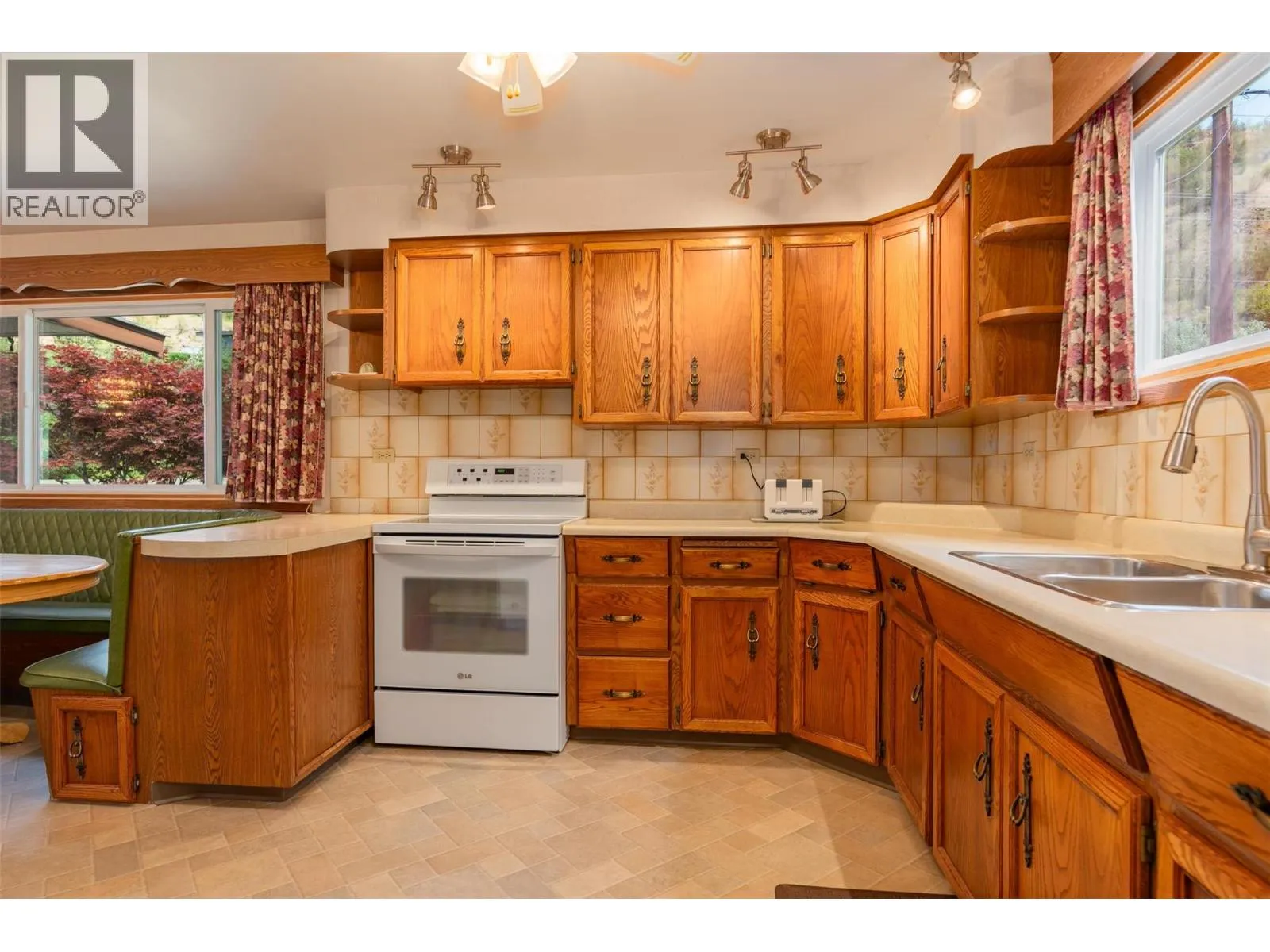 Welcome to this beautifully designed home in the heart of sought-after Montrose a neighbourhood loved for its quiet streets, strong community, and stunning surroundings. Inside, youâll find a spacious, family-friendly layout with room for everyone. The huge kitchen is a showstopper with endless counter space, loads of cabinetry, and a built-in banquette perfect for casual meals or homework time. It flows effortlessly into the formal dining room, ready for holidays and celebrations. The extra-large living room features a cozy fireplace, making it the ultimate gathering spot. The main floor includes a private master suite with ensuite, plus a second large bedroom and full bath. Downstairs offers even more: a massive family room for movie nights or game days, two additional bedrooms, a den/office, and a utility room with outdoor access. Outside, youâll love the detached garage and carport with lane access, a storage shed, and a yard filled with mature trees including fruit trees! With space, style, and location, this Montrose gem has it all. (id:27476)