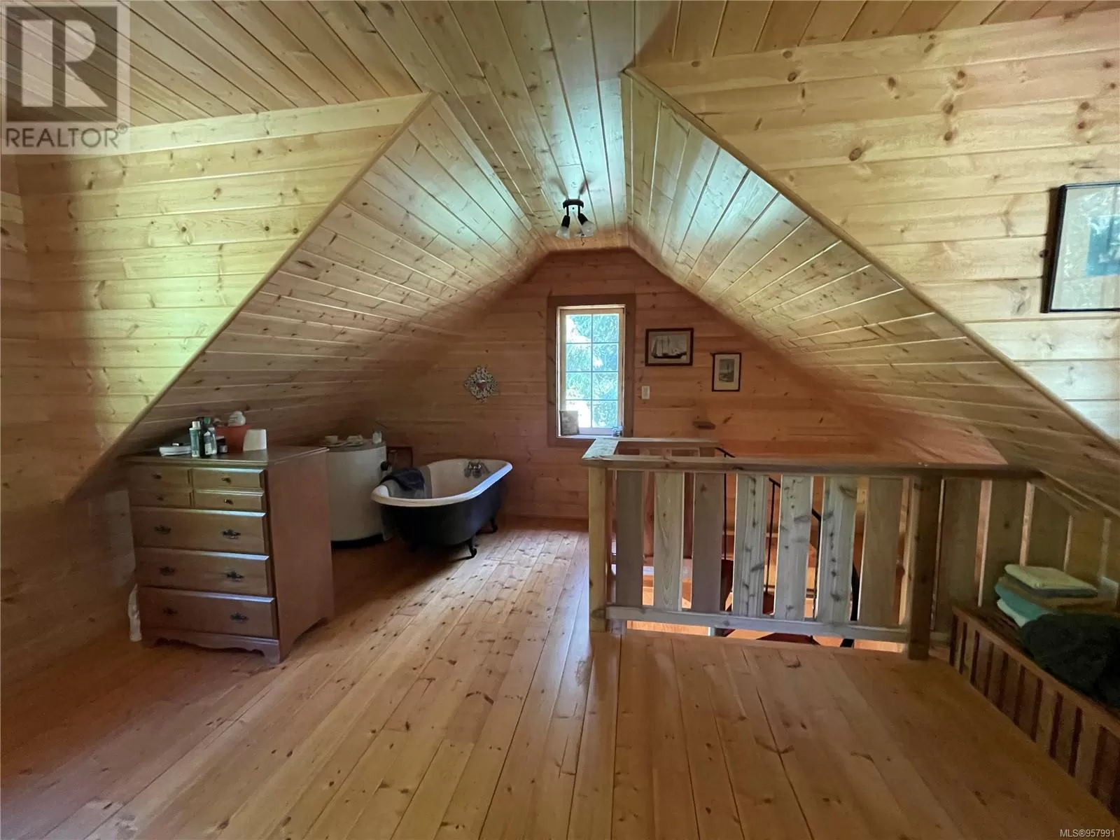 Stunning Walk-On WATERFRONT with a park-like setting featuring a well built Cottage on beautiful Mudge Island. This Lovely & sunny half acre property boasts manicured lawns which gently slope down to the waters edge on False Narrows. The cabin is cozy & inviting with a covered front porch & Double French doors which open into the spacious great room incorporating kitchen, dining & living rooms. The cottage sits on a poured concrete foundation & is (2x6) built of cedar board n' baton finished with cedar shingle siding & copper flashing. A wett certified Osburn woodstove heats the home with electric convection heater backup. A spiral staircase takes you up to the second level featuring a country style bedroom/loft with dormer windows &beautifully finished natural pine walls & ceilings. A clawfoot bathtub forms the beginning of an ensuite. 200amp service & underground wiring from pump house to cottage, attached 8x16 storage with concrete floor, wood shed & outhouse. A must see! (id:27476)