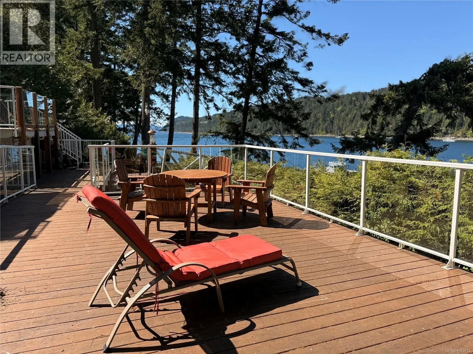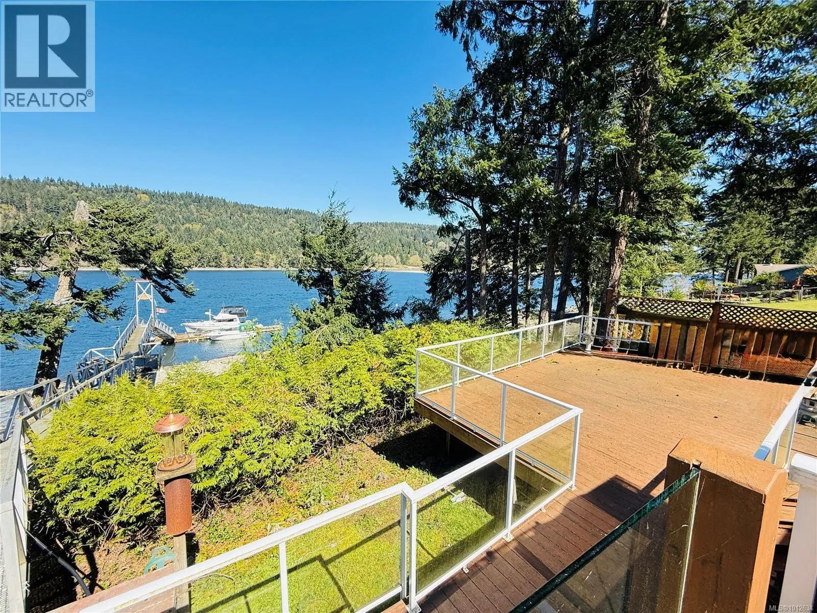 Welcome to paradise, Mudge Island walk-on oceanfront home with a 200 ft walkway concrete pillars and aluminum deck with a water licence 45-foot wharf and a private dock to tie your boat. This home is built with craftsmanship precision 3 bedrooms 3 baths, Oak floors & pine ceilings. The master bedroom on the main with a full ensuite is spacious and has parquet flooring. The kitchen has Oak cabinets, and stainless steel appliances, The wood stove in the living room supplies warmth for the whole house, sunroom and the 2 expansive sundecks with sweeping ocean views. Sauna and two outdoor sheds, There is no BC Ferry service to Mudge Island. It can be accessed by private boat and or via Gabriola Ferry, and it's 5 minutes across from Gabriola, the home sits directly across from the Brickyard, Gabriola. The Island has the get-away-from-it-all, and has the bonus of being serviced with hydro, high-speed internet- The owner has been there many years, measurement approx, verify if important. (id:27476)
