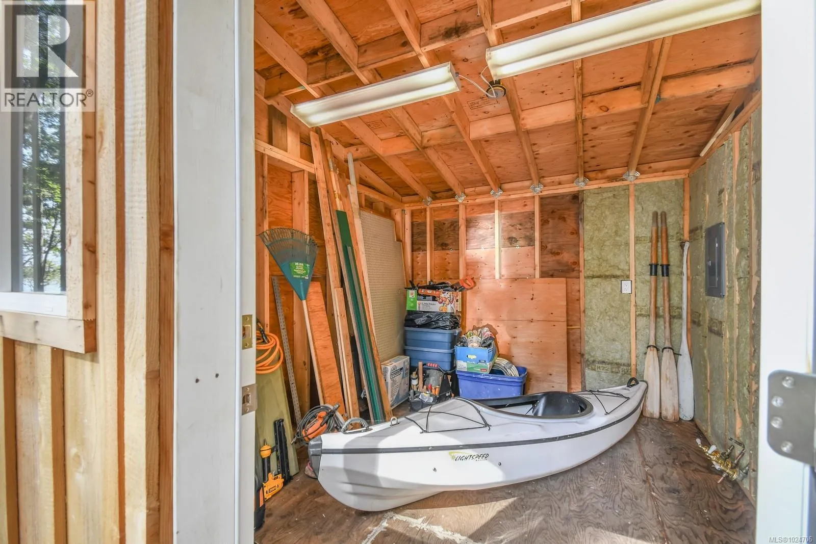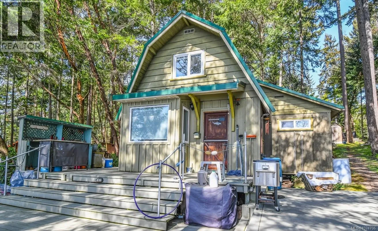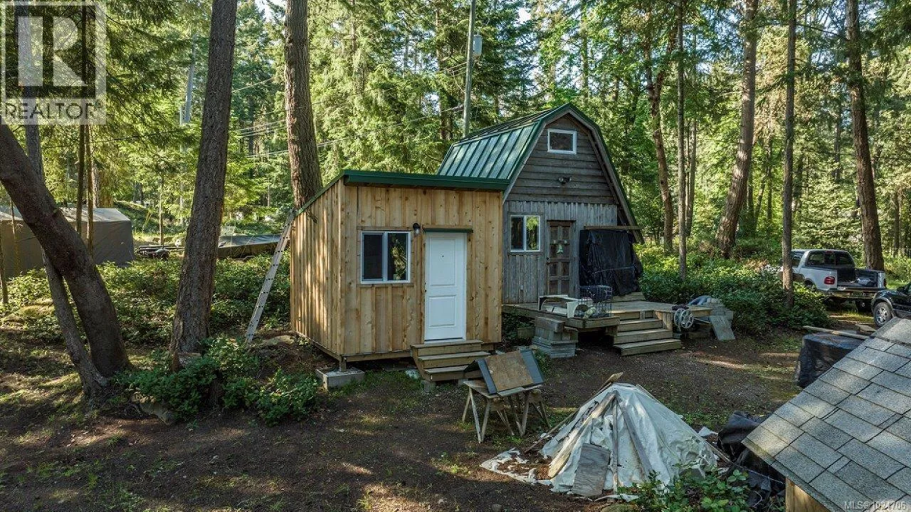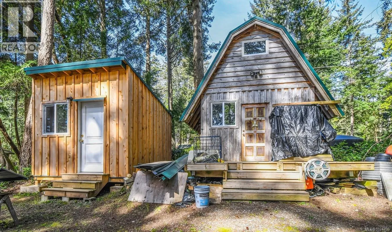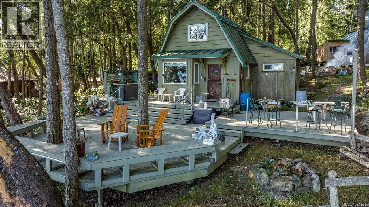 Sought after South facing waterfront property on beautiful Mudge Island. Gorgeous sandy beachfront lot with medium high bank. The .39-acre lot gently slopes from Salal Drive toward the ocean. The view is stunning, the beach is one of the best for swimming on the island & thereâs a mooring buoy offshore to tie up your boat. The beach is accessible from the cozy rustic cabin which features an open concept main level & upstairs loft-style bedroom. Kitchen/great room features recessed bay window, real wood cabinets, gas stove (propane) & fridge (propane & electric), Pacific Energy Woodstove & air conditioning by a mini split heat pump. Full bath with tub/shower, low flow toilet & sink/vanity plus extra storage/pantry cupboard. Other features include a gambrel style metal roof, expansive multi-level sundeck (pressure treated) & a fire pit area. Drilled well with new jet pump, 2 cisterns, septic tank and field. The pump house has additional storage and full-sized fridge plus a loft-style bedroom for guests. A separate partially insulated workshop with power and light is great additional storage or potential for extra sleeping quarters. The cabin enjoys electric power, Telus fibre optic internet & TV. Make this your summer retreat or full time living at the seashore. This property is a must see, call for further details! Measurements are approximate and data should be verified if important. (id:27476)