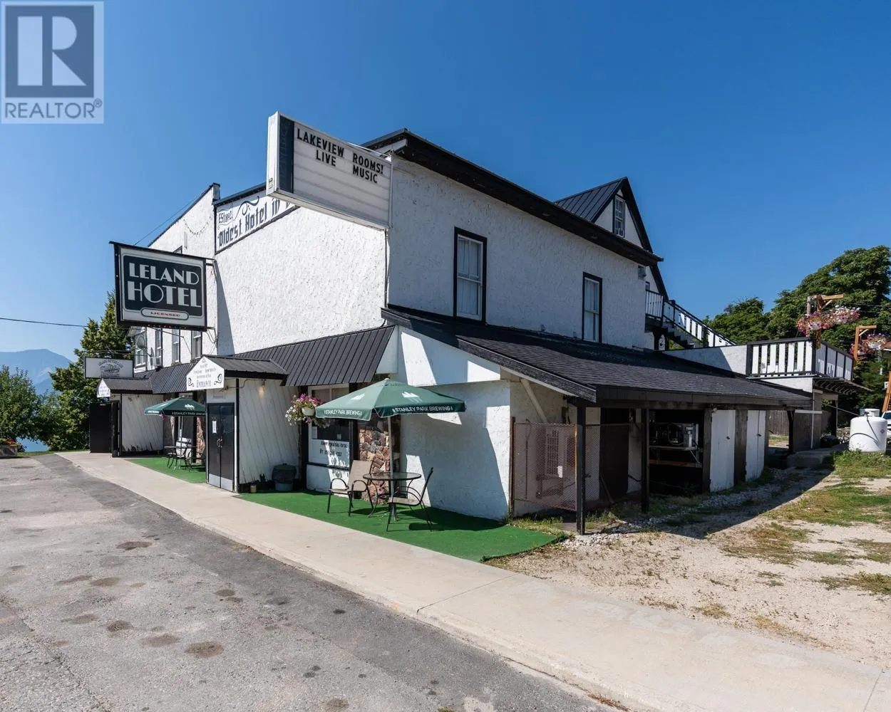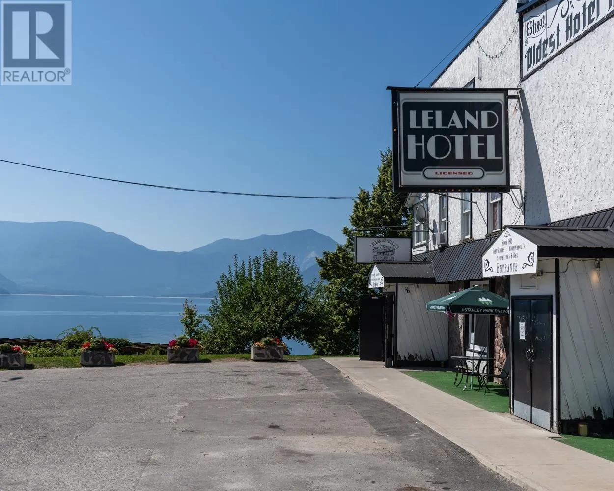 The Leland Hotel: a captivating piece of history nestled in the heart of Nakusp, BC. This cherished gem presents 21 uniquely appointed rooms, each offering a glimpse into the past and a canvas for the future. Perched above the tranquil Arrow Lake, an expansive 80-seat deck commands awe-inspiring panoramic views, setting the stage for unforgettable moments. Emanating a timeless charm, The Leland Hotel exudes an ambiance that's reminiscent of a bygone era. While some restoration is needed, the property's weathered elegance hints at its former grandeur. Original architectural details stand as a testament to craftsmanship that stood strong through time, ready to be reimagined for modern comfort. A 60-seat restaurant, a lively 107-seat pub beckons camaraderie and good times, a beloved local spot brimming with potential. For convenience or additional income stream a one bdrm house is located on the premises. As the gateway to Nakusp's captivating outdoor adventures, this property offers a lifestyle that transcends ordinary living. From hiking and fishing to exploring natural hot springs, this area is a haven for those seeking an authentic connection with nature. Seize this moment to own not just a property, but a legacy. The Leland Hotel beckons you to be a part of its storied history, to restore its timeless charm, and to shape its vibrant future. Contact us today to embark on this extraordinary journey. (id:27476)