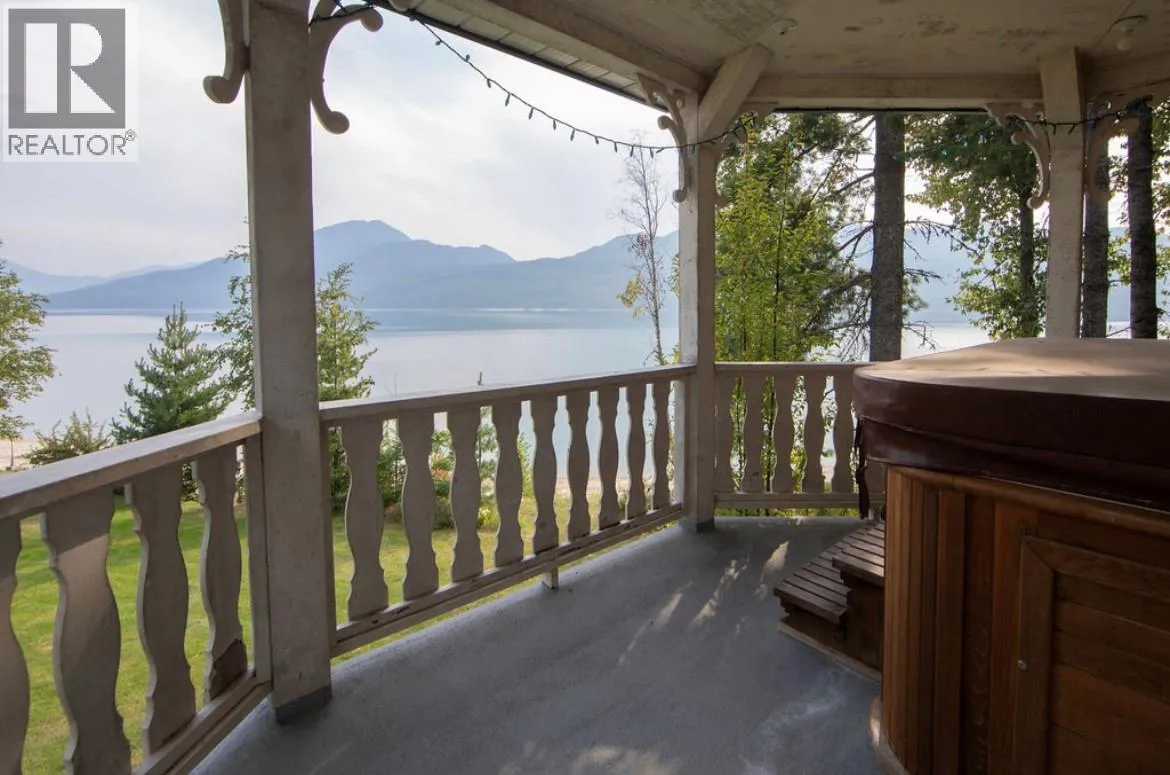 This is a rare opportunity to own this gorgeous 6-bedroom, 3-bathroom log home on a private 5-acre lakeshore parcel in the highly sought-after 'Shoreholme' area! With sweeping views of Arrow Lake and the surrounding mountains, this property offers peace, privacy, and comfort in equal measure, and offers one of the most scenic views in the Kootenays. Full of character, it features exposed log beams, and custom detailsâbalanced by tasteful modern updates. The open-concept main floor includes oversized windows that allow a flood of natural light, and the antique stove and propane fireplace are charming statement pieces! The primary suite boasts a walk-in closet, 3-piece ensuite, and access to a covered hot tub overlooking the lakeâideal for cozy nights or rainy days. The walk-out basement includes a flexible rec space with direct yard access. Outside, enjoy expansive lawn, fruit trees, a koi pond, and a beautiful forested perimeter offering privacy and natural beauty. A standout detached shop provides storage and workspace, with a fully equipped guest/rental suite aboveâcurrently generating income. The property also features a leveled event/wedding pad and a proven history as a successful Airbnb and wedding venue. Just a short drive from downtown Nakusp, public beaches, trails, and the Hot Springs, this move-in-ready home is perfectly situated for year-round recreation, relaxation, and income potential. Donât miss this rare lakeshore estate! (id:27476)