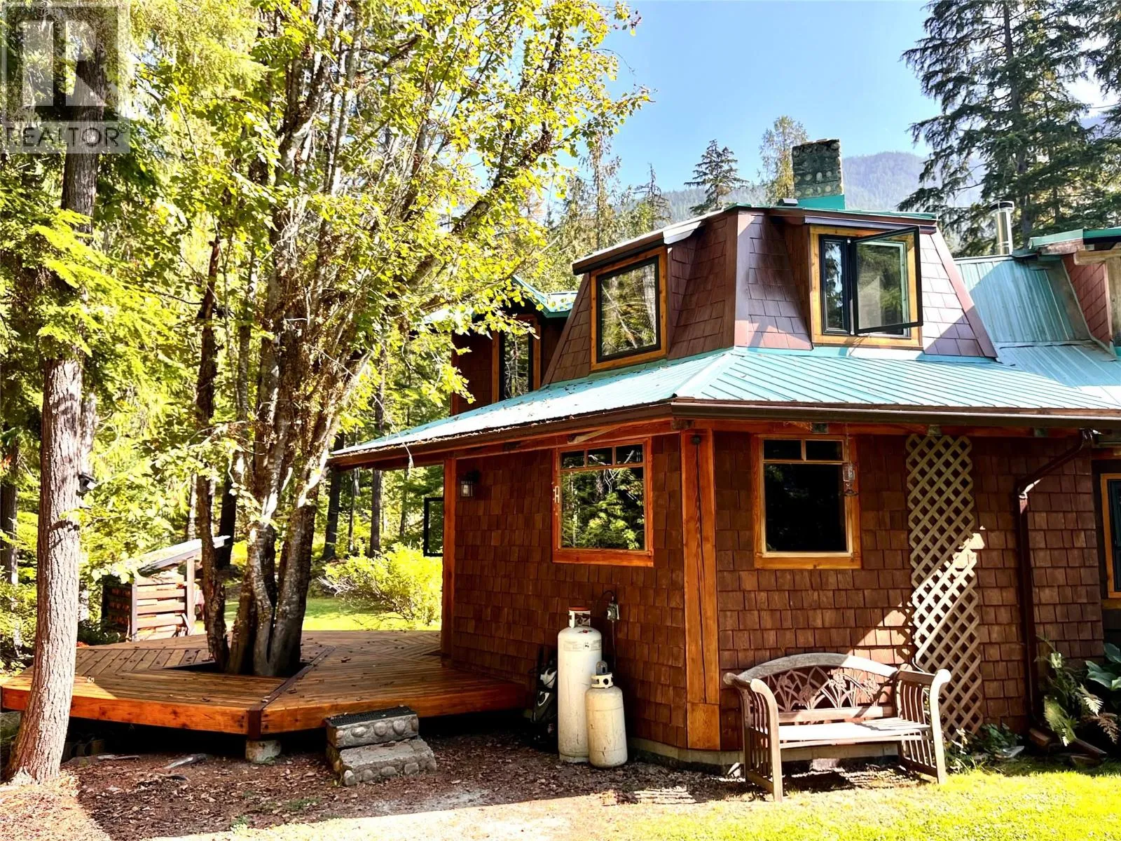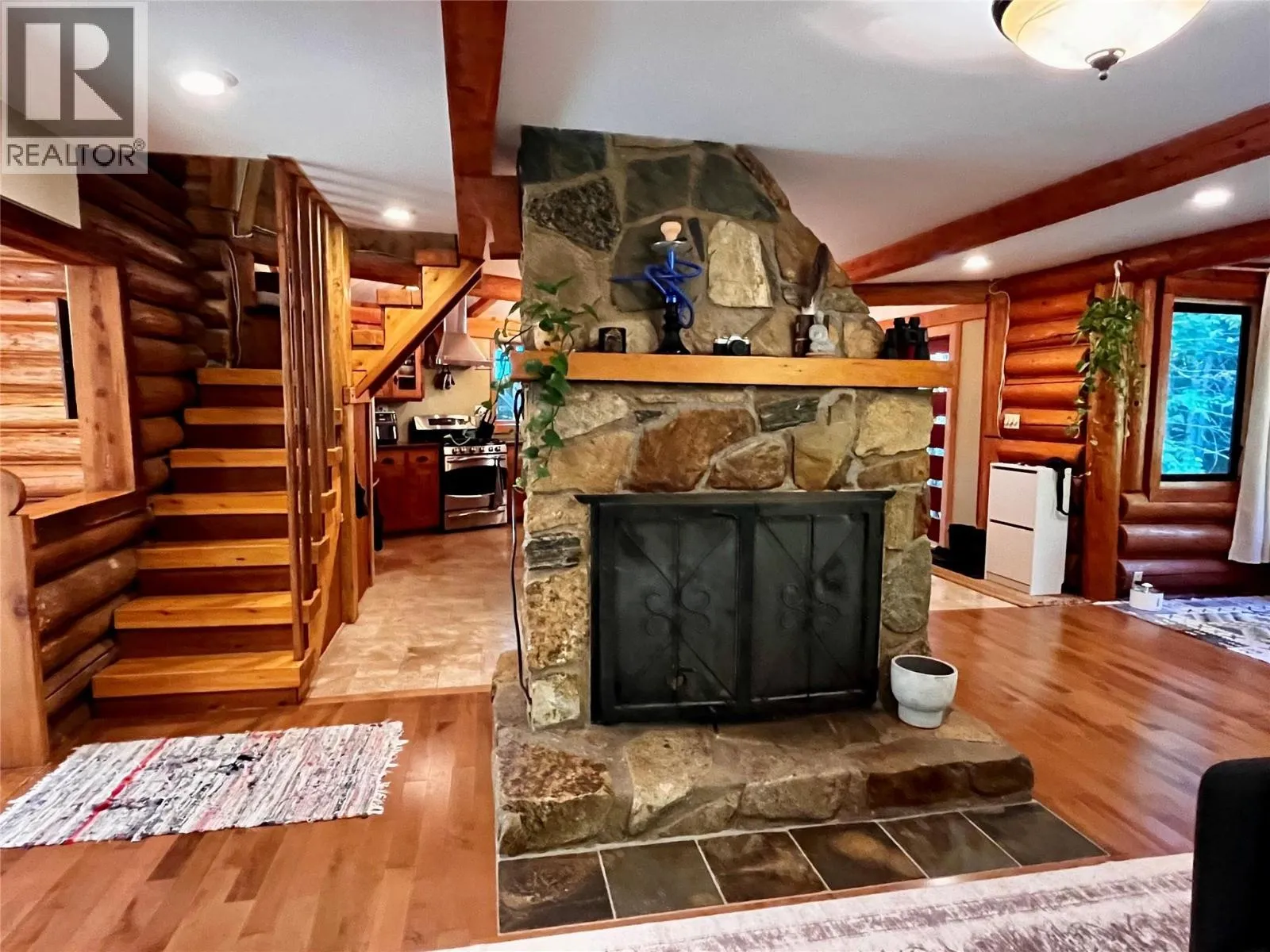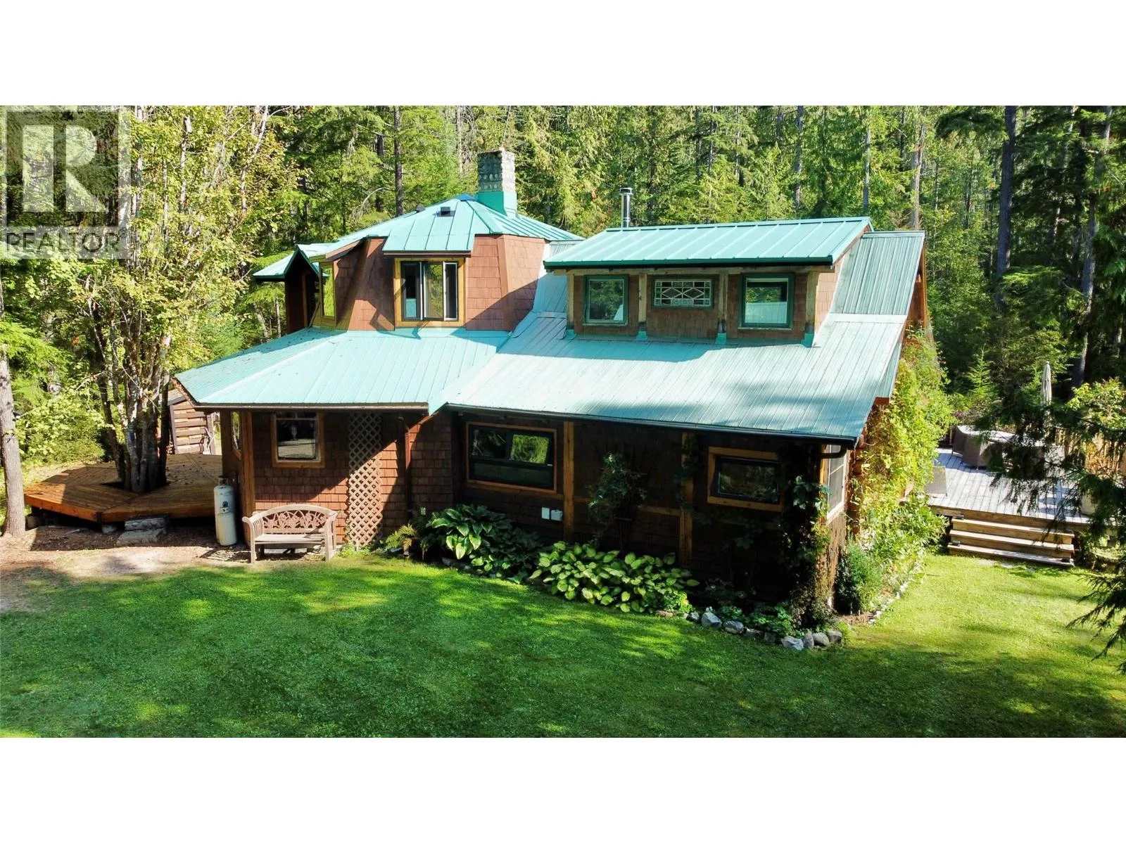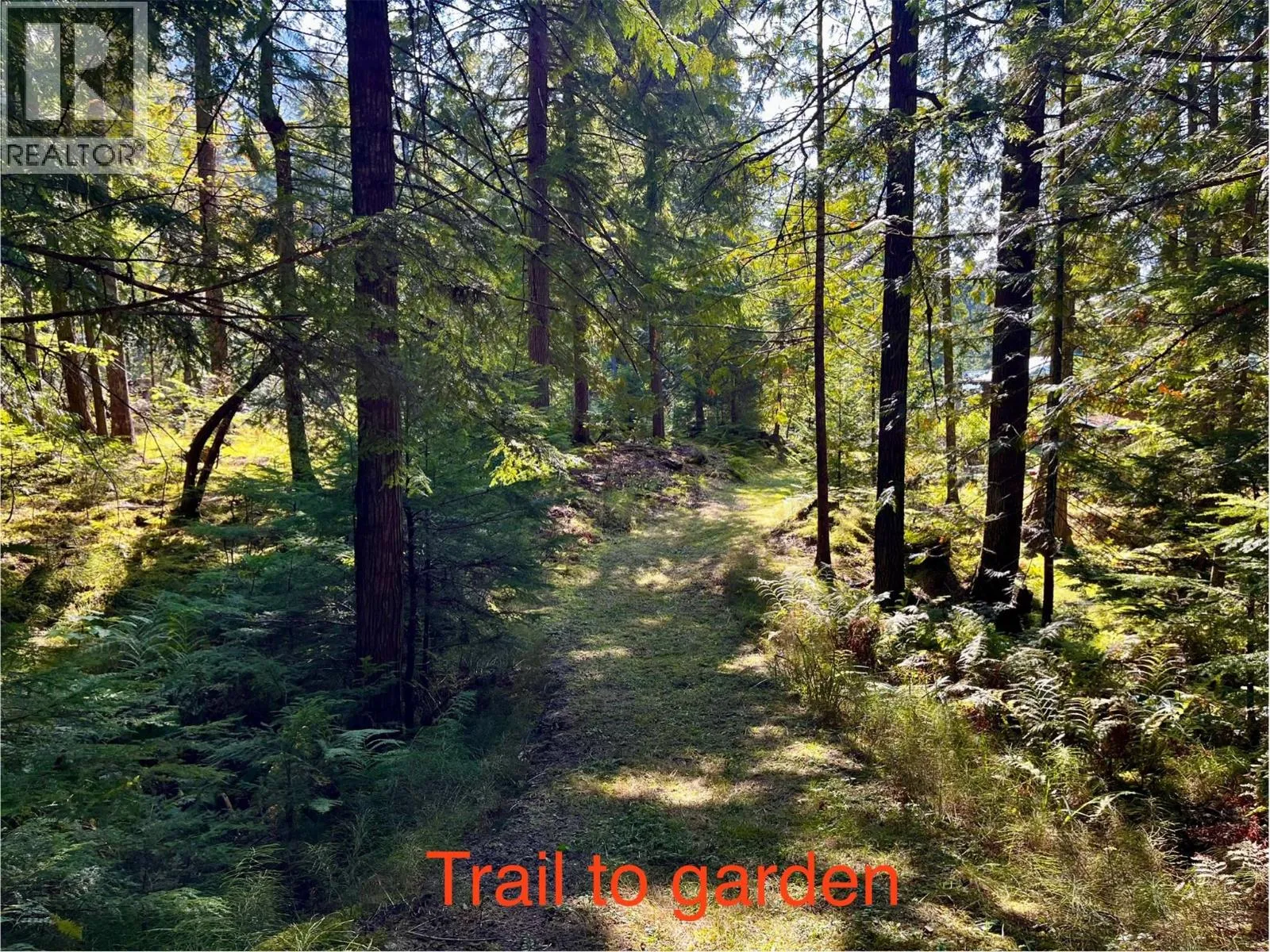 Here is your chance to reconnect with what is important to you in life and it begins with having a pleasing, comforting, and rejuvenating property to call home. This lovingly built, entirely custom, hand sawn, timber framed, 2 bedroom 1 bathroom home is completely private within its 6.4 acres of moss-covered, lush, cedar/hemlock forest which backs onto crown land. You will feel at peace exploring the fern lined, gently meandering brook, working in your 1300 sq ft fenced garden and harvesting your own firewood. Inside, enjoy the comfort and style of this charming home. The gourmet kitchen with island has a gas range, heated tile floors, two sinks, custom oak shaker cabinets and custom countertops. The living room is anchored by a prominent stone fireplace offering cozy ambience, has plenty of windows with natural light, and maple hardwood floors. The family room/study has a new woodstove, an office nook, and french doors leading out to the deck overlooking your own little meadow. Upstairs find a huge bedroom suite with lounge area and a storybook door leading to another bedroom or studio of equal size. Recent improvements include new metal roofing, new heat pump (AC in summer), 11 new triple glazed windows, new front door, new ceiling insulation & new waterline and intake box (licensed creek fed water) There is a two car carport, a firewood storage building, a firepit and a cute treehouse in the forest. Room to build a shop/garage near the bottom property with driveway access. (id:27476)