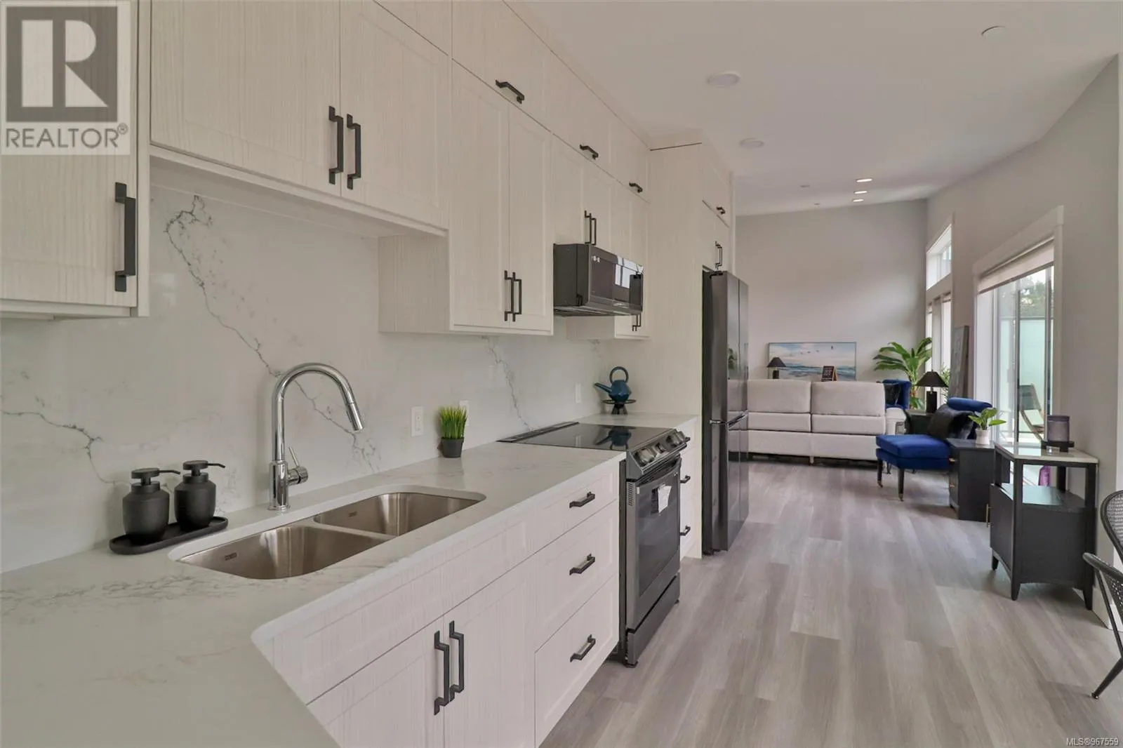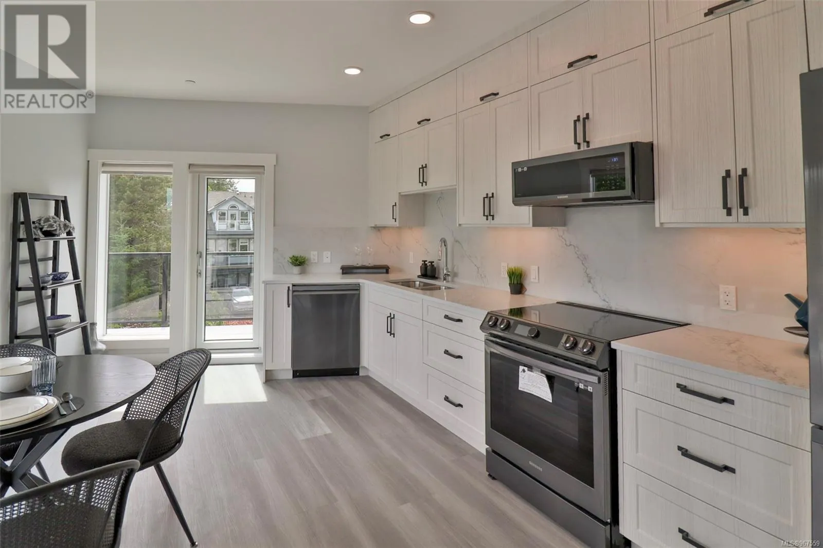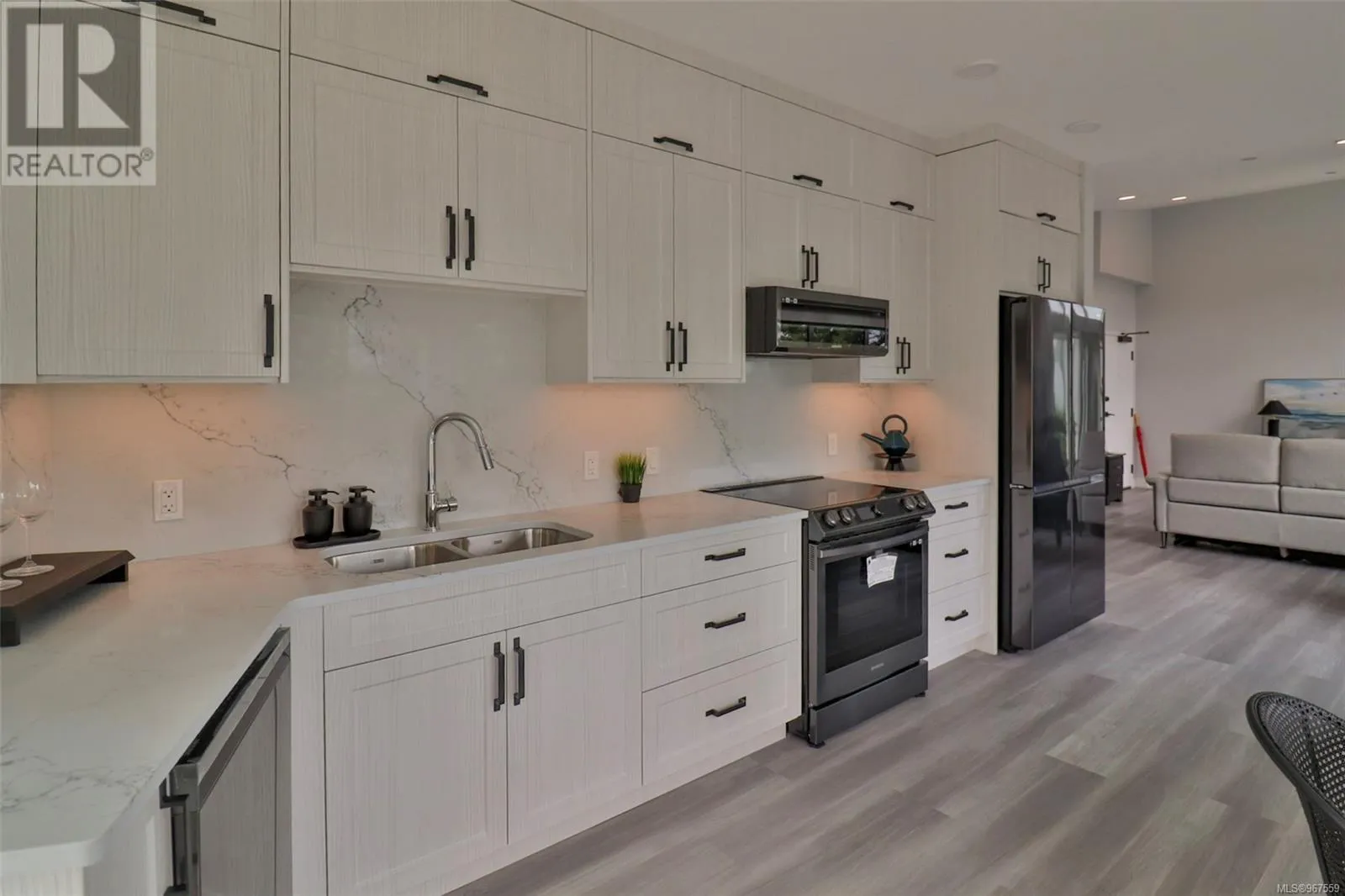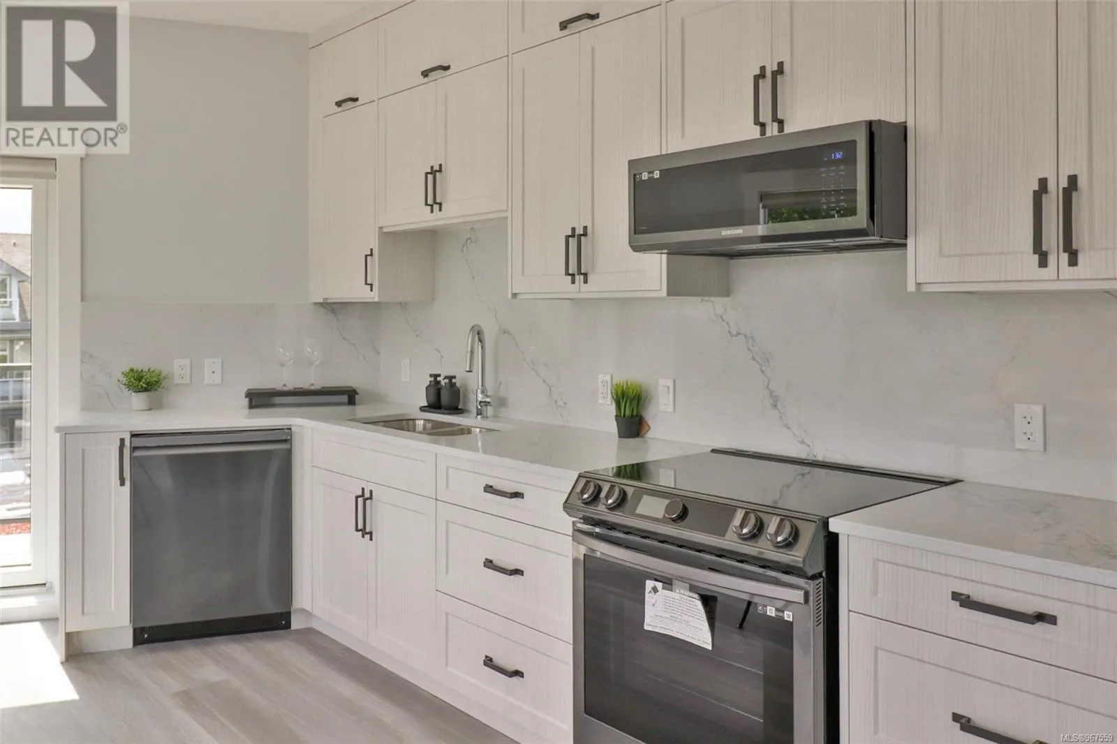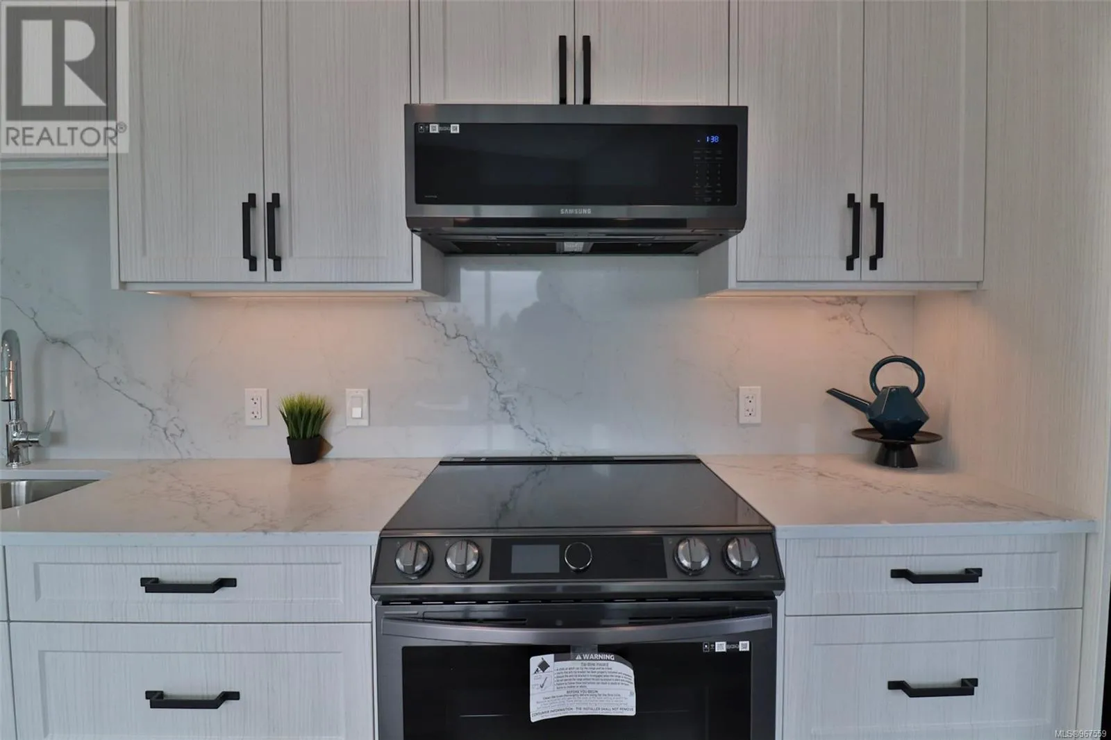 This brand-new two-bedroom, one-bathroom condo offers a unique chance to enjoy close proximity to one of Nanaimo's most sought-after lakes. Combining modern living with the charm of nature, creating an ideal balance for those seeking tranquility and convenience in a desirable location. As you step into this modern sanctuary, you are greeted by a naturally lit interior, thanks to expansive windows that fill the space with natural light. The heart of this home features a sleek kitchen equipped with state-of-the-art Samsung appliances, complemented by elegant quartz countertops and a matching quartz backsplash, blending functionality with style. This exceptional residence is conveniently located, offering easy access to shopping and various amenities, ensuring that comfort and convenience are always within reach. 1 underground parking stall incl with each unit. Pictures may not reflect the exact floorplan of the listed unit. (id:27476)