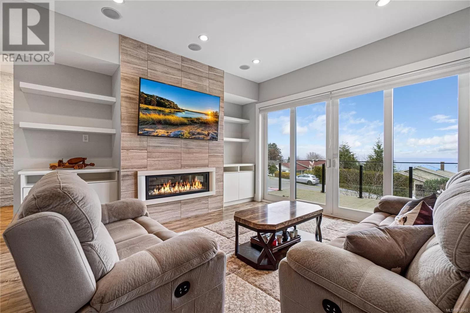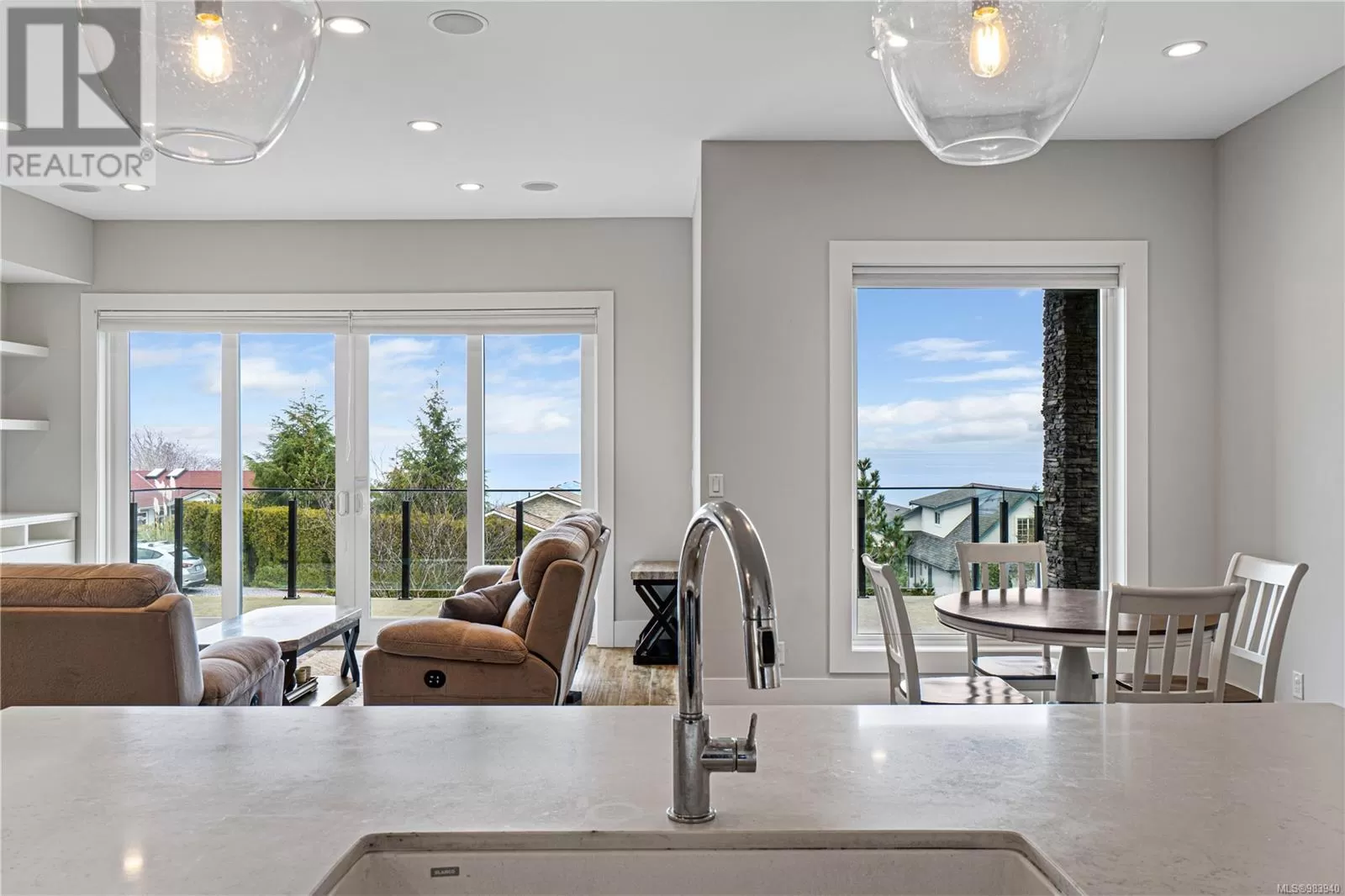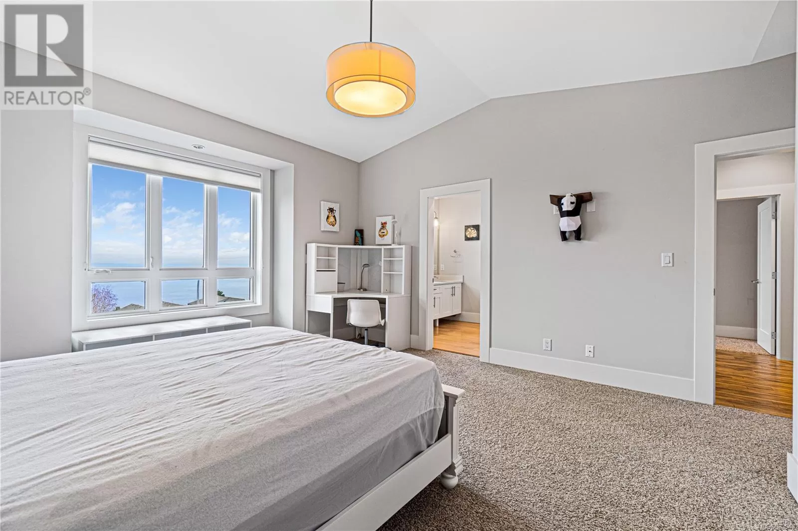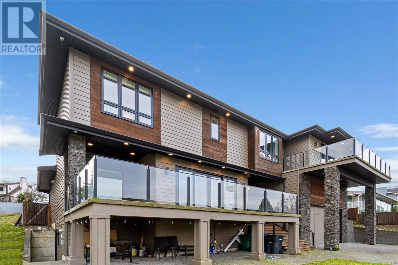 Beautiful semi-waterfront home located in the highly desirable area of north Nanaimo. This unique 5,676 sq. ft. custom home features 6/7 bedrooms and 5 bathrooms, along with large picture windows that offer panoramic views of the ocean and coastal mountains. The main level boasts a functional open-concept floor plan with a spacious living room and high ceilings, a gourmet kitchen equipped with modern amenities, and access to a large deck facing the ocean. A formal dining room and cozy family room are situated at the back, overlooking the flat, fenced backyard with southern exposure. On the second level, the master suite offers exceptional views, a lavish ensuite, a walk-in closet, and a private deck facing the ocean. This level also includes two additional spacious bedrooms and a 4-piece bathroom. The lower floor features a home theatre, a guest room with an attached bathroom, and a legal 2-bedroom suite. Outside, minimalistic, low-maintenance landscaping allows the property's natural beauty to shine. The home is within walking distance to the ocean and beaches, as well as elementary and secondary schools, with a 5-minute drive to shopping malls. Measurements are approximate; please verify if important. (id:27476)