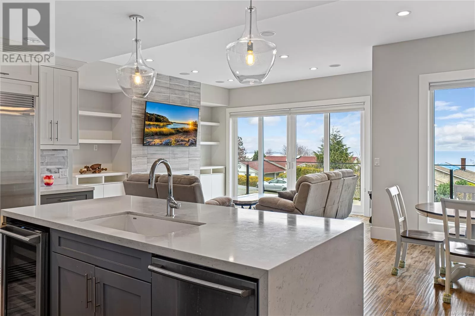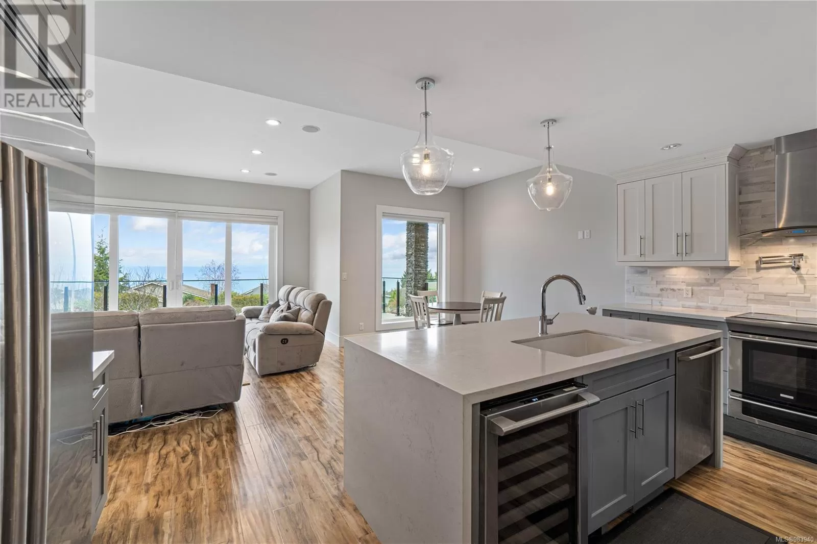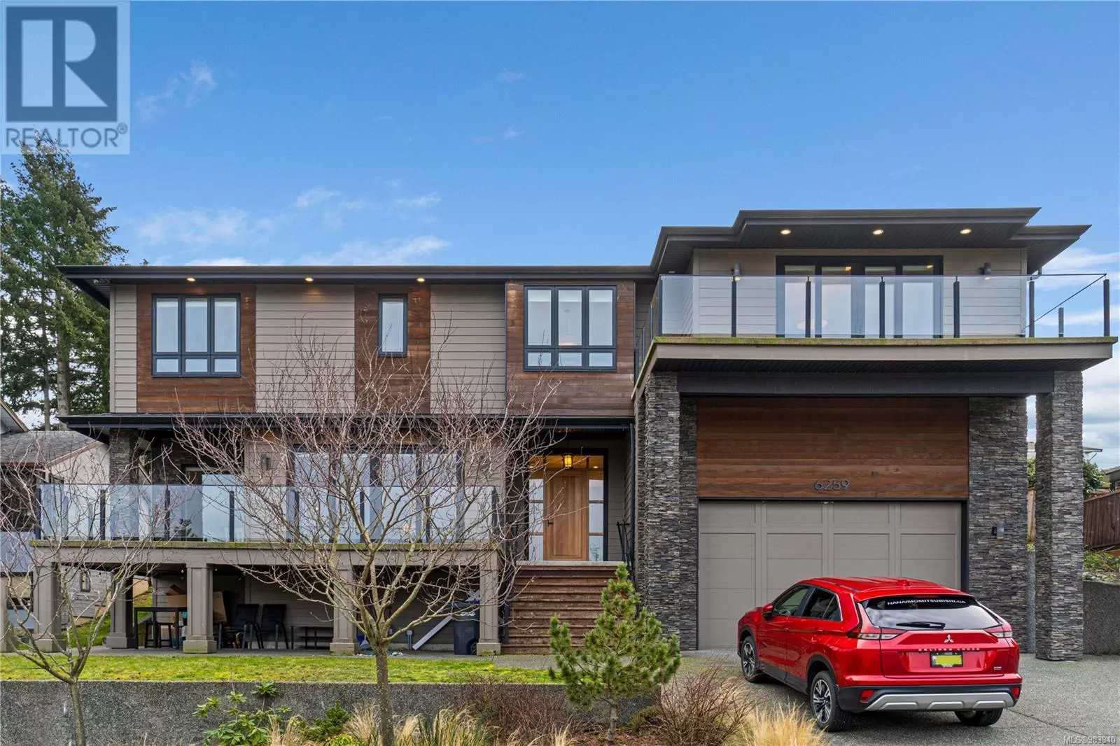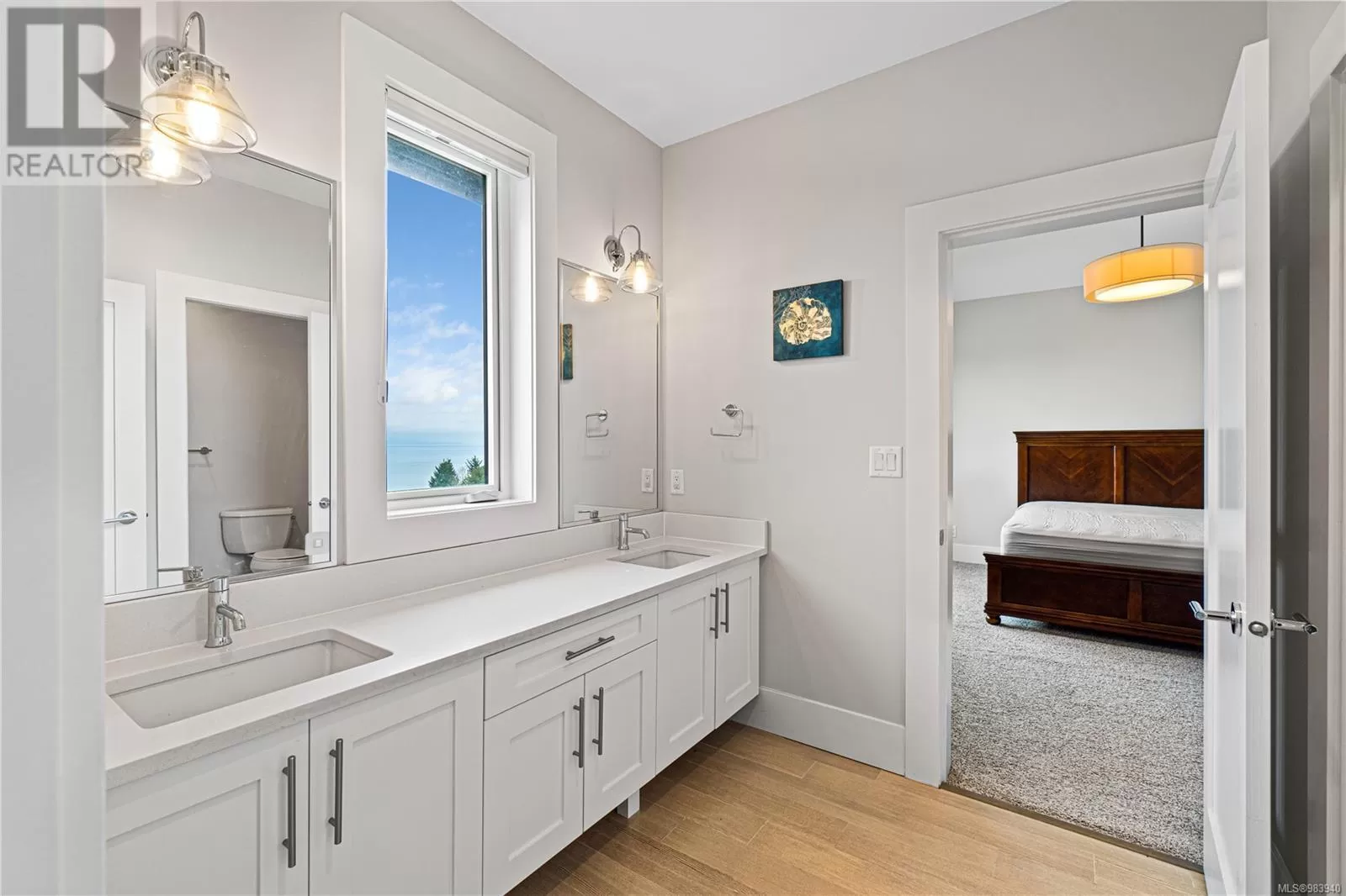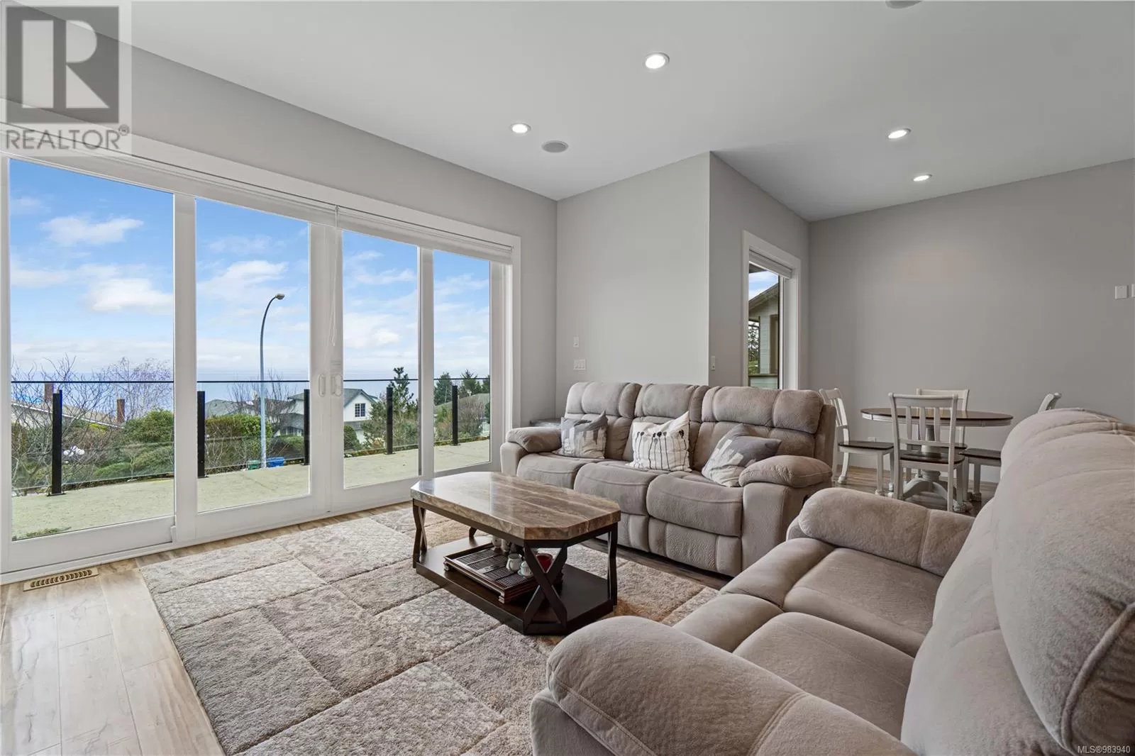 Beautiful semi-waterfront home located in the highly desirable area of north Nanaimo. This unique 5,676 sq. ft. custom home features 6/7 bedrooms and 5 bathrooms, along with large picture windows that offer panoramic views of the ocean and coastal mountains. The main level boasts a functional open-concept floor plan with a spacious living room and high ceilings, a gourmet kitchen equipped with modern amenities, and access to a large deck facing the ocean. A formal dining room and cozy family room are situated at the back, overlooking the flat, fenced backyard with southern exposure. On the second level, the master suite offers exceptional views, a lavish ensuite, a walk-in closet, and a private deck facing the ocean. This level also includes two additional spacious bedrooms and a 4-piece bathroom. The lower floor features a home theatre, a guest room with an attached bathroom, and a legal 2-bedroom suite. Outside, minimalistic, low-maintenance landscaping allows the property's natural beauty to shine. The home is within walking distance to the ocean and beaches, as well as elementary and secondary schools, with a 5-minute drive to shopping malls. Measurements are approximate; please verify if important. (id:27476)