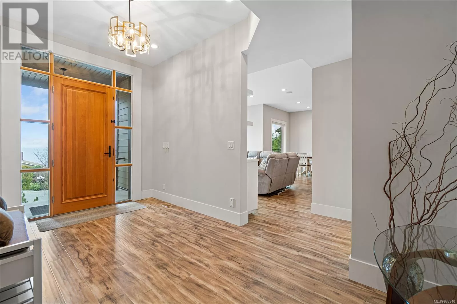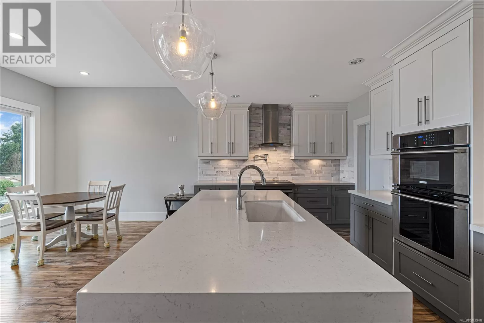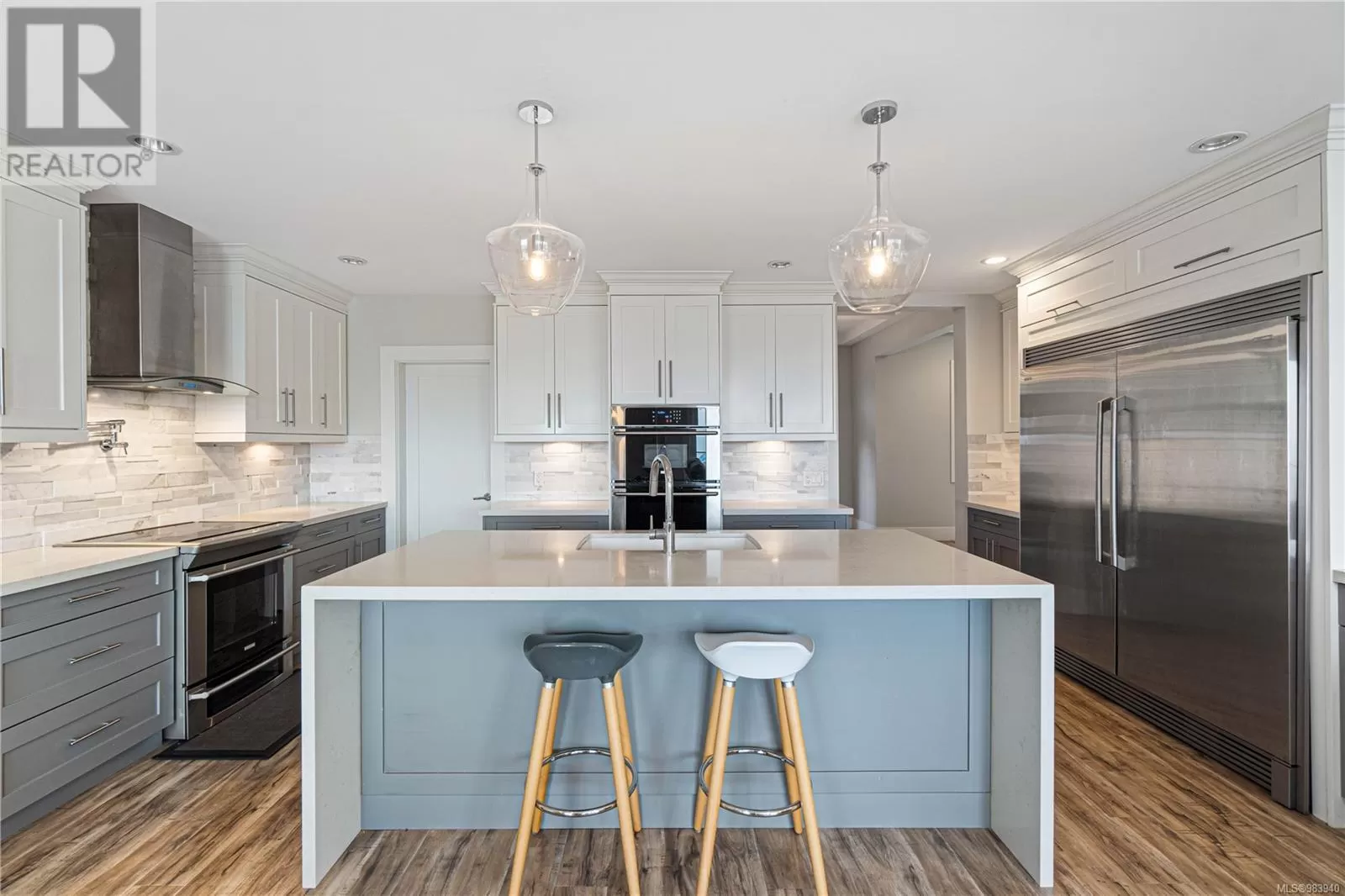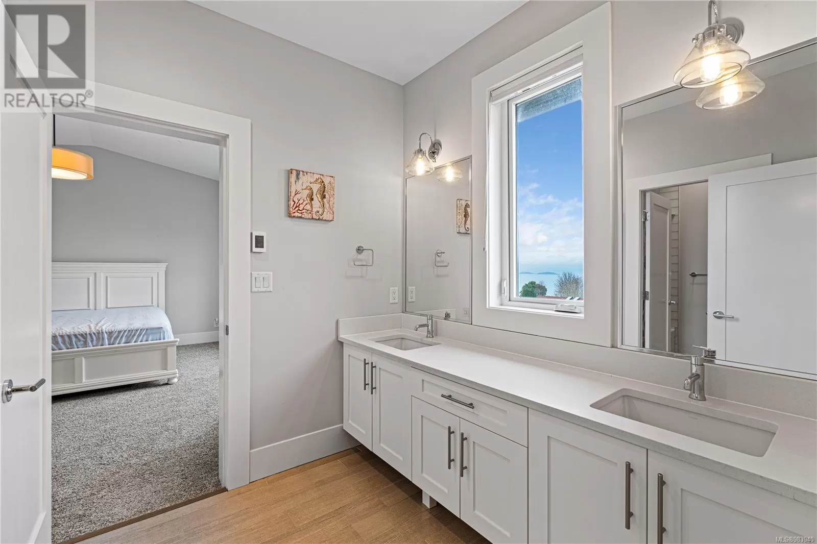 Beautiful semi-waterfront home located in the highly desirable area of north Nanaimo. This unique 5,676 sq. ft. custom home features 6/7 bedrooms and 5 bathrooms, along with large picture windows that offer panoramic views of the ocean and coastal mountains. The main level boasts a functional open-concept floor plan with a spacious living room and high ceilings, a gourmet kitchen equipped with modern amenities, and access to a large deck facing the ocean. A formal dining room and cozy family room are situated at the back, overlooking the flat, fenced backyard with southern exposure. On the second level, the master suite offers exceptional views, a lavish ensuite, a walk-in closet, and a private deck facing the ocean. This level also includes two additional spacious bedrooms and a 4-piece bathroom. The lower floor features a home theatre, a guest room with an attached bathroom, and a legal 2-bedroom suite. Outside, minimalistic, low-maintenance landscaping allows the property's natural beauty to shine. The home is within walking distance to the ocean and beaches, as well as elementary and secondary schools, with a 5-minute drive to shopping malls. Measurements are approximate; please verify if important. (id:27476)