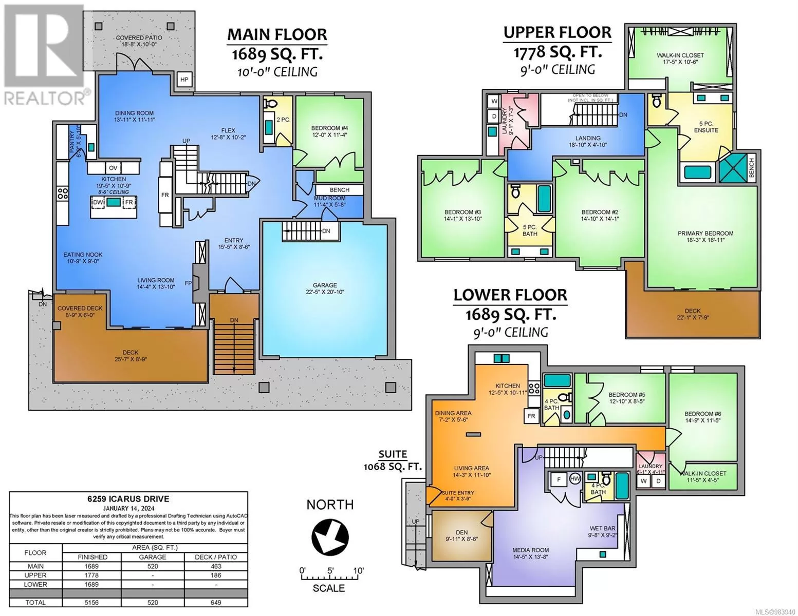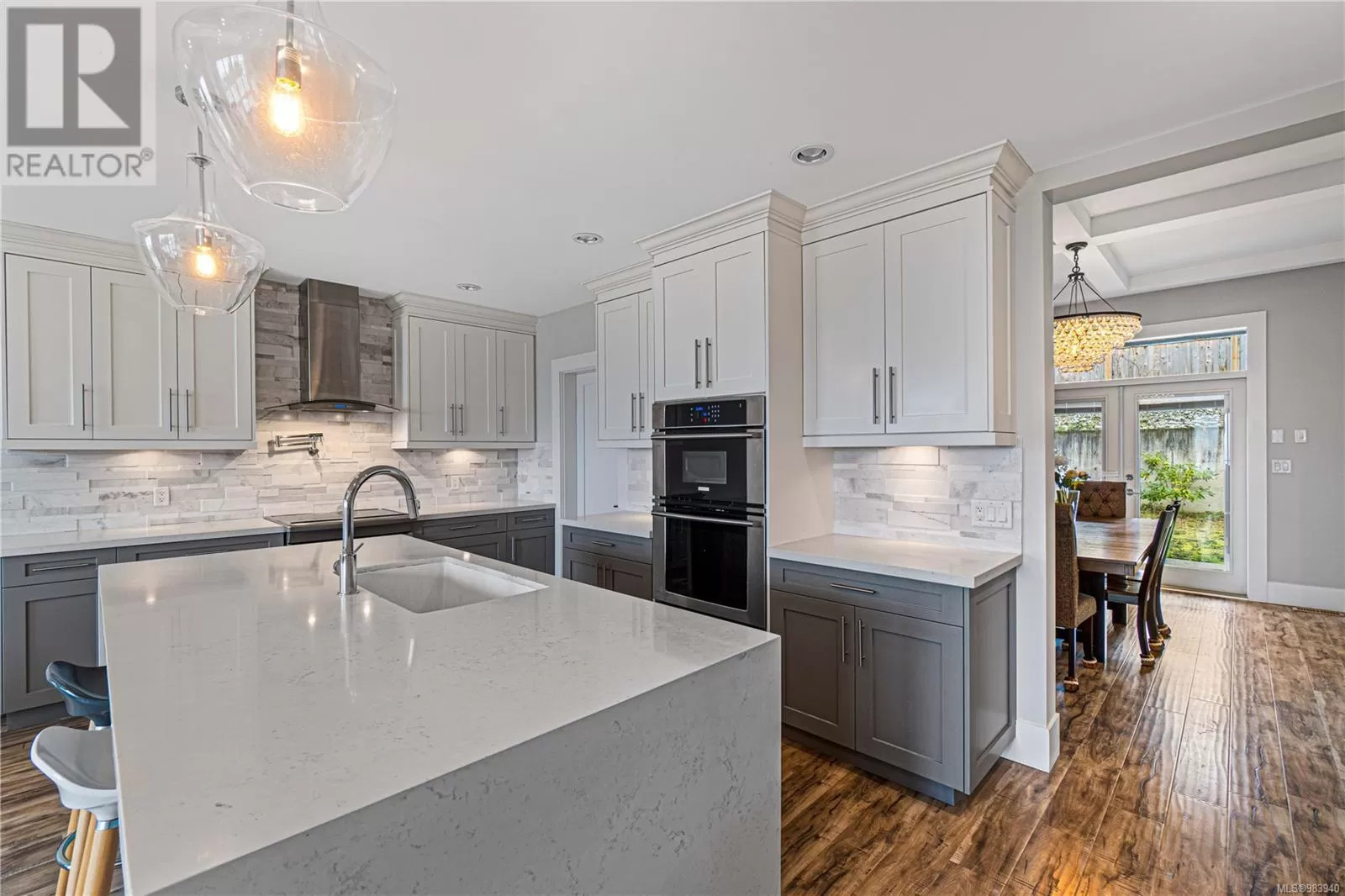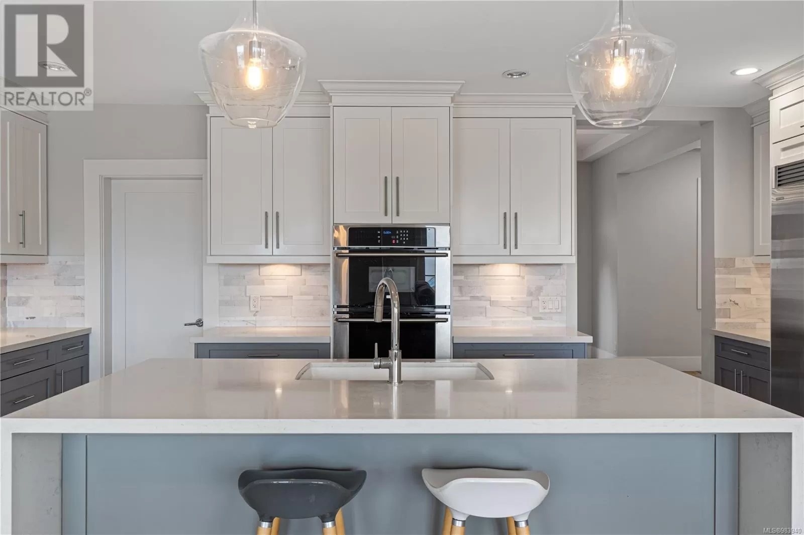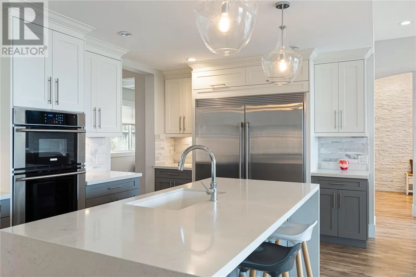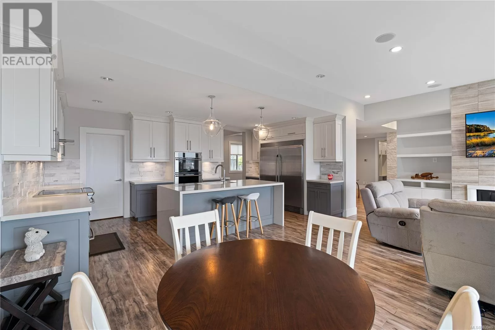Beautiful semi-waterfront home located in the highly desirable area of north Nanaimo. This unique 5,676 sq. ft. custom home features 6/7 bedrooms and 5 bathrooms, along with large picture windows that offer panoramic views of the ocean and coastal mountains. The main level boasts a functional open-concept floor plan with a spacious living room and high ceilings, a gourmet kitchen equipped with modern amenities, and access to a large deck facing the ocean. A formal dining room and cozy family room are situated at the back, overlooking the flat, fenced backyard with southern exposure. On the second level, the master suite offers exceptional views, a lavish ensuite, a walk-in closet, and a private deck facing the ocean. This level also includes two additional spacious bedrooms and a 4-piece bathroom. The lower floor features a home theatre, a guest room with an attached bathroom, and a legal 2-bedroom suite. Outside, minimalistic, low-maintenance landscaping allows the property's natural beauty to shine. The home is within walking distance to the ocean and beaches, as well as elementary and secondary schools, with a 5-minute drive to shopping malls. Measurements are approximate; please verify if important. (id:27476)