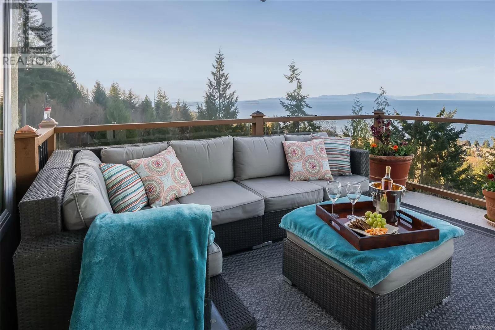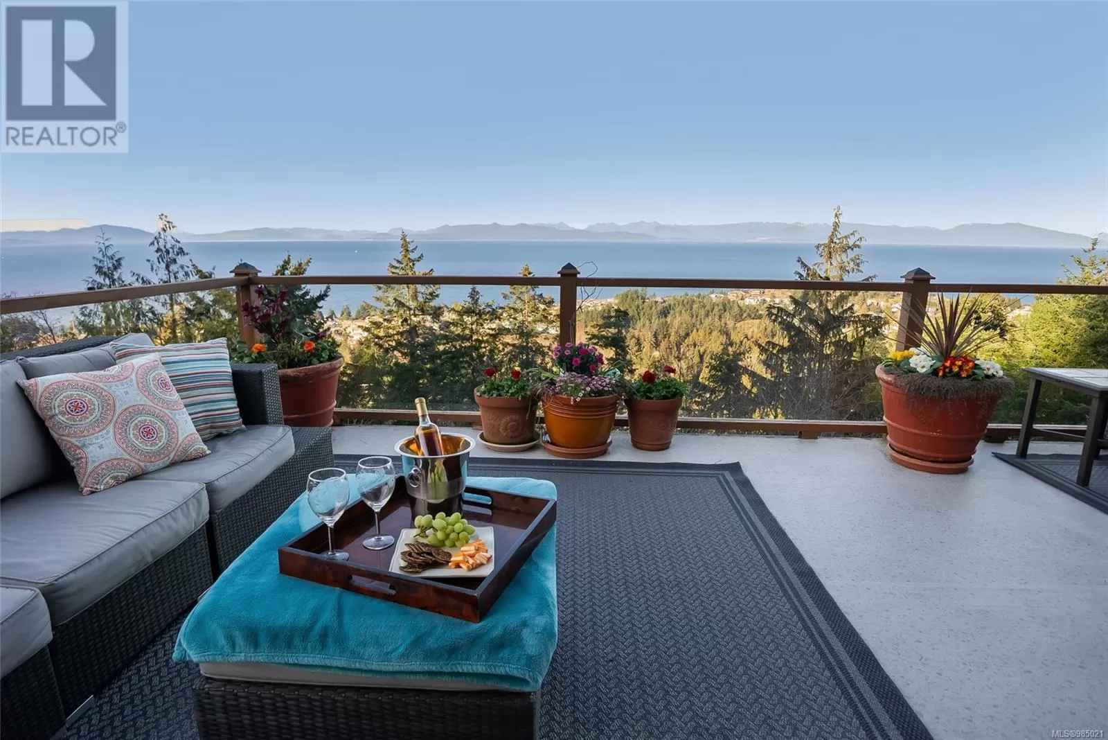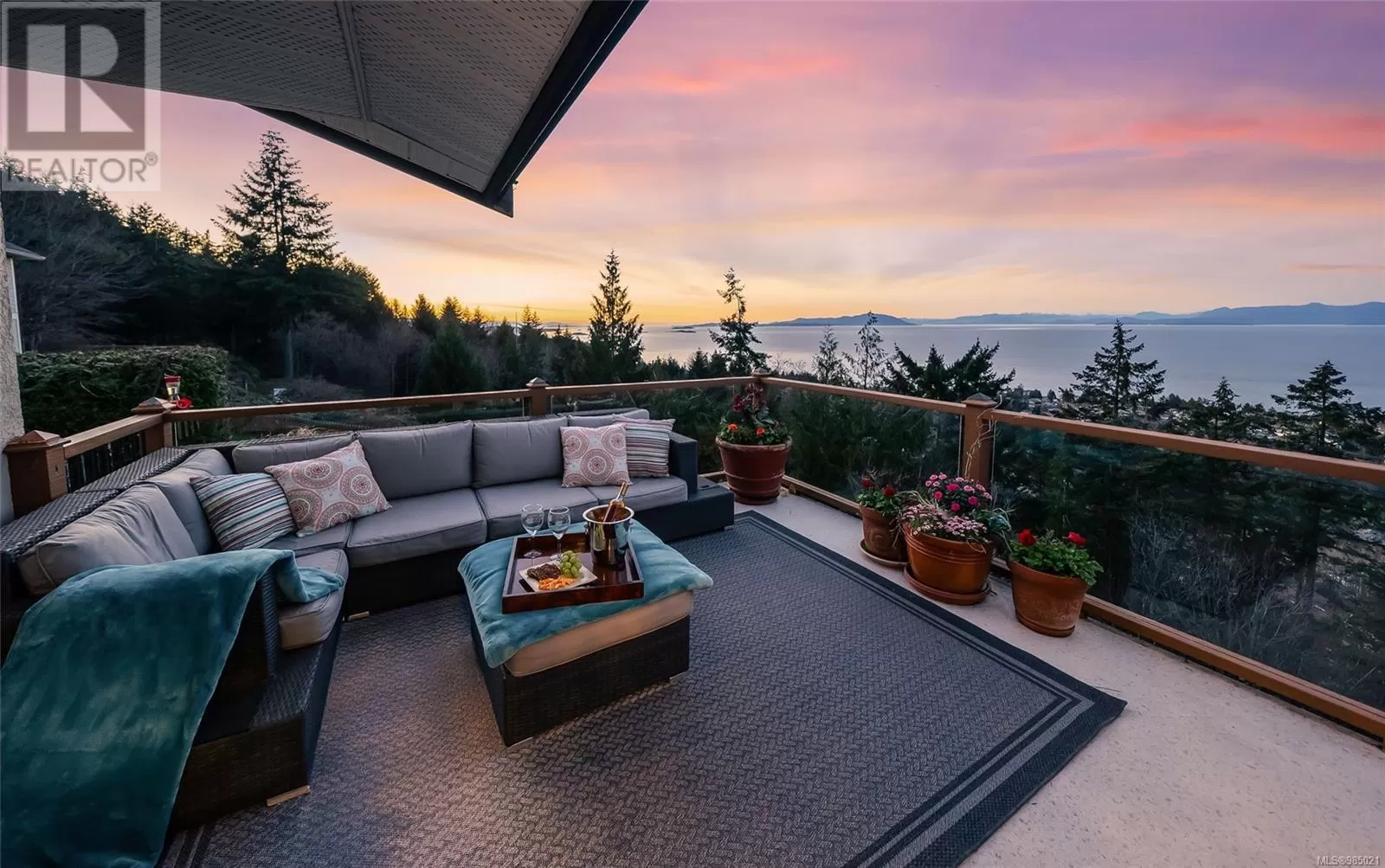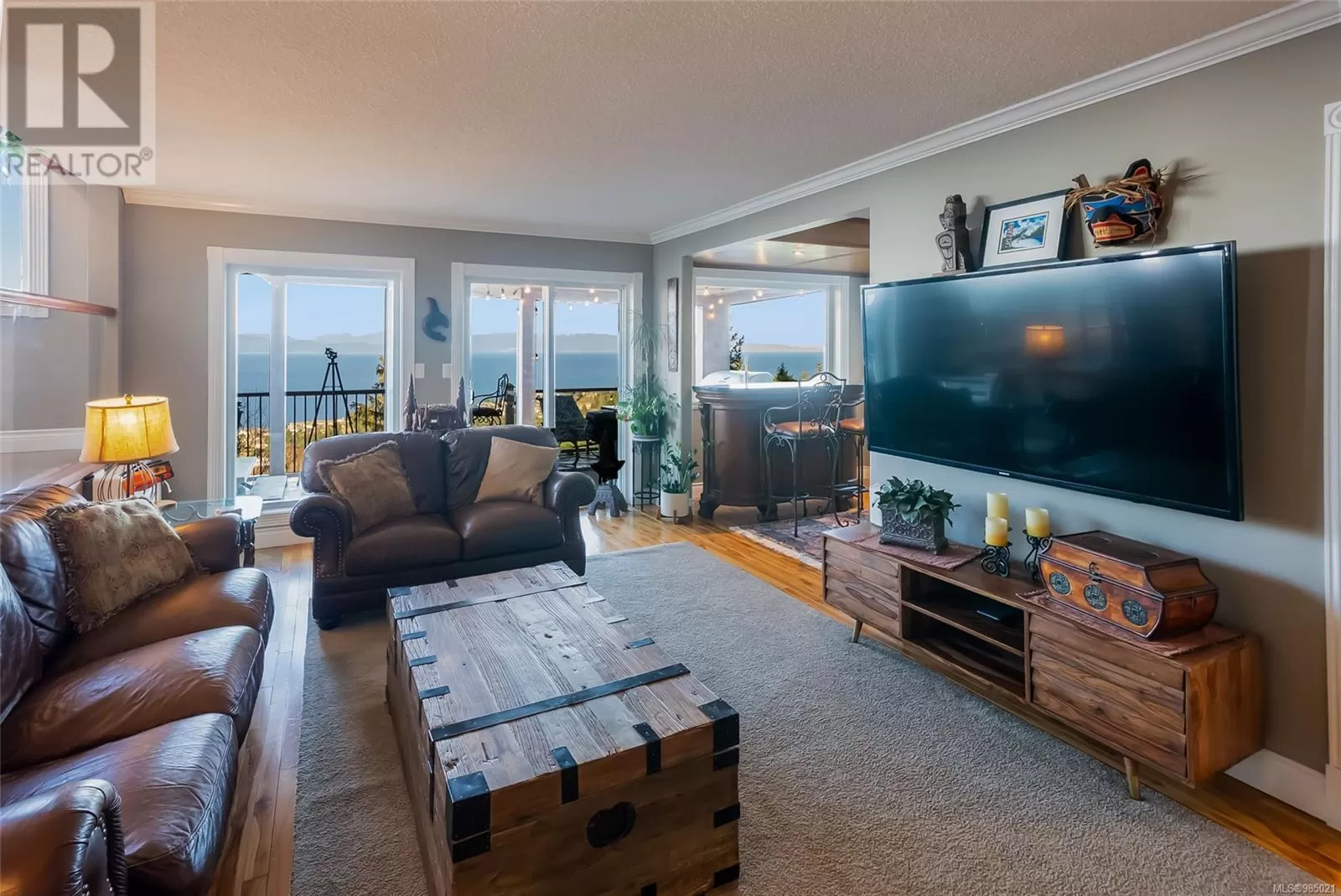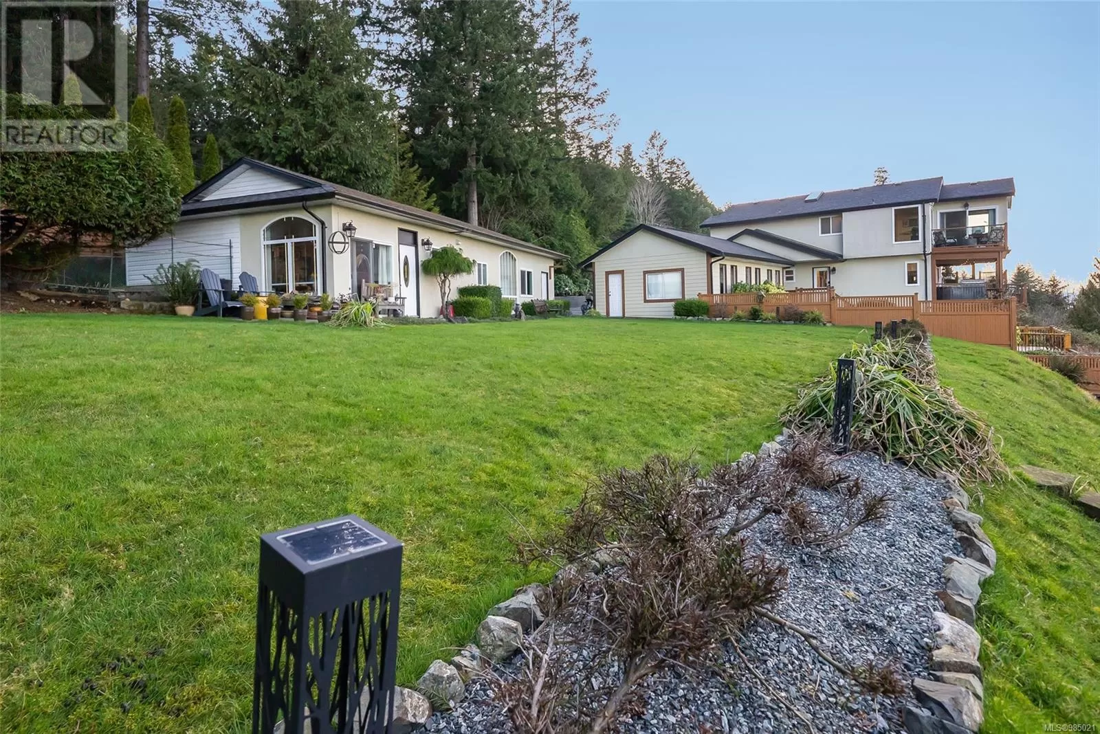 Welcome to one of the most breathtaking properties Vancouver Island has to offer at a fraction of the price a similar property would have in Metro Vancouver! This spectacular 1.18-acre estate features a stunning 4281 sq.ft. main home plus a 1235 sq.ft. guest house, all perched to capture panoramic, breath-taking, world-class ocean views. Step through the front door and be greeted by gleaming hardwood floors and a bright, open dining area framed by windows showcasing the endless ocean vistas. Off to the side, a cozy sitting room invites you to curl up by the fireplace and take in the serenity of your surroundings. Thoughtful design and quality craftsmanship are evident throughout this immaculate home. The chefâs kitchen is perfectly positioned to make the most of the view, with windows that span the entire front of the house, ensuring the ocean is always in sight. Upstairs, the primary bedroom suite offers a luxurious retreat with a spa-like Jacuzzi tub, ideal for unwinding as you watch the sun set in brilliant colour. The main residence is currently configured with 3 separate living areas: a spacious 3-bedroom upper residence (2693 sq.ft.), & 1-bedroom studio suite. A freshly renovated, self contained, 2-bedroom suite (1588 sq.ft.) on the lower level. The home can easily be reconfigured back into one expansive living space if desired. The separate 1235 sq.ft. guest house features a kitchen, 4-piece bathroom, 2 bedrooms, and two living areas. Plenty of parking for all your guests and toys. The property offers development potential or leave it intact and benefit from having a gorgeous estate property . All trees directly in front of the home are on the property, ensuring your incredible views will remain unobstructed for years to come. Donât miss this rare opportunity to own a truly remarkable estate where peace, privacy, and panoramic beauty converge. This is a home that must be experienced in person to truly appreciate its magic. (id:27476)