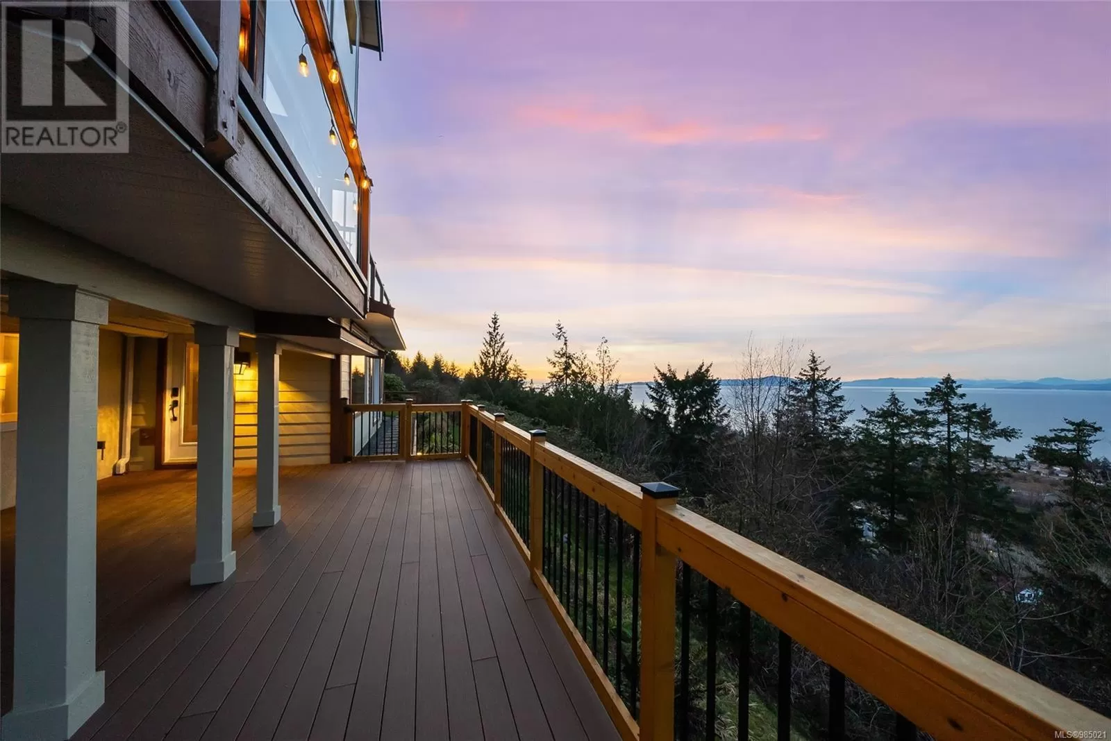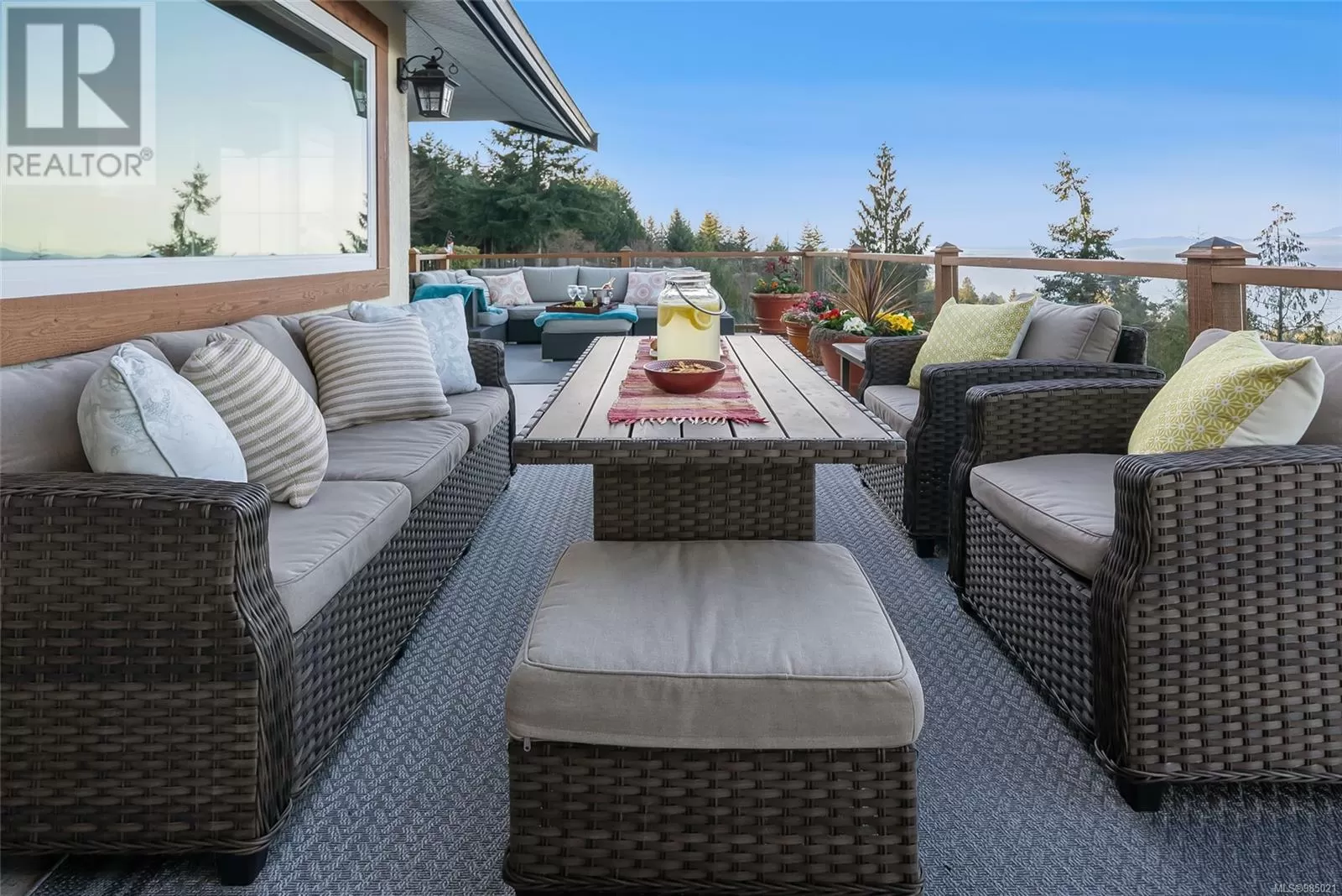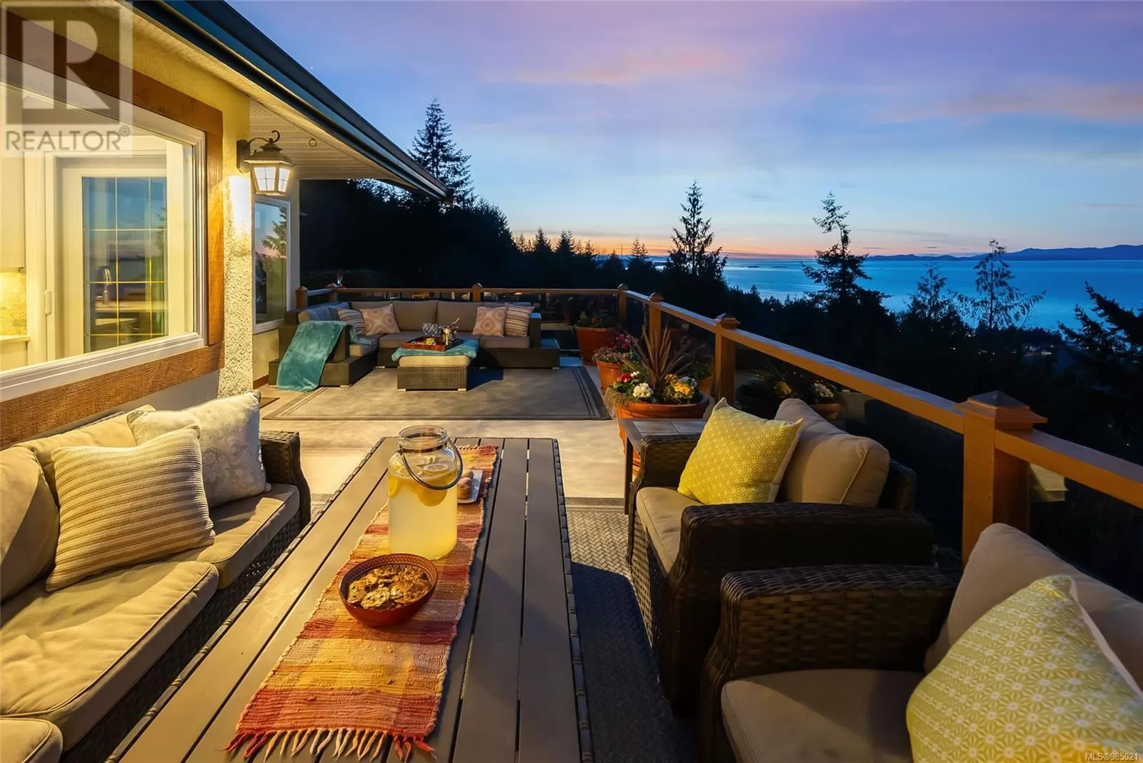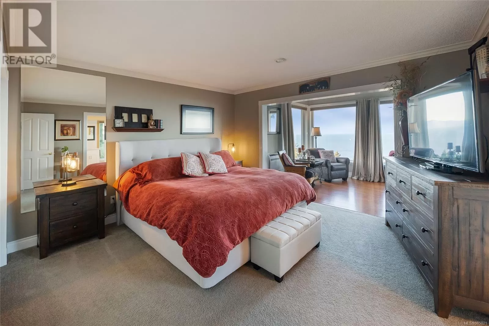 Welcome to one of the most breathtaking properties Vancouver Island has to offer at a fraction of the price a similar property would have in Metro Vancouver! This spectacular 1.18-acre estate features a stunning 4281 sq.ft. main home plus a 1235 sq.ft. guest house, all perched to capture panoramic, breath-taking, world-class ocean views. Step through the front door and be greeted by gleaming hardwood floors and a bright, open dining area framed by windows showcasing the endless ocean vistas. Off to the side, a cozy sitting room invites you to curl up by the fireplace and take in the serenity of your surroundings. Thoughtful design and quality craftsmanship are evident throughout this immaculate home. The chefâs kitchen is perfectly positioned to make the most of the view, with windows that span the entire front of the house, ensuring the ocean is always in sight. Upstairs, the primary bedroom suite offers a luxurious retreat with a spa-like Jacuzzi tub, ideal for unwinding as you watch the sun set in brilliant colour. The main residence is currently configured with 3 separate living areas: a spacious 3-bedroom upper residence (2693 sq.ft.), & 1-bedroom studio suite. A freshly renovated, self contained, 2-bedroom suite (1588 sq.ft.) on the lower level. The home can easily be reconfigured back into one expansive living space if desired. The separate 1235 sq.ft. guest house features a kitchen, 4-piece bathroom, 2 bedrooms, and two living areas. Plenty of parking for all your guests and toys. The property offers development potential or leave it intact and benefit from having a gorgeous estate property . All trees directly in front of the home are on the property, ensuring your incredible views will remain unobstructed for years to come. Donât miss this rare opportunity to own a truly remarkable estate where peace, privacy, and panoramic beauty converge. This is a home that must be experienced in person to truly appreciate its magic. (id:27476)