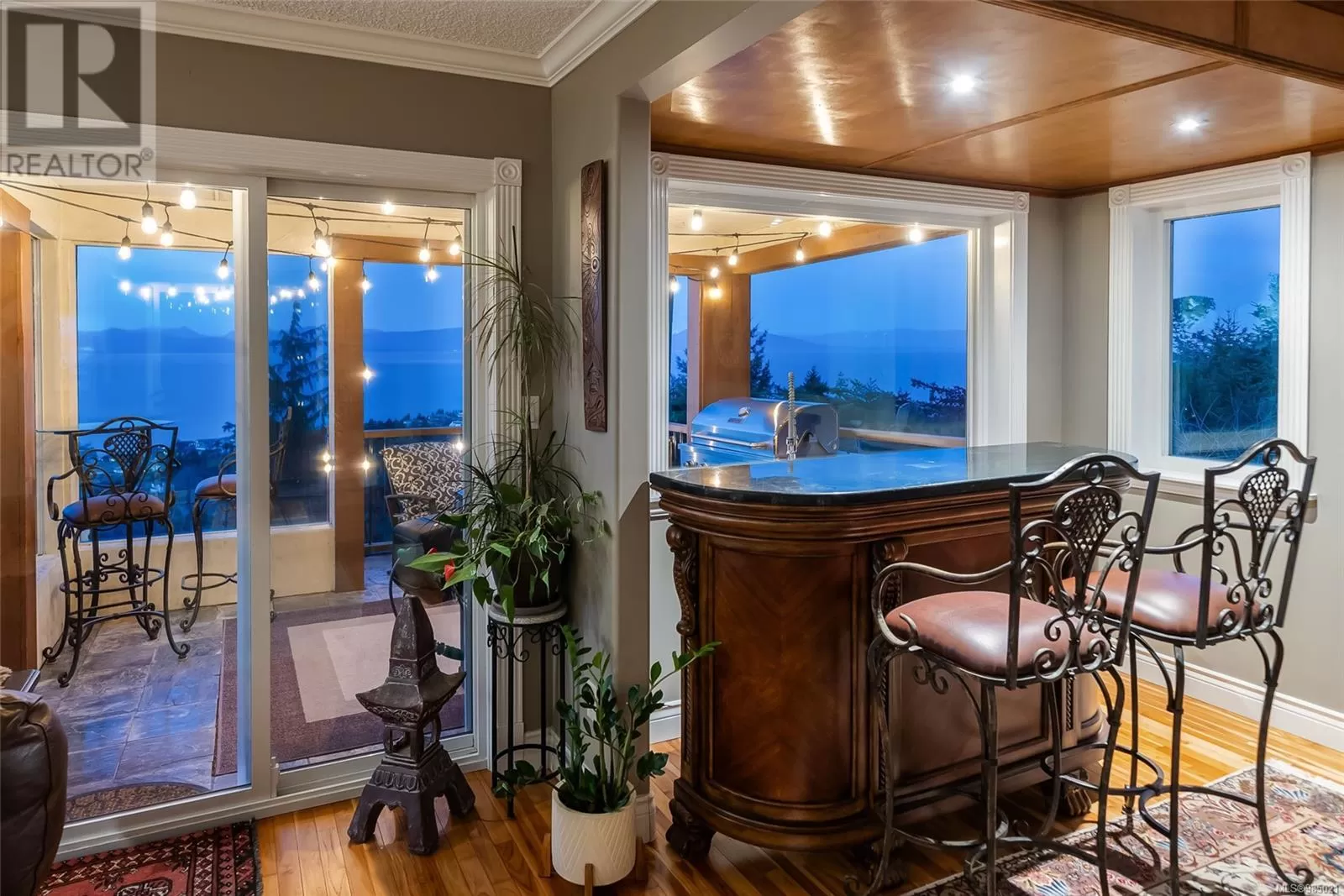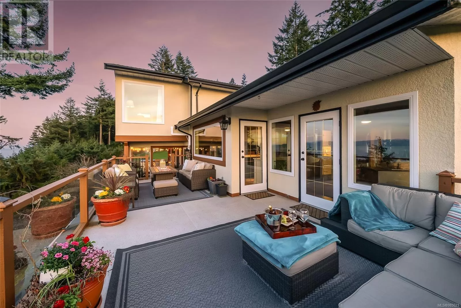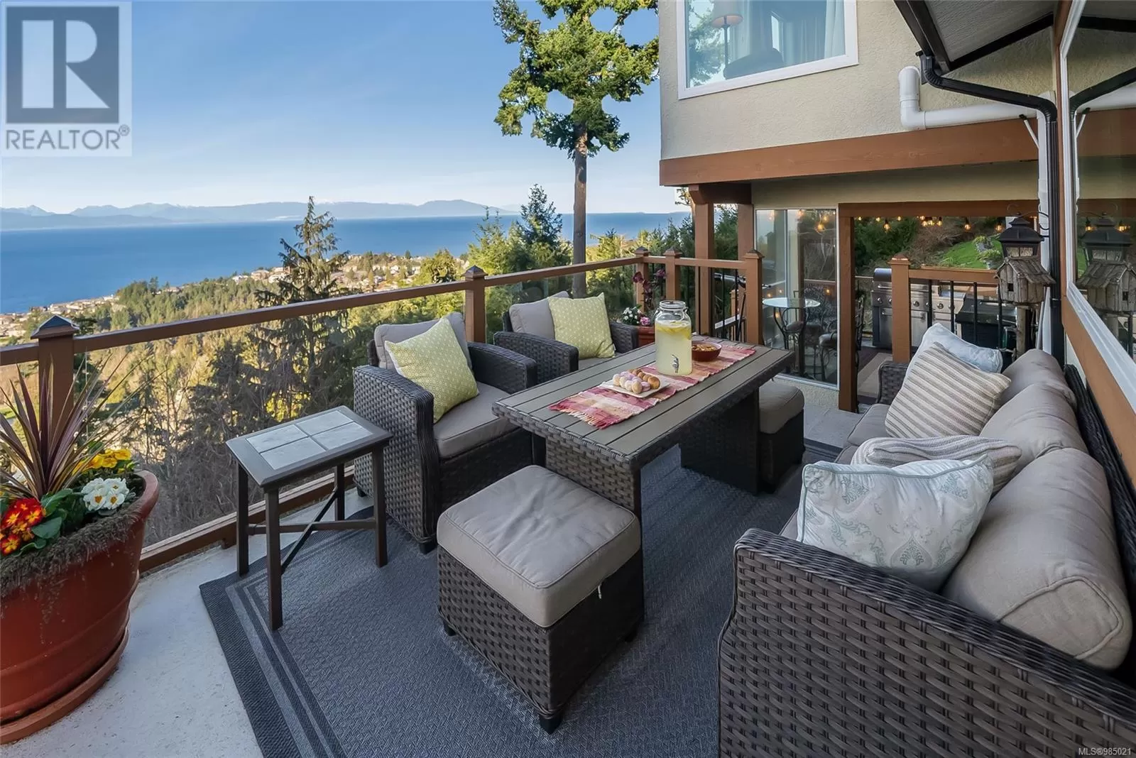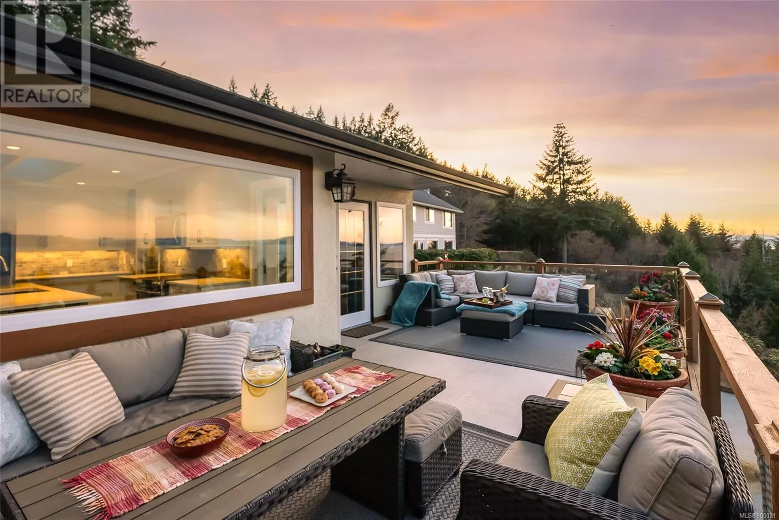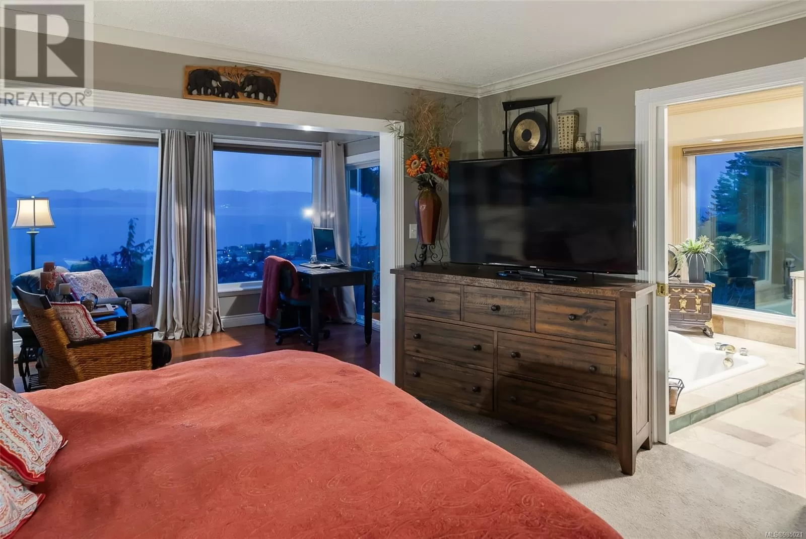 Welcome to one of the most breathtaking properties Vancouver Island has to offer at a fraction of the price a similar property would have in Metro Vancouver! This spectacular 1.18-acre estate features a stunning 4281 sq.ft. main home plus a 1235 sq.ft. guest house, all perched to capture panoramic, breath-taking, world-class ocean views. Step through the front door and be greeted by gleaming hardwood floors and a bright, open dining area framed by windows showcasing the endless ocean vistas. Off to the side, a cozy sitting room invites you to curl up by the fireplace and take in the serenity of your surroundings. Thoughtful design and quality craftsmanship are evident throughout this immaculate home. The chefâs kitchen is perfectly positioned to make the most of the view, with windows that span the entire front of the house, ensuring the ocean is always in sight. Upstairs, the primary bedroom suite offers a luxurious retreat with a spa-like Jacuzzi tub, ideal for unwinding as you watch the sun set in brilliant colour. The main residence is currently configured with 3 separate living areas: a spacious 3-bedroom upper residence (2693 sq.ft.), & 1-bedroom studio suite. A freshly renovated, self contained, 2-bedroom suite (1588 sq.ft.) on the lower level. The home can easily be reconfigured back into one expansive living space if desired. The separate 1235 sq.ft. guest house features a kitchen, 4-piece bathroom, 2 bedrooms, and two living areas. Plenty of parking for all your guests and toys. The property offers development potential or leave it intact and benefit from having a gorgeous estate property . All trees directly in front of the home are on the property, ensuring your incredible views will remain unobstructed for years to come. Donât miss this rare opportunity to own a truly remarkable estate where peace, privacy, and panoramic beauty converge. This is a home that must be experienced in person to truly appreciate its magic. (id:27476)