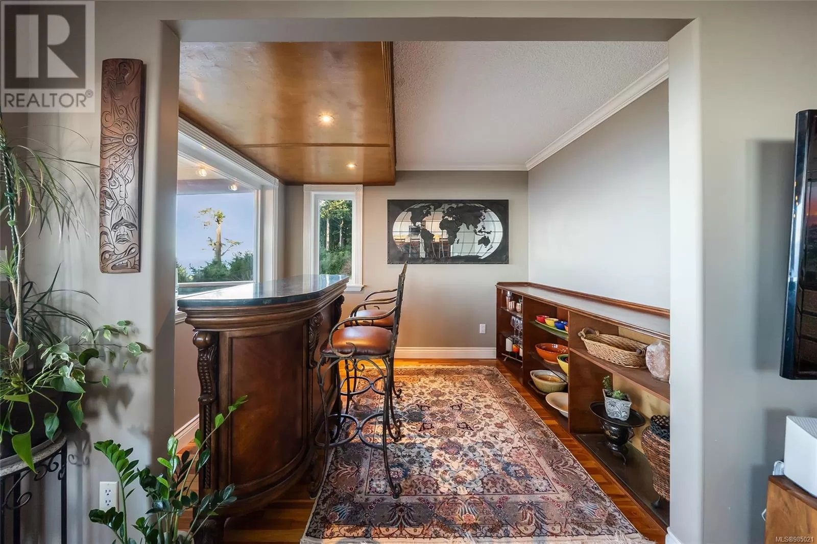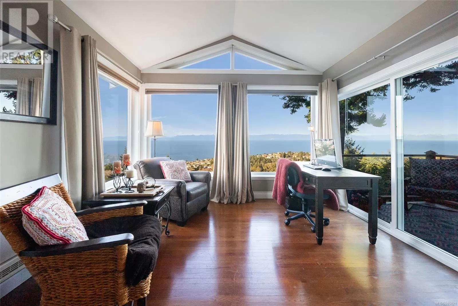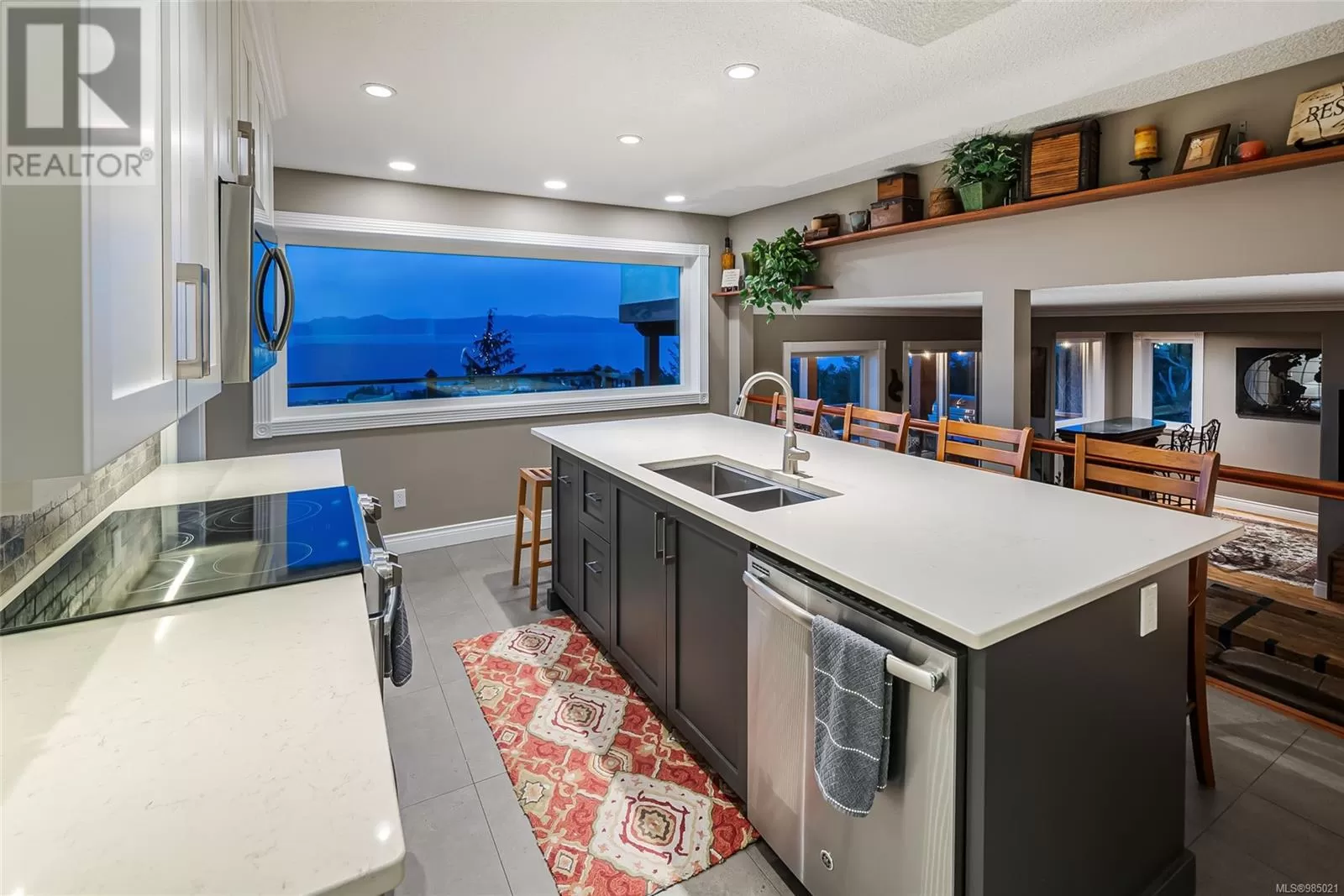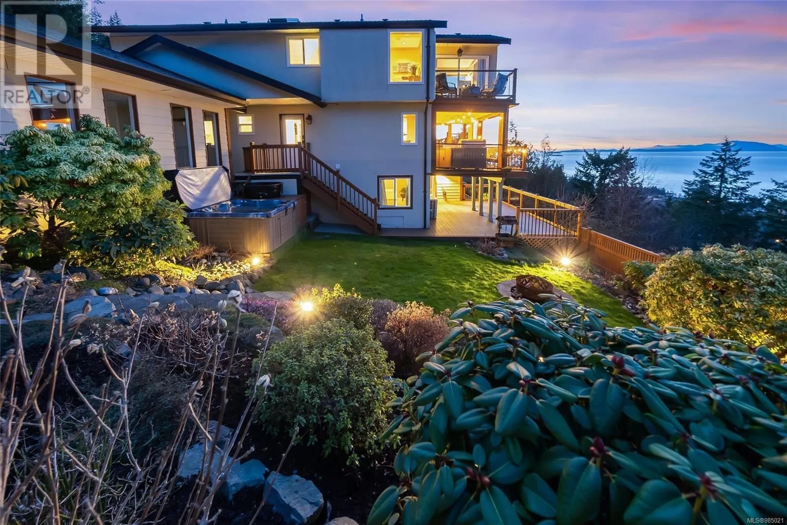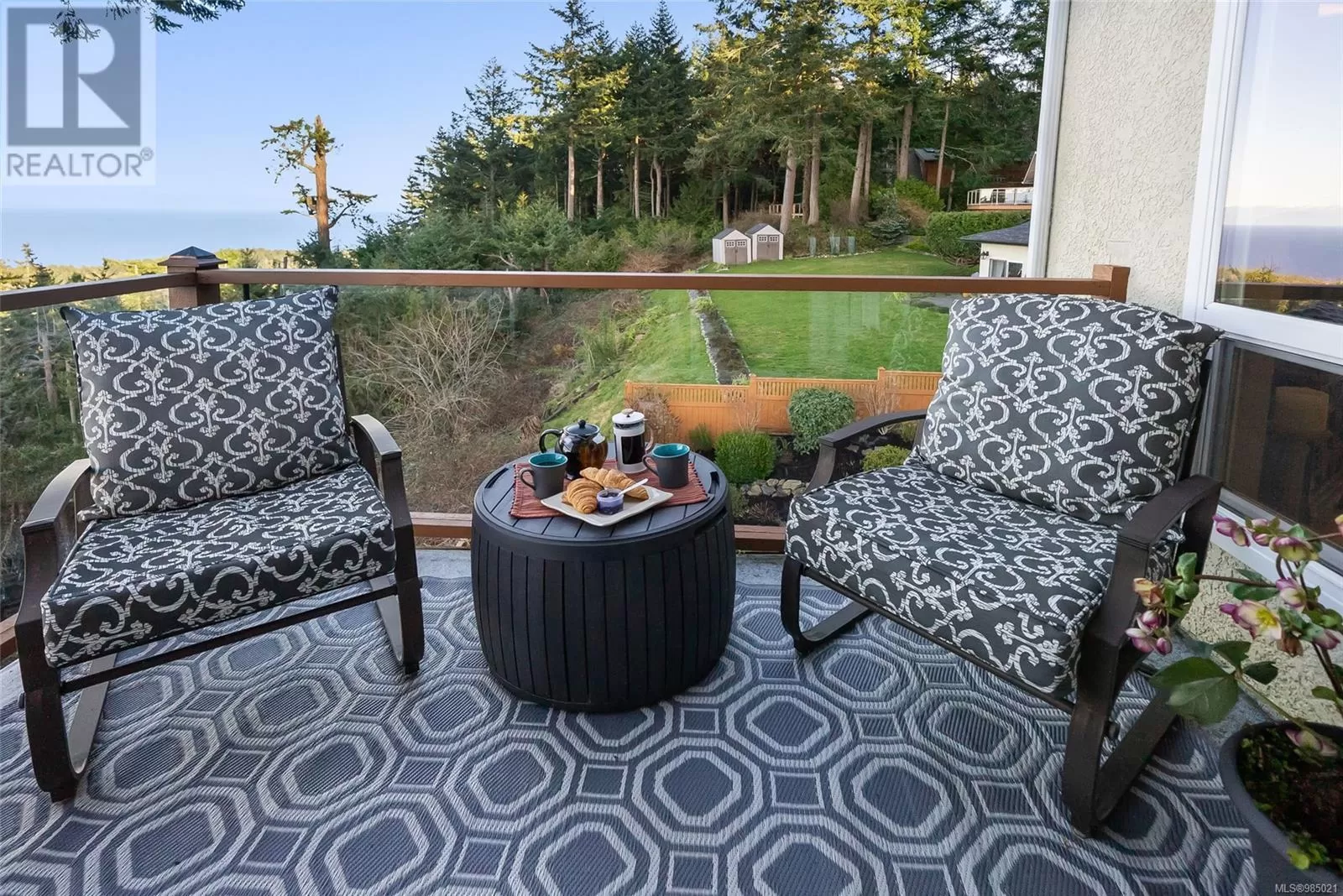 Welcome to one of the most breathtaking properties Vancouver Island has to offer at a fraction of the price a similar property would have in Metro Vancouver! This spectacular 1.18-acre estate features a stunning 4281 sq.ft. main home plus a 1235 sq.ft. guest house, all perched to capture panoramic, breath-taking, world-class ocean views. Step through the front door and be greeted by gleaming hardwood floors and a bright, open dining area framed by windows showcasing the endless ocean vistas. Off to the side, a cozy sitting room invites you to curl up by the fireplace and take in the serenity of your surroundings. Thoughtful design and quality craftsmanship are evident throughout this immaculate home. The chefâs kitchen is perfectly positioned to make the most of the view, with windows that span the entire front of the house, ensuring the ocean is always in sight. Upstairs, the primary bedroom suite offers a luxurious retreat with a spa-like Jacuzzi tub, ideal for unwinding as you watch the sun set in brilliant colour. The main residence is currently configured with 3 separate living areas: a spacious 3-bedroom upper residence (2693 sq.ft.), & 1-bedroom studio suite. A freshly renovated, self contained, 2-bedroom suite (1588 sq.ft.) on the lower level. The home can easily be reconfigured back into one expansive living space if desired. The separate 1235 sq.ft. guest house features a kitchen, 4-piece bathroom, 2 bedrooms, and two living areas. Plenty of parking for all your guests and toys. The property offers development potential or leave it intact and benefit from having a gorgeous estate property . All trees directly in front of the home are on the property, ensuring your incredible views will remain unobstructed for years to come. Donât miss this rare opportunity to own a truly remarkable estate where peace, privacy, and panoramic beauty converge. This is a home that must be experienced in person to truly appreciate its magic. (id:27476)
