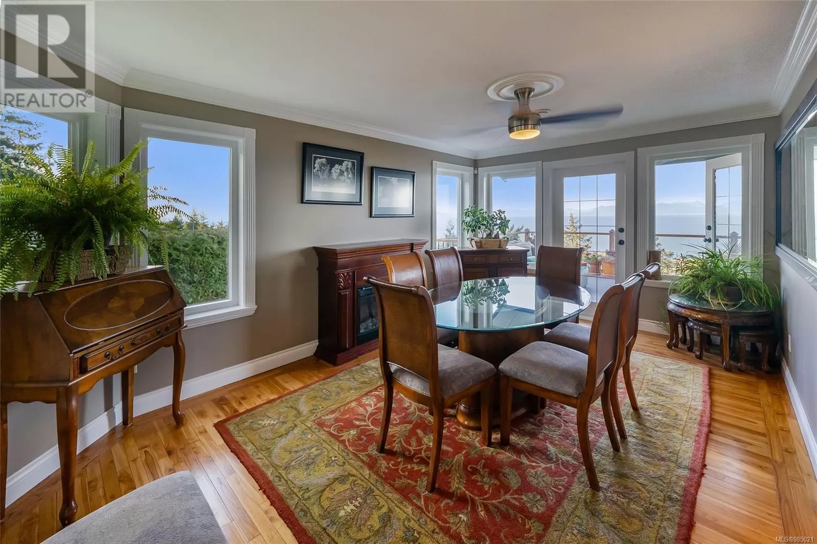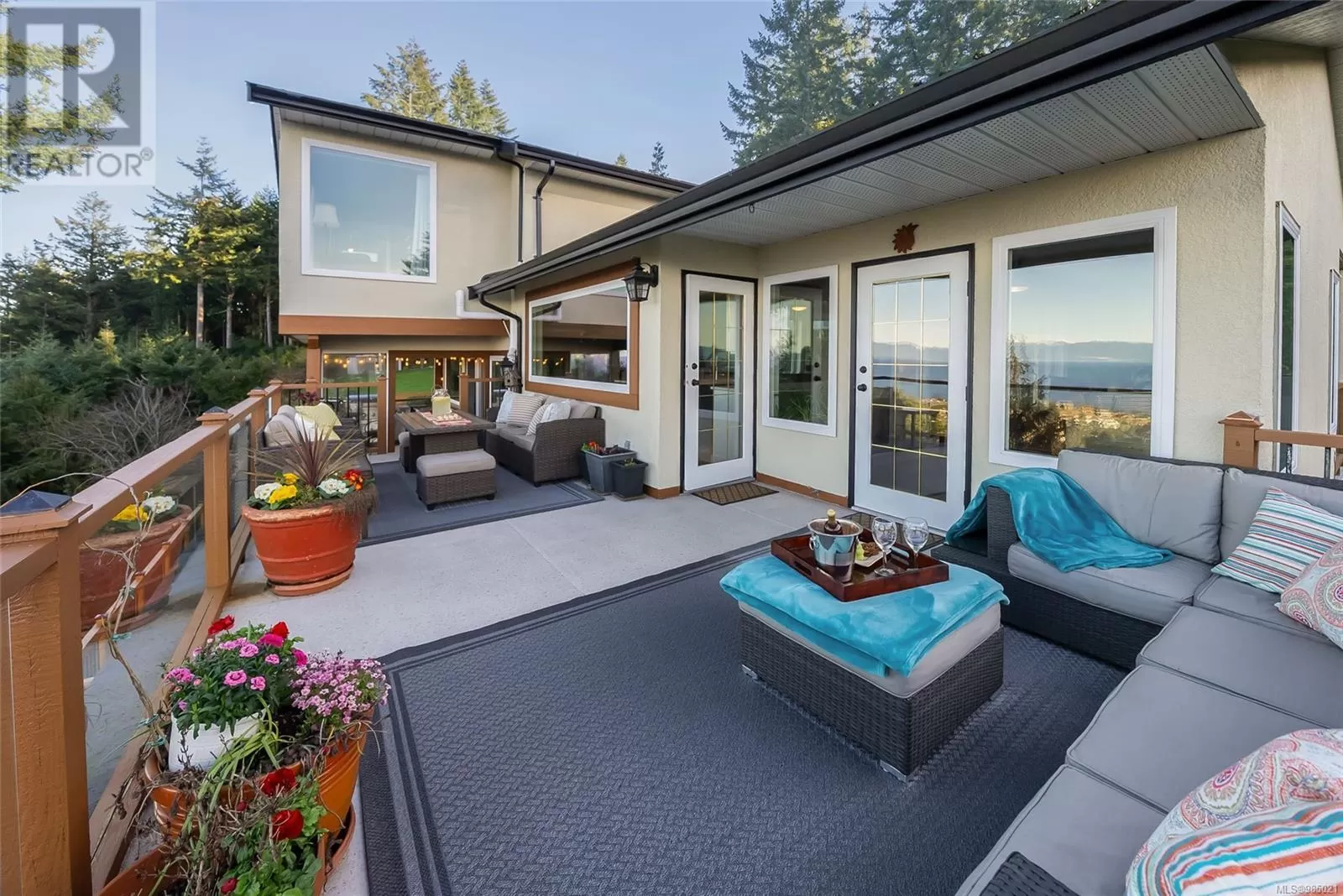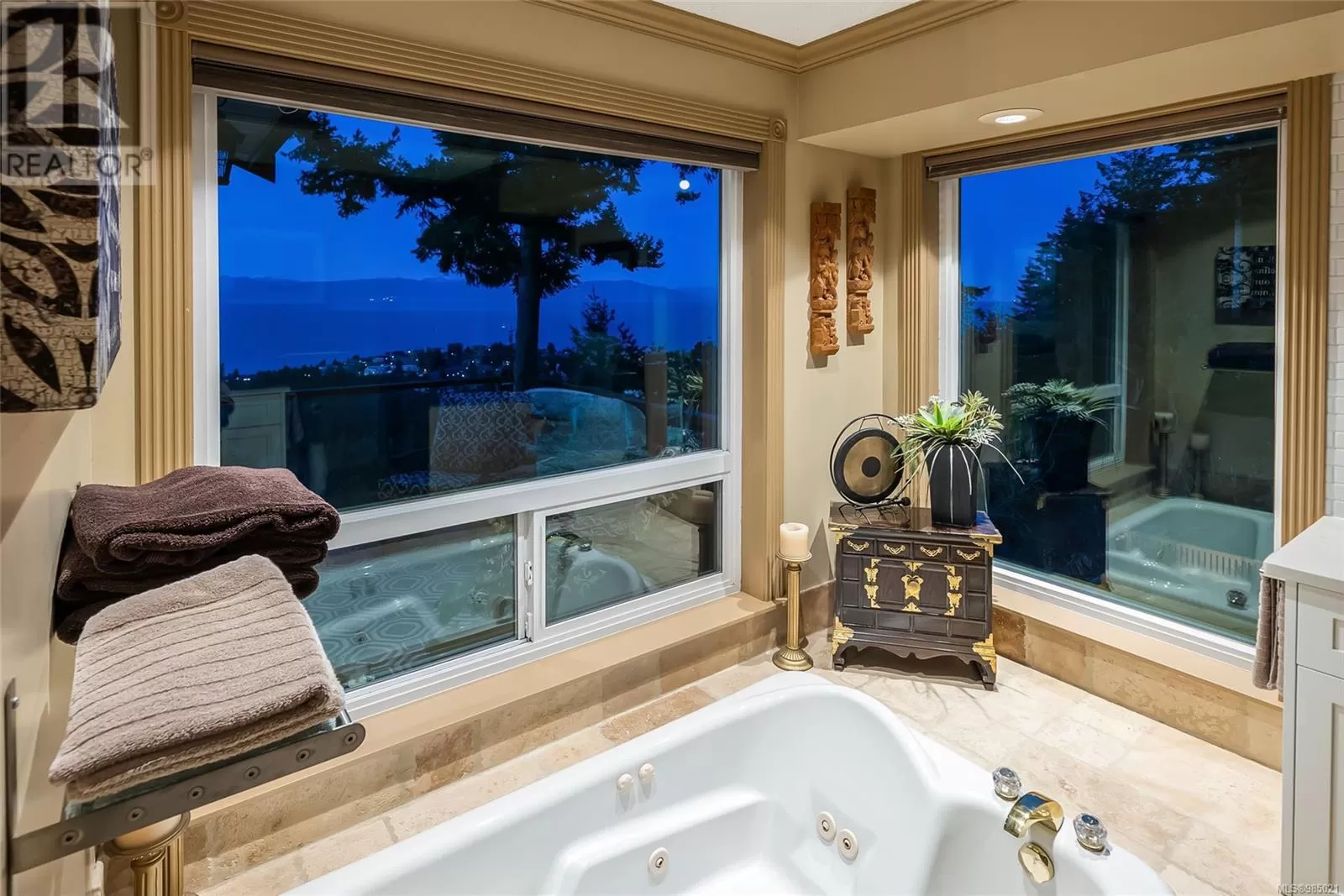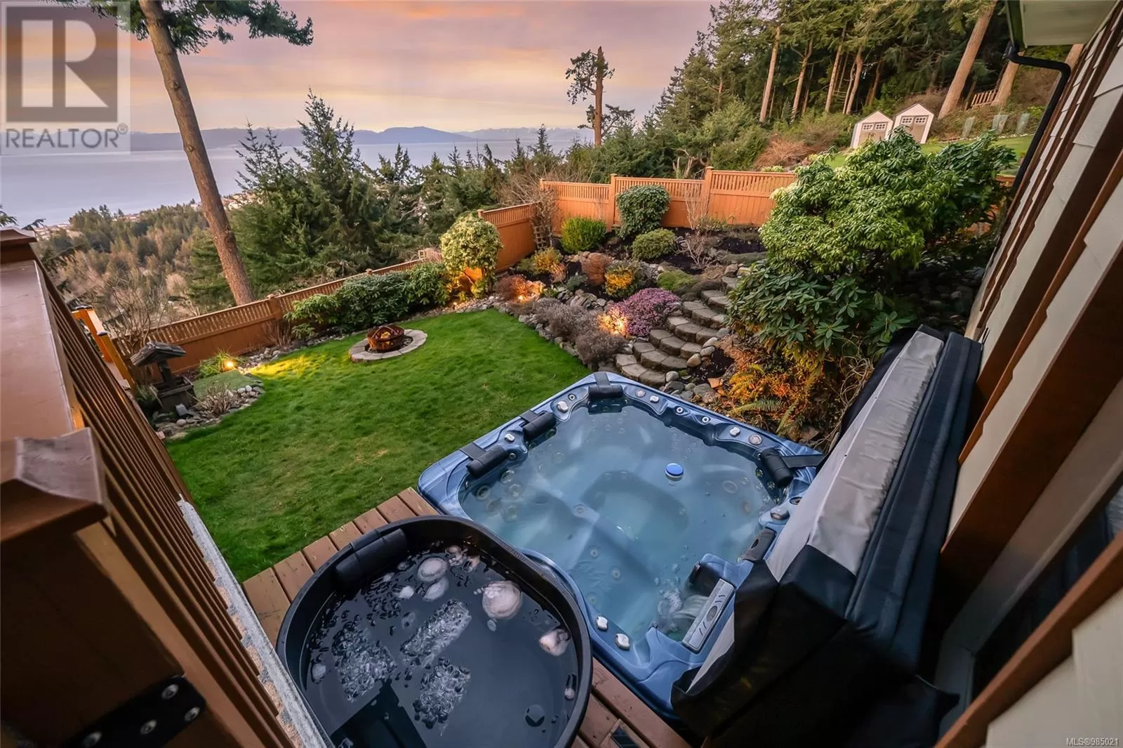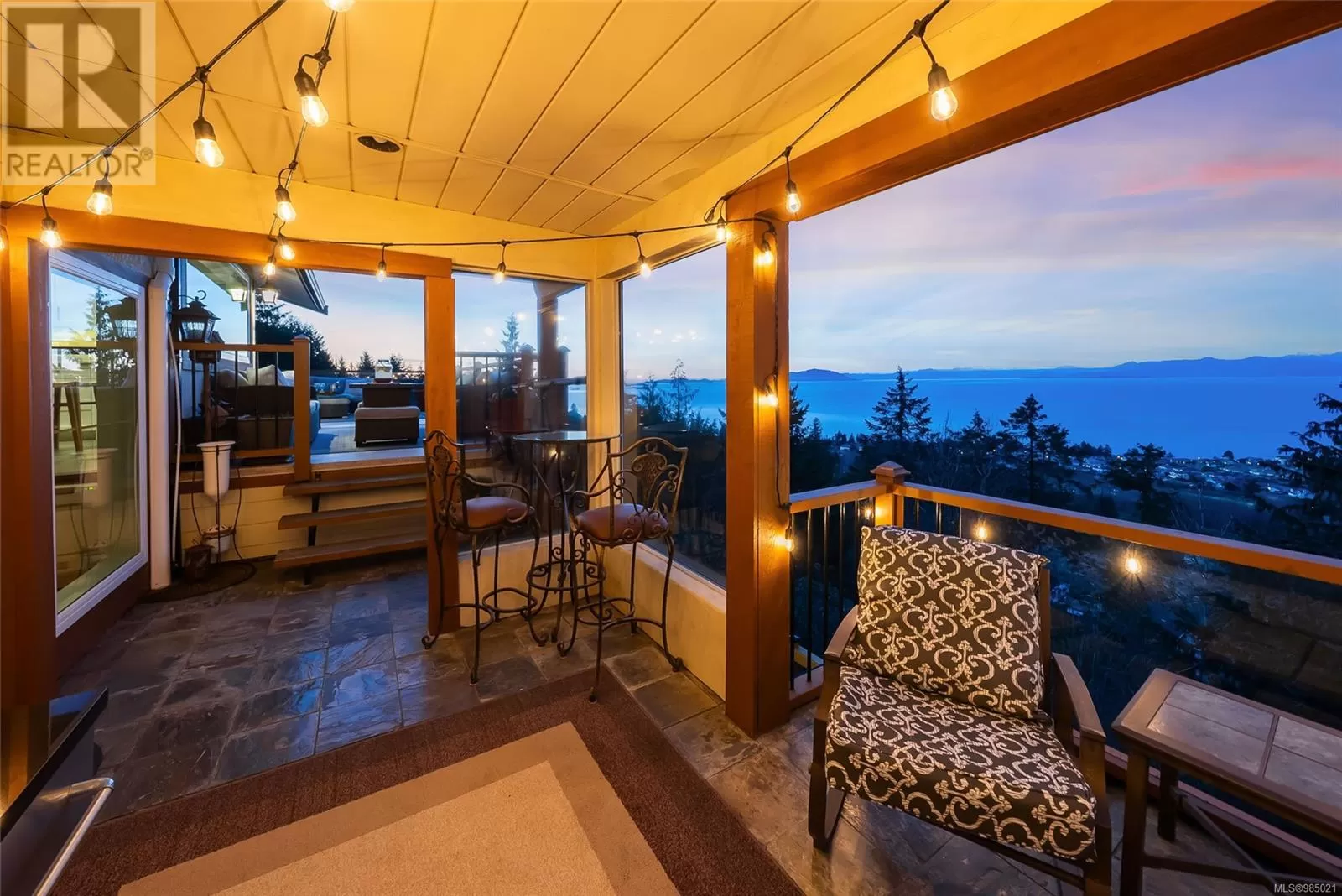 Welcome to one of the most breathtaking properties Vancouver Island has to offer at a fraction of the price a similar property would have in Metro Vancouver! This spectacular 1.18-acre estate features a stunning 4281 sq.ft. main home plus a 1235 sq.ft. guest house, all perched to capture panoramic, breath-taking, world-class ocean views. Step through the front door and be greeted by gleaming hardwood floors and a bright, open dining area framed by windows showcasing the endless ocean vistas. Off to the side, a cozy sitting room invites you to curl up by the fireplace and take in the serenity of your surroundings. Thoughtful design and quality craftsmanship are evident throughout this immaculate home. The chefâs kitchen is perfectly positioned to make the most of the view, with windows that span the entire front of the house, ensuring the ocean is always in sight. Upstairs, the primary bedroom suite offers a luxurious retreat with a spa-like Jacuzzi tub, ideal for unwinding as you watch the sun set in brilliant colour. The main residence is currently configured with 3 separate living areas: a spacious 3-bedroom upper residence (2693 sq.ft.), & 1-bedroom studio suite. A freshly renovated, self contained, 2-bedroom suite (1588 sq.ft.) on the lower level. The home can easily be reconfigured back into one expansive living space if desired. The separate 1235 sq.ft. guest house features a kitchen, 4-piece bathroom, 2 bedrooms, and two living areas. Plenty of parking for all your guests and toys. The property offers development potential or leave it intact and benefit from having a gorgeous estate property . All trees directly in front of the home are on the property, ensuring your incredible views will remain unobstructed for years to come. Donât miss this rare opportunity to own a truly remarkable estate where peace, privacy, and panoramic beauty converge. This is a home that must be experienced in person to truly appreciate its magic. (id:27476)
