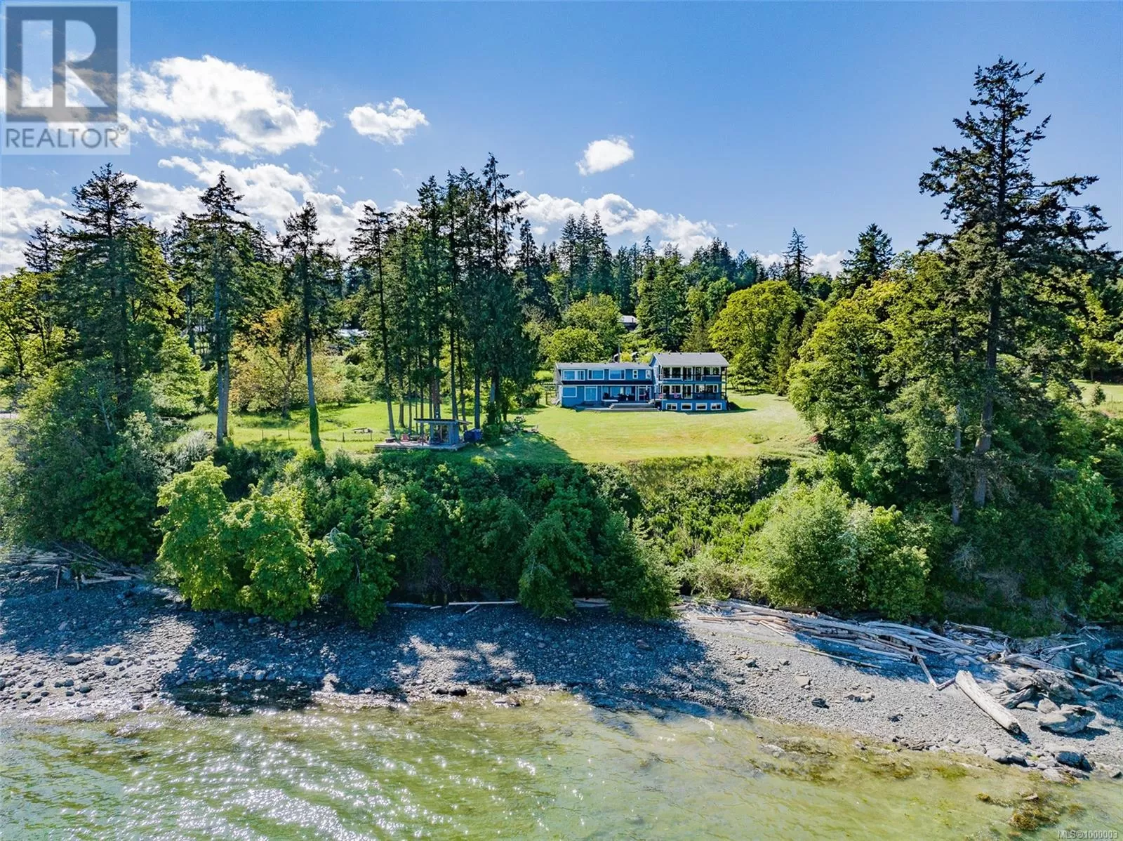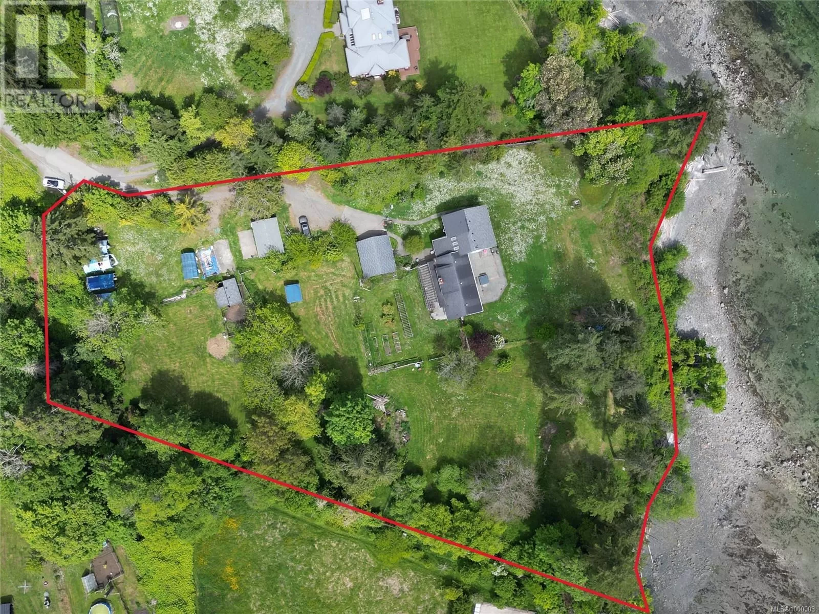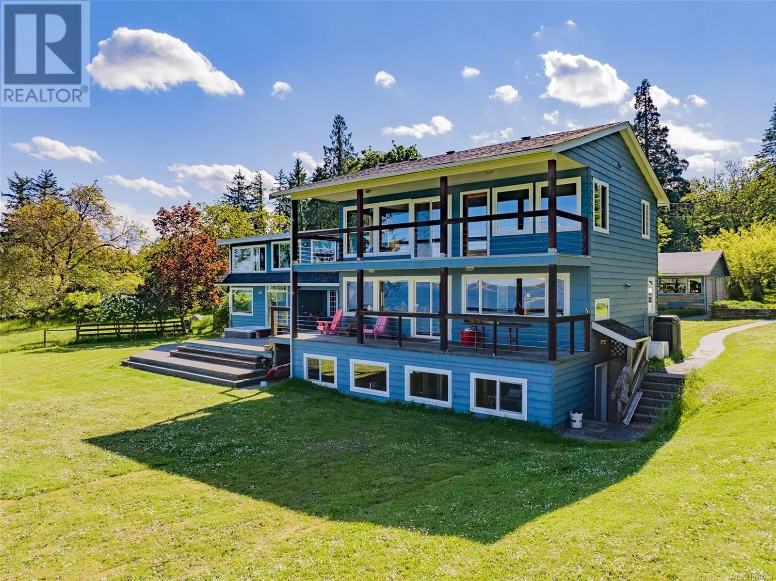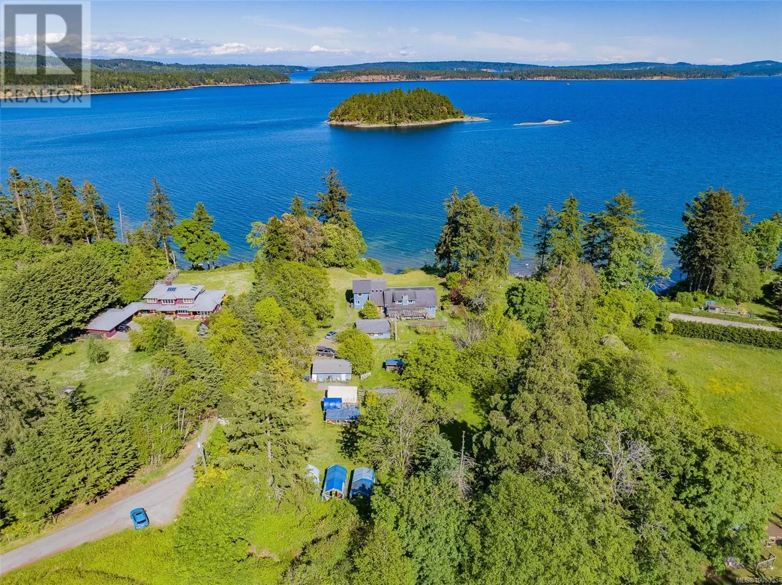West Coast Paradise may be the best way to describe this property. This stunning 3-acre estate overlooks the entrance to Stuart and Trincomali Channels. Sip your morning coffee while watching orcas pass byâwhether through the window, from the hot tub, sauna, or the expansive yard. The 4,200 sq. ft. home has been lovingly maintained by the same family for over 25 years and includes many unique features. Several outbuildingsâonce part of a kayaking tour companyâoffer utility and flexibility. Usable farmland, which has supported chickens and lambs, provides a low tax rate and farm status, and thereâs direct access to over 300 feet of waterfront. Inside, the main home boasts dramatic ocean views from nearly every room. The open kitchen features locally sourced Arbutus hardwood flooring from Gabriola Island. A cozy family room with wood-burning fireplace and an office round out the main level. Custom metalwork guides you upstairs to the primary bedroom with ensuite and private deck. There are five bedrooms in total, ideal for a growing or extended family. The lower level was once used as office space for the kayaking business and has potential to be converted into additional accommodations. Two additional outbuildings offer powered storage or vehicle spaceâone with a 3-piece bathroom. For those exploring generational living or development, the owner has begun work on a potential subdivision. A preliminary plan is available to qualified buyers, showing the potential for three separately titled lots (further assessments required). Additional upgrades include a new septic system, heat pump, and air conditioning. Opportunities like this rarely come up on Vancouver Islandâthis is truly a once-in-a-lifetime estate. (id:27476)