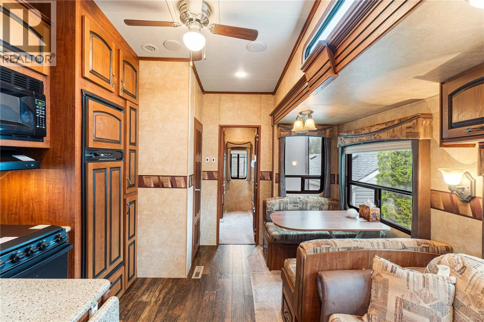 This 2 bedroom and 2 bathroom is move in ready at Resort on the Lake. Affordable housing on your own lot that comes with a fully loaded 2011 Jayco model 5th wheel . It has power awning ,jacks, all slide outs. Inside has a fridge/freezer, a new 43'' TV, microwave, fireplace, the oven has never been used, queen bed with storage underneath , There is room with hookups to put your own washer and dryer in if you don't want to use one of the 5 coin operated ones at the clubhouse. .Live on the Lake! You'll feel like you are on vacation all year round here at Westwood Lakes' Resort on the Lake. This is a fully serviced bare land strata which includes a lovely clubhouse with kitchen, lounge & Gym, swimming pool & hot tub & tennis/pickleball courts. The low strata fee includes water, sewer, garbage and Rogers/Shaw cable TV & internet. Special features are the east facing patio & planter garden and shed. Enjoy the garden when in season. (id:27476)