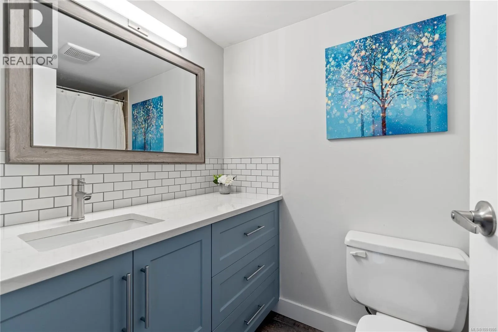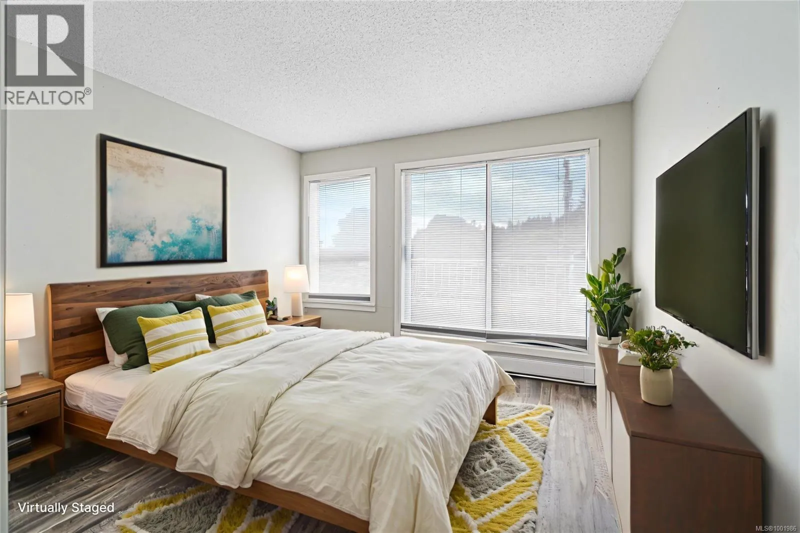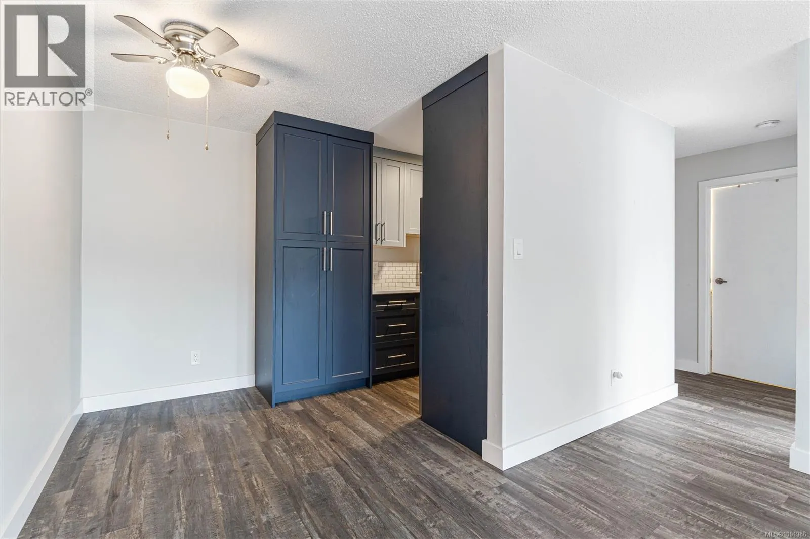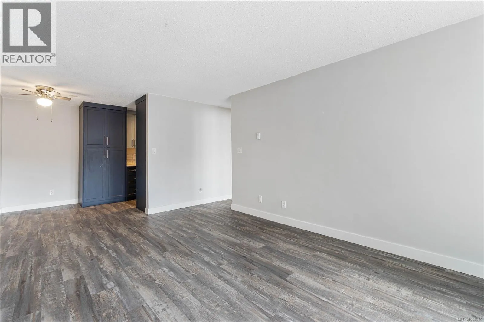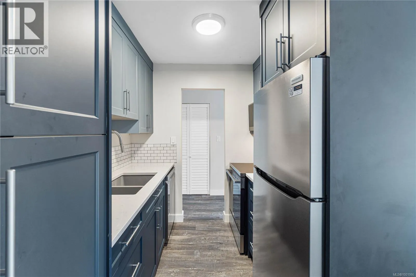 Affordable ocean view living! Located directly across the street from Departure Bay Beach, this thoughtfully renovated 1 bed, 1 bath condo at Seaside Place offers lovely views from your covered balcony. High-quality custom kitchen & bath renovations include soft-close cabinetry with designer finishes, quartz countertops (Cambria Weybourne), pull-out pantry storage, and updated luxury vinyl plank flooring, as well as in-suite laundry. Modern neutral colours, new closet doors & fixtures create a fresh, move-in ready feel. Functional layout with spacious bedroom, galley kitchen, 4-pc bath, and in-suite storage. Walk to parks, shops, transit & more. Well-managed strata with low fees. 1 indoor cat allowed; rentals permitted. (id:27476)