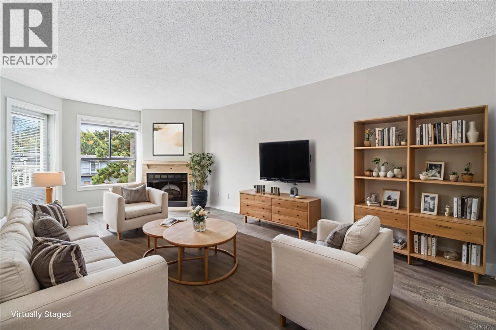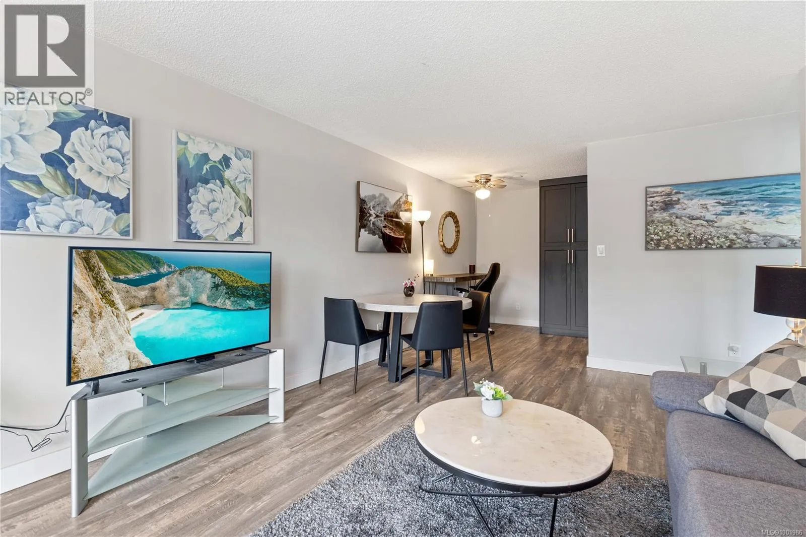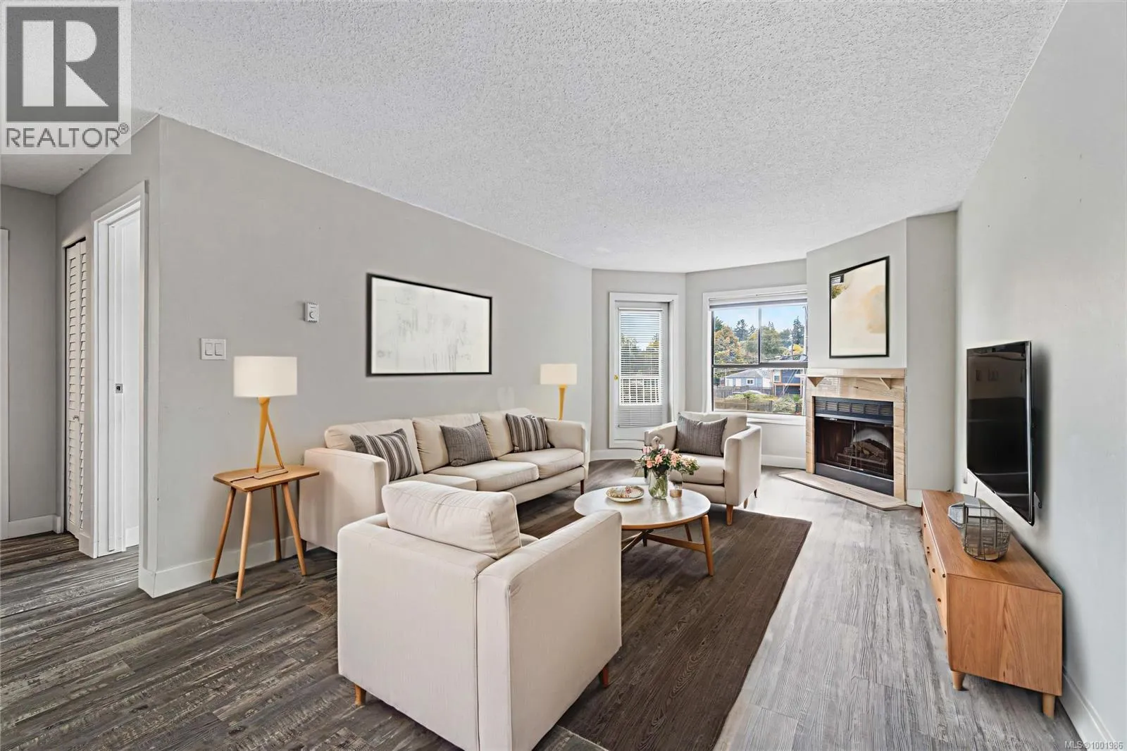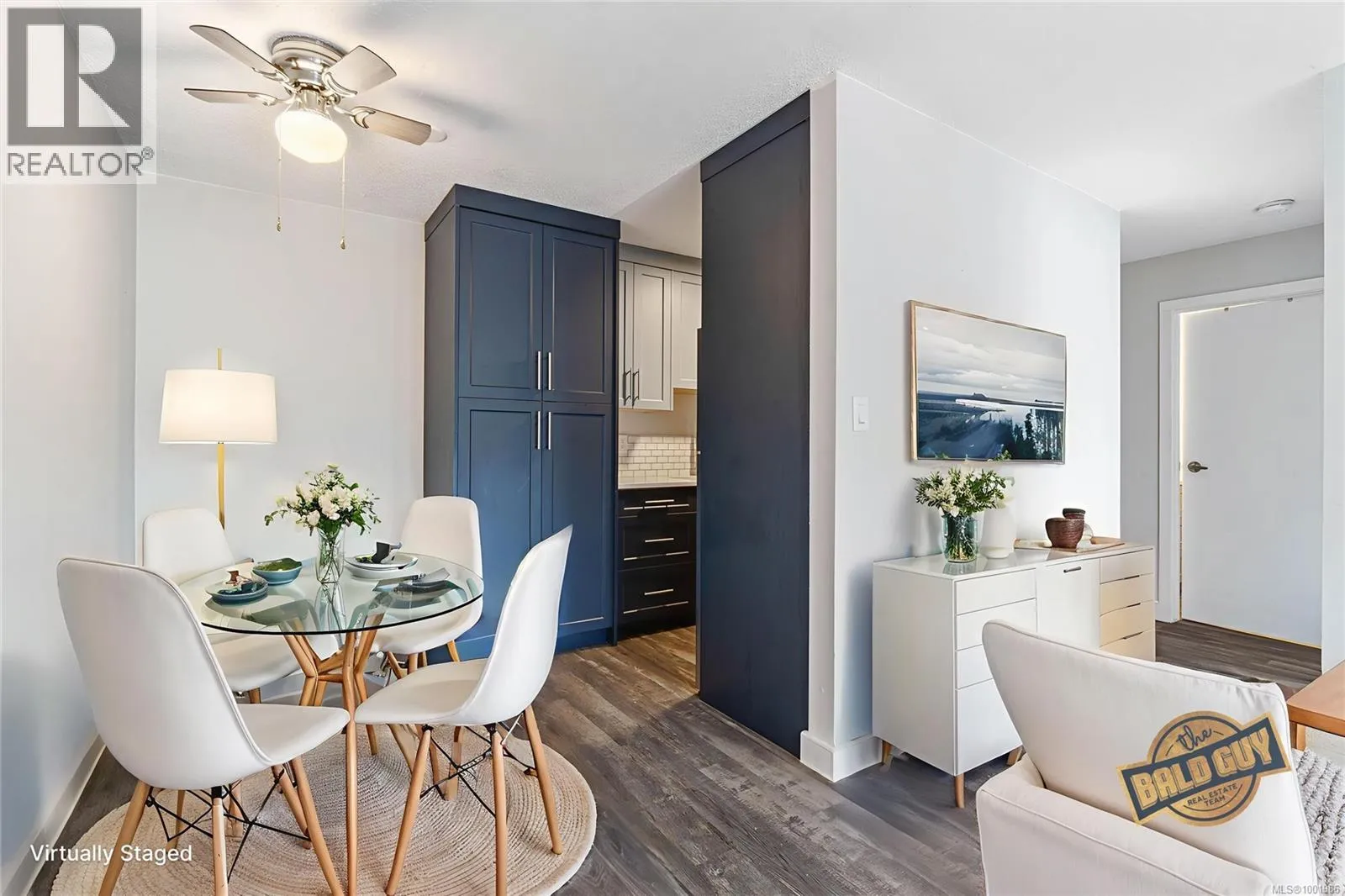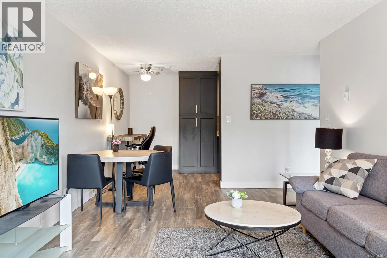 Affordable ocean view living! Located directly across the street from Departure Bay Beach, this thoughtfully renovated 1 bed, 1 bath condo at Seaside Place offers lovely views from your covered balcony. High-quality custom kitchen & bath renovations include soft-close cabinetry with designer finishes, quartz countertops (Cambria Weybourne), pull-out pantry storage, and updated luxury vinyl plank flooring, as well as in-suite laundry. Modern neutral colours, new closet doors & fixtures create a fresh, move-in ready feel. Functional layout with spacious bedroom, galley kitchen, 4-pc bath, and in-suite storage. Walk to parks, shops, transit & more. Well-managed strata with low fees. 1 indoor cat allowed; rentals permitted. (id:27476)