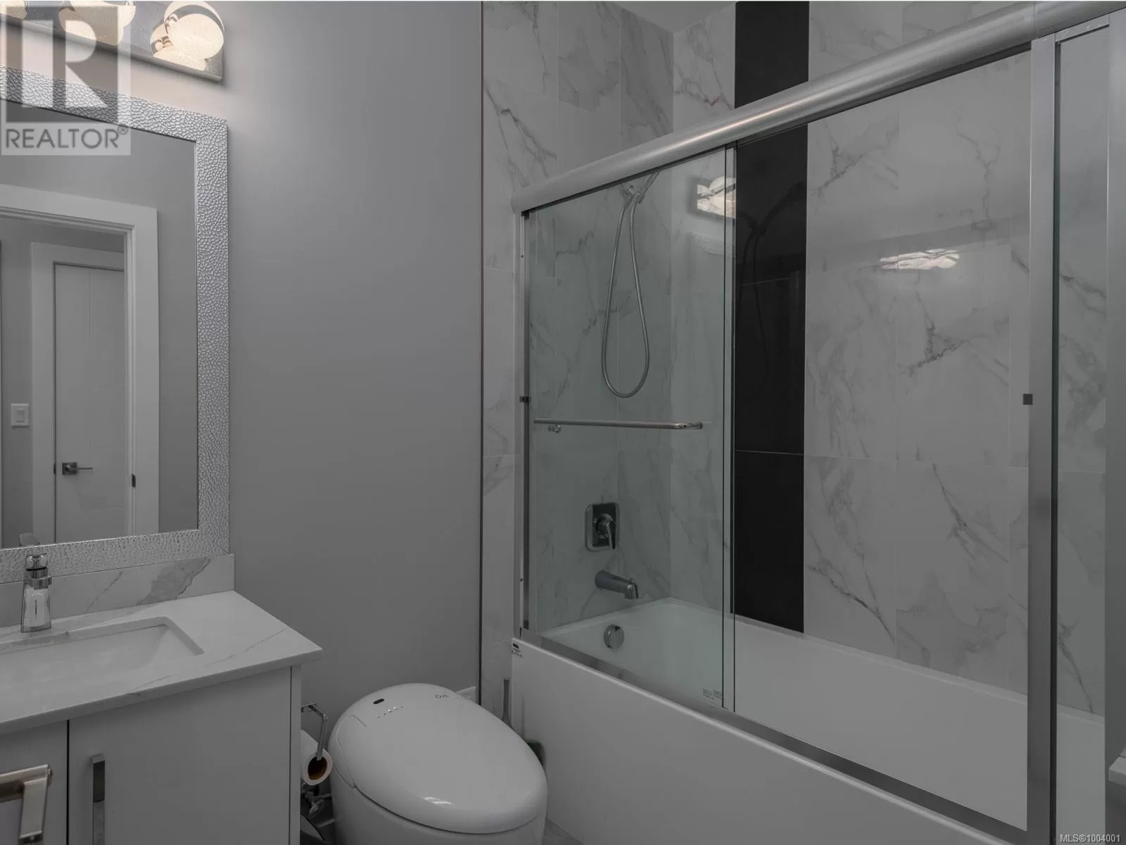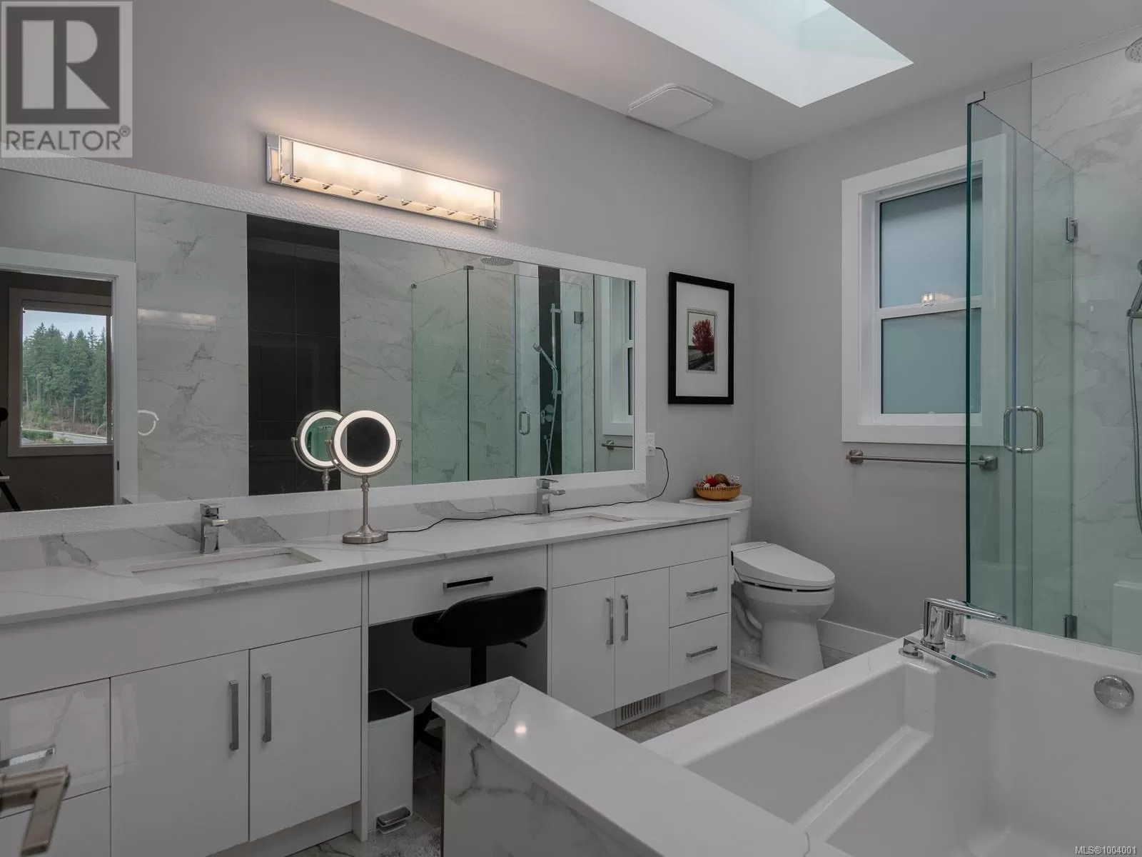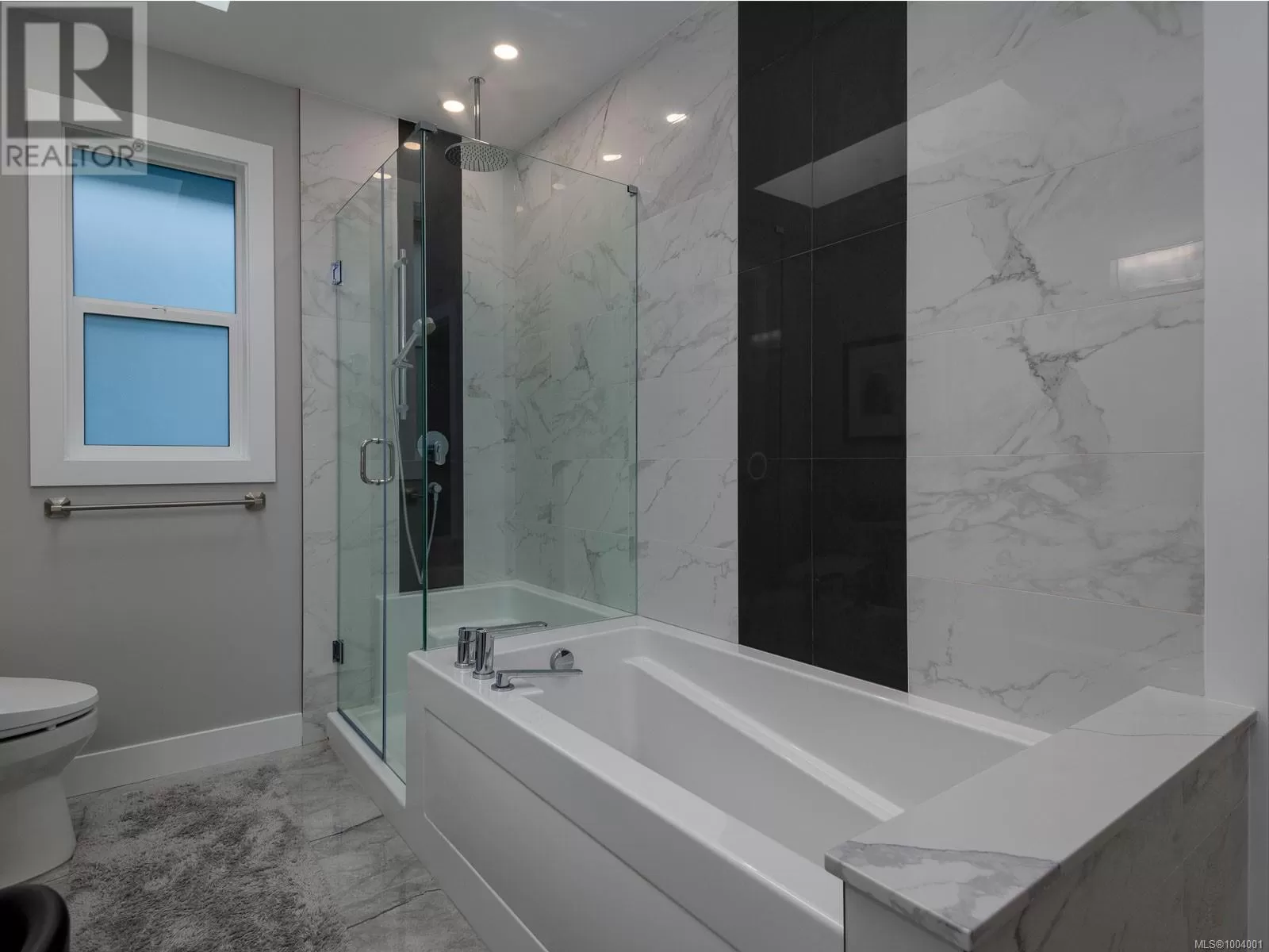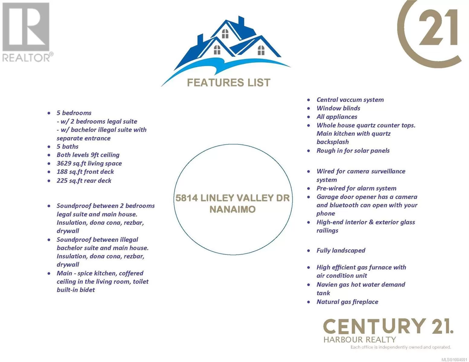 NO GST! 3 years old beautiful North Nanaimo home with legal 2 bedrooms suite and self-contained bachelor suite great mortgage helper! Main kitchen offers plenty of cabinets space, huge island, quartz countertop/backsplash, built in hutch, spice kitchen, and balcony off the kitchen. Very spacious living room with gas fireplace, built in entertainment unit, wainscot finishing, and balcony off the living room. Main level also offers 3 bedrooms with 2 bedrooms having ensuite bathrooms. Master bedroom has full walk in closet and beautiful 5 pcs ensuite with soaker tub. All the bathroom tiles are heated. Lower level is the spacious 2 bedrooms suite and bachelor suite both with insulation, dona cona, rezbar, and drywall for soundproofing. Home is equipped with gas furnace, air conditioning unit, Navien gas hot water on demand, quartz countertop throughout, heated tiles, hardi plank siding, and much more. Great location close to all North Nanaimo amenities, and surrounded by park and trails. (id:27476)