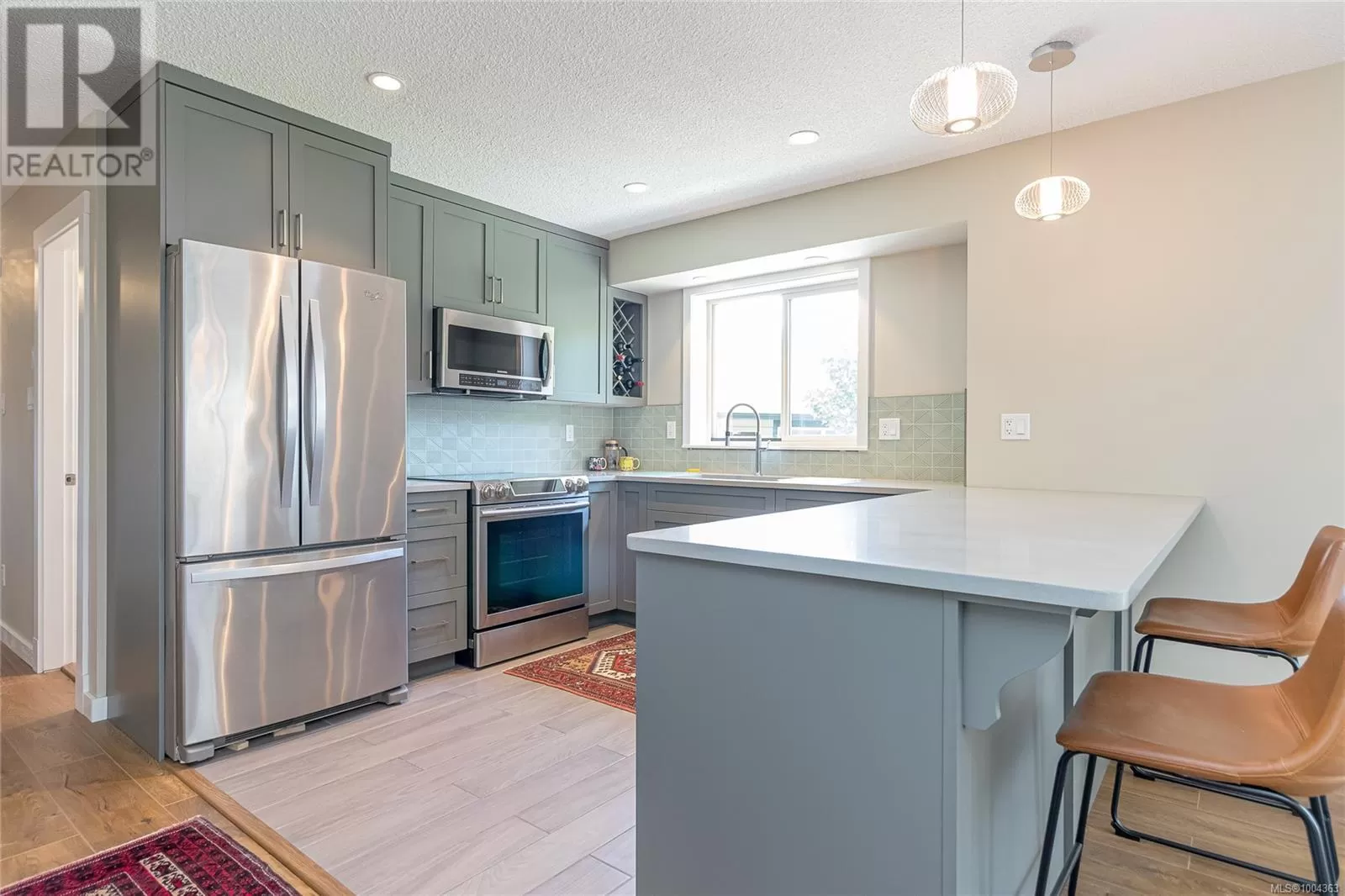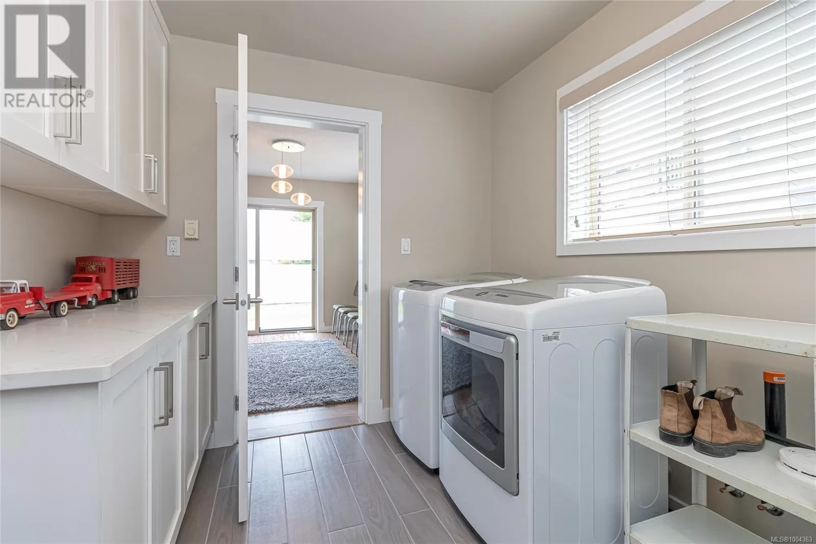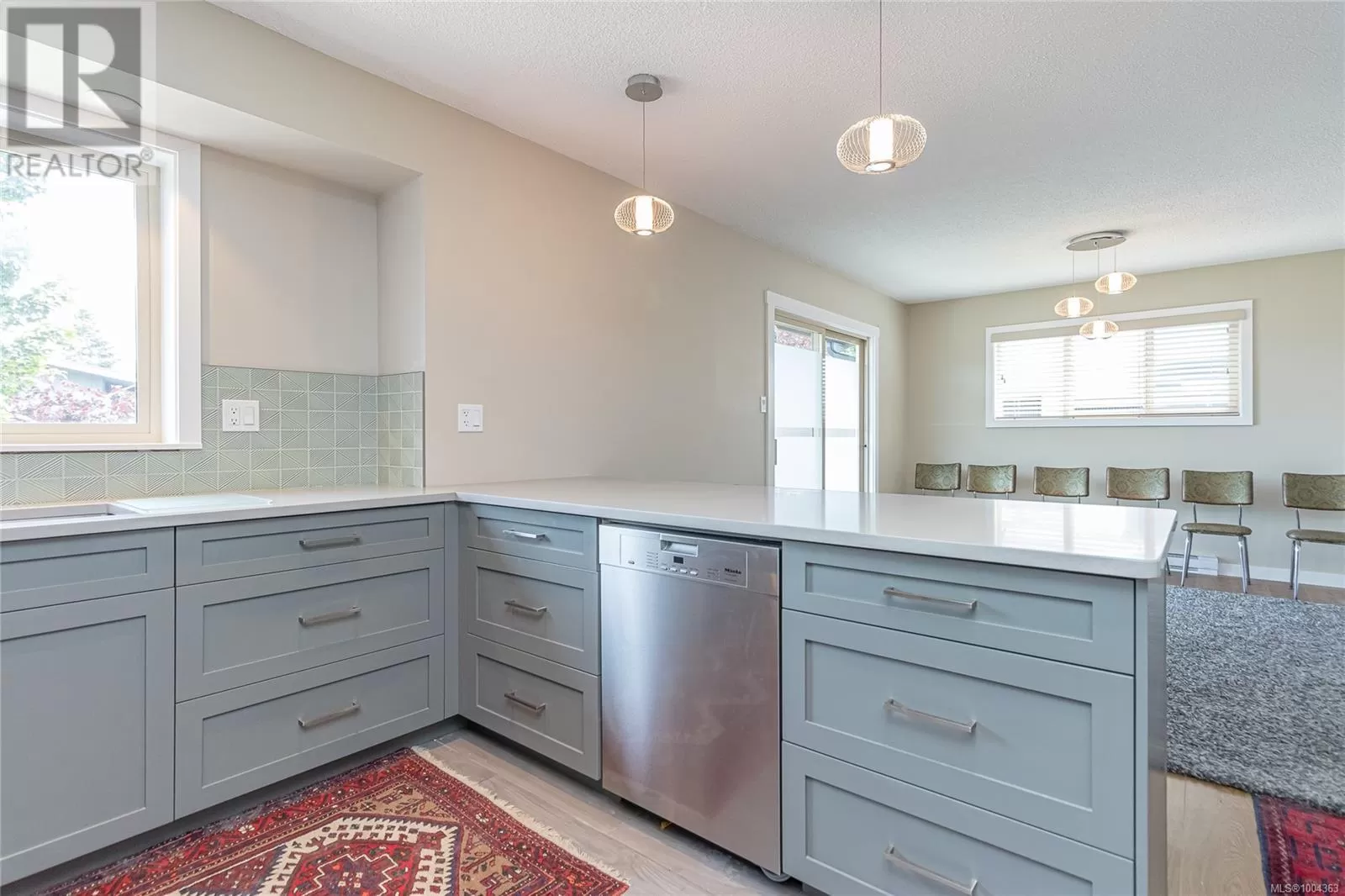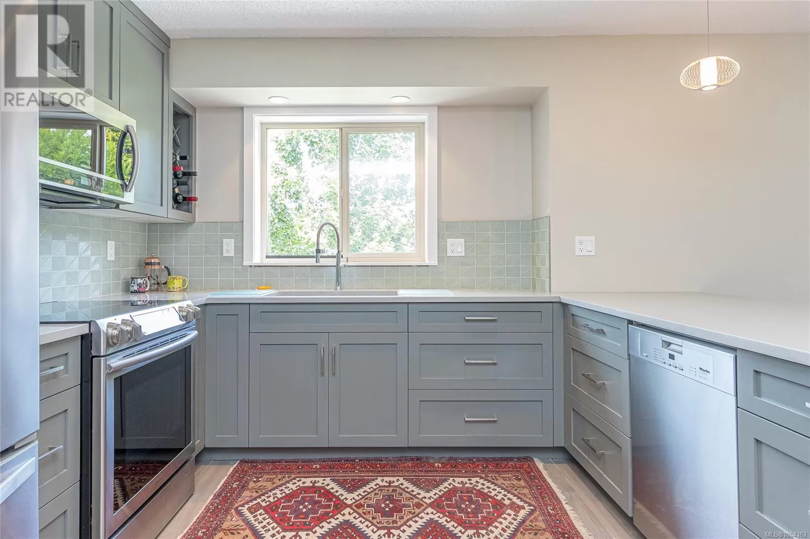 Located in the sought-after Cilaire neighbourhood of Departure Bay, this 3-bed, 2-bath rancher offers an exceptional blend of thoughtful design and modern convenience. A refined interpretation of mid-century modern minimalism, every element has been curated to the smallest detailâfrom the McLaren lighting to the custom accent tiles and solid countertops. The kitchen features a Miele dishwasher, Samsung microwave and range combo, Whirlpool fridge, and tiled floors. Smart home technology includes WeMo-controlled lighting and a Blink security system, while the spa-like bathrooms boast heated tile floors. Enjoy the oversized attached single garage plus a powered 18x28 detached workshop with 60-amp and 220V serviceâperfect for hobbies or home business. The private, beautifully landscaped yard is pre-wired for garden lighting and offers a peaceful retreat. Low-maintenance, move-in ready, and centrally located near shopping, transit, and amenitiesâthis is refined one-level living at its best. (id:27476)