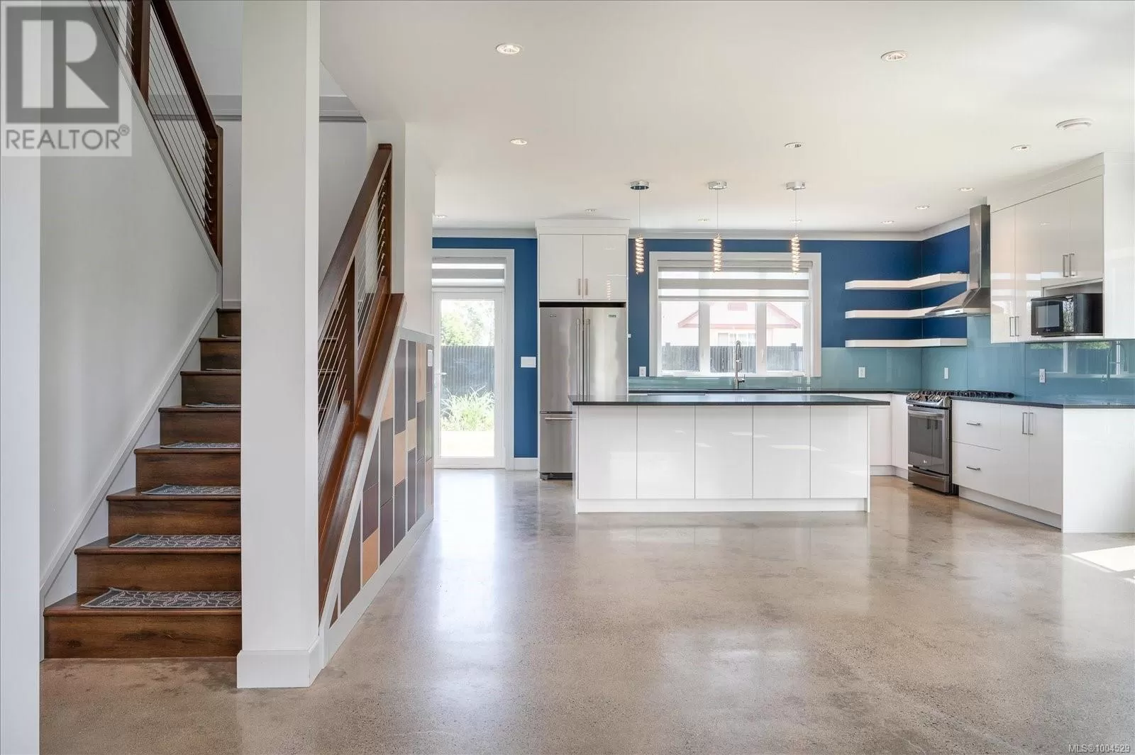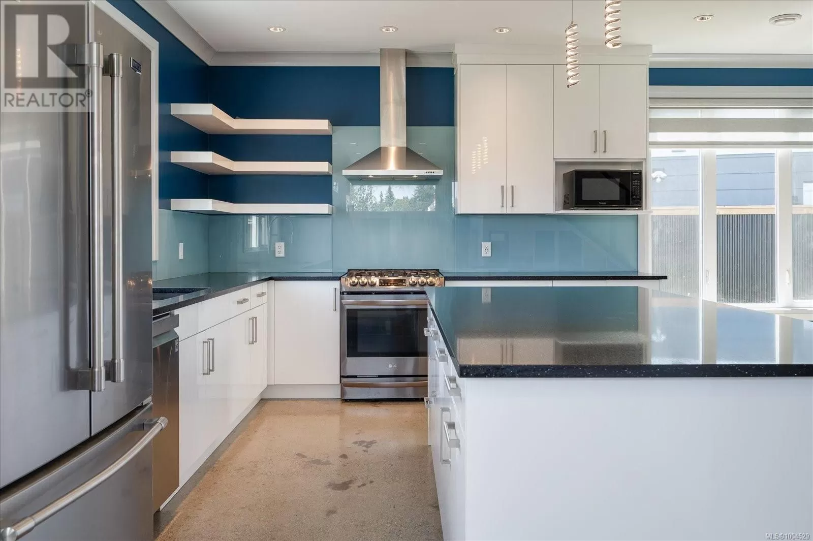 Custom-built 2019 home located in popular Hawthorne Estates. Designed with families in mind, this spacious open-concept home features 3 bedrooms, 3 baths and a layout that blends comfort with functionality. Youâll fall in love with the chic, heated concrete floors and sleek modern finishes throughout. The chef-inspired kitchen is a showstopperâcomplete with premium cabinetry, quartz countertops, stainless steel appliances (including a gas range), and a massive island with bonus built-in storage. The bright breakfast nook and soaring vaulted ceilings in the great room create the perfect setting for everyday living and entertaining. Upstairs discover two good sized bedrooms, a 4-pce bath, a roomy laundry room and versatile flex space opening to a front deck overlooking serene mountain and park views. The spacious primary bedroom including walk-in closet and an impressive 3-pce ensuite with spectacular walk-in shower. Extras include on-demand hot water, air conditioning, blinds, and a double garage. Situated on a level, fully fenced and landscaped lot with irrigation and a covered patio ideal for year-round enjoyment. Just minutes from VIU, Buttertubs Marsh, recreation centers, shopping, transit, and moreâthis convenient location has it all! Measurements and data approximate. Buyer to verify if important. (id:27476)