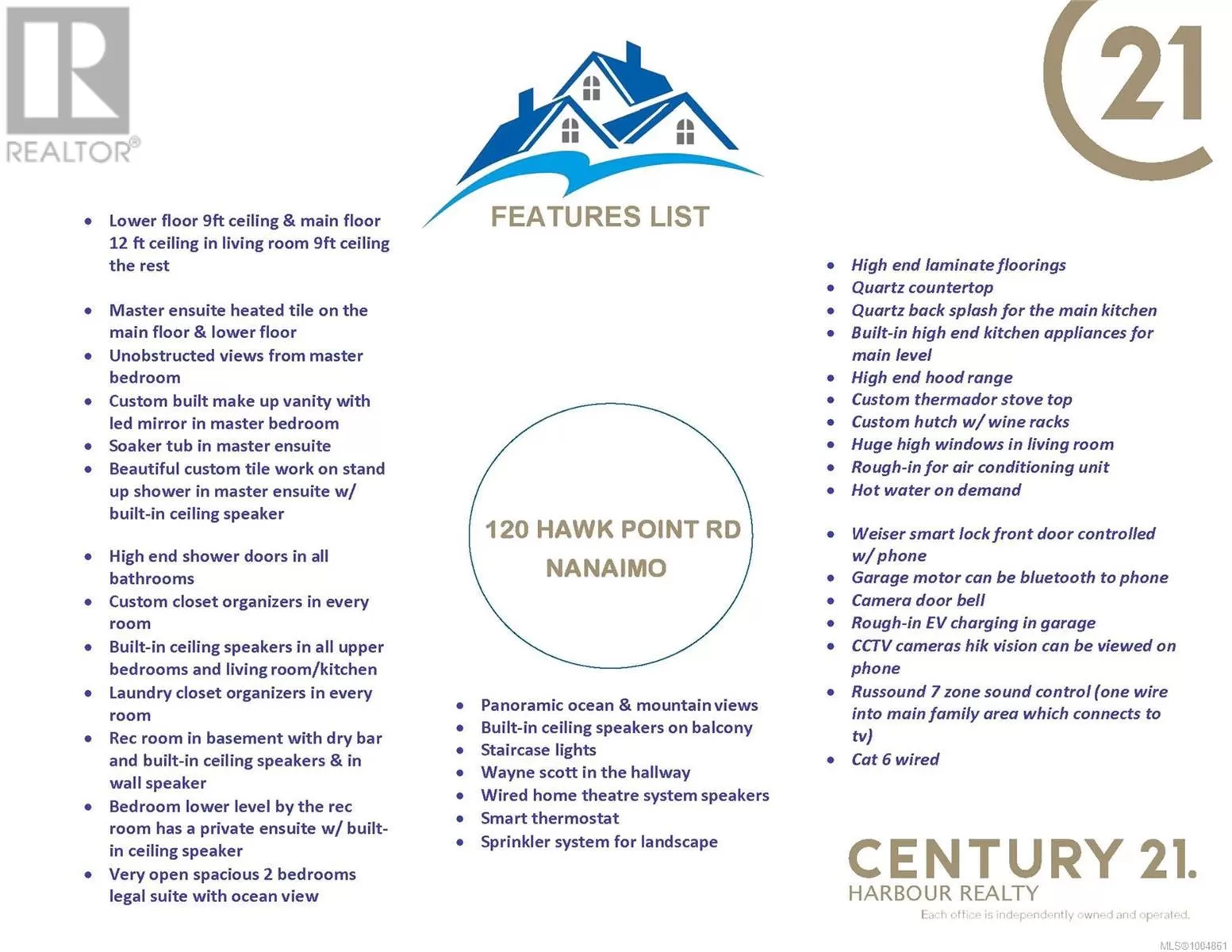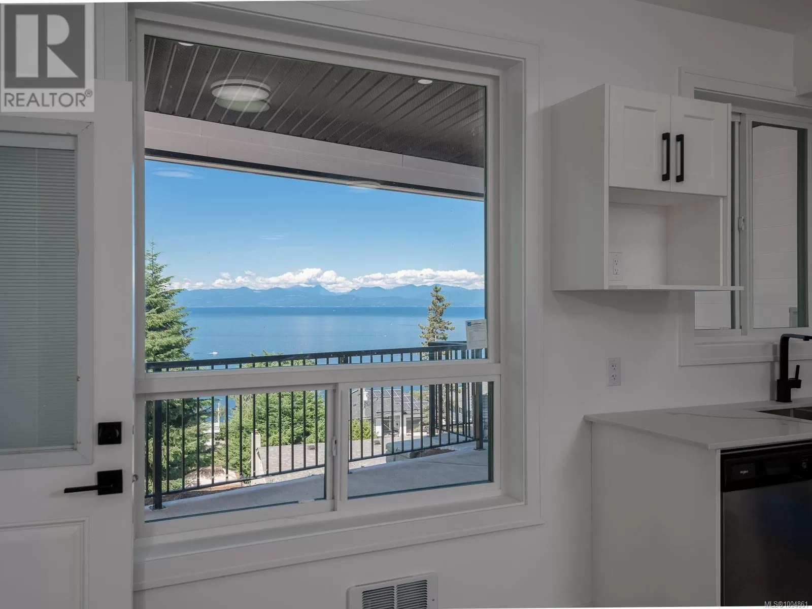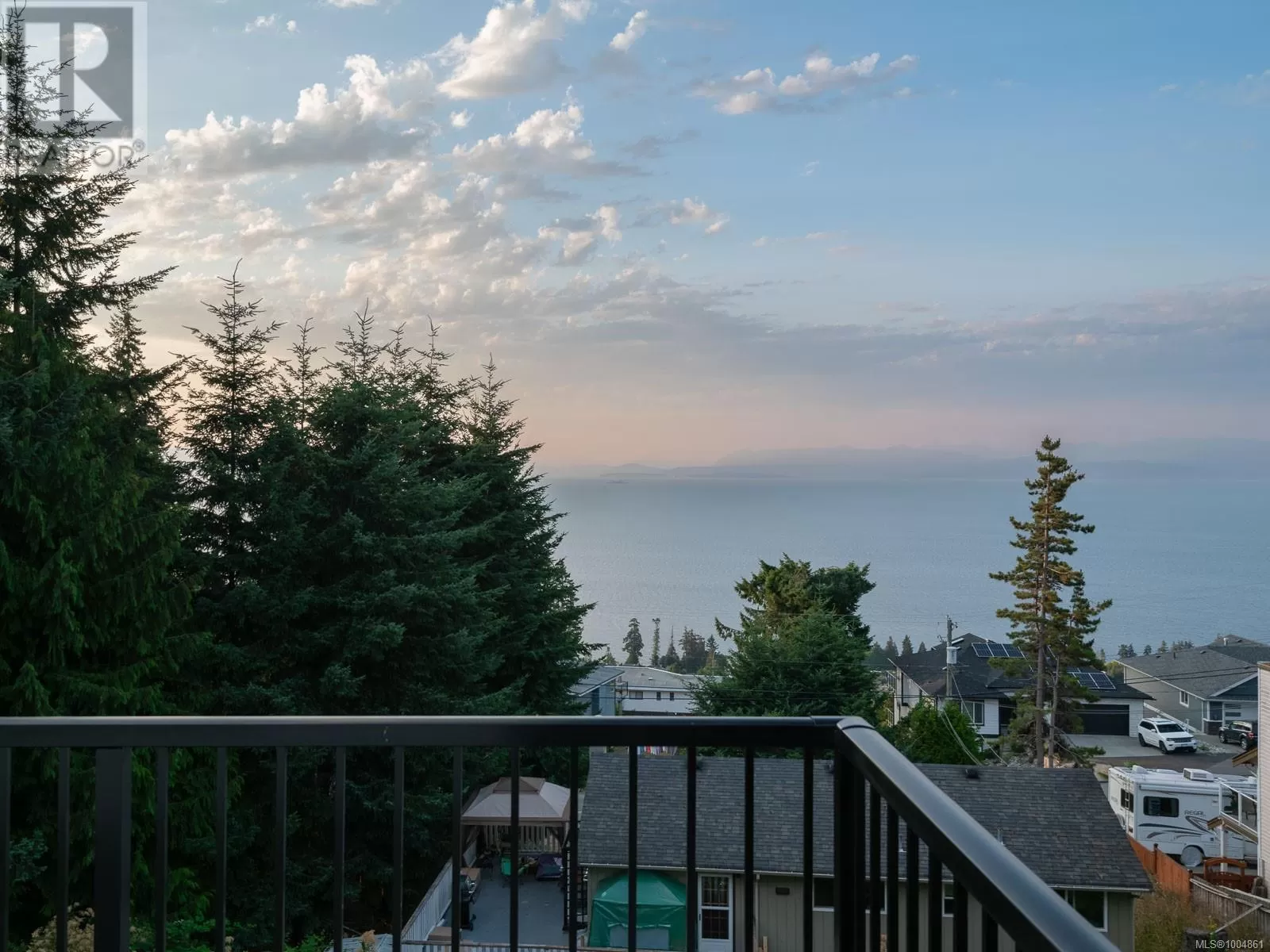 Pristine OCEAN VIEW Main Level Entry Home with legal 2-bedroom basement suite in North Nanaimo! Main floor offers 2 bedrooms including the Master with walk-in closet, built in make up vanity with LED mirror, 5 pcs ensuite including soaker tub, and stand-up shower with all customize tile work. All rooms on main floor have built in ceiling speakers. 12 ft high ceiling spacious living room with electric fireplace and customize shelving/cabinets. Spacious built in kitchen with all high-end appliances flowing to the dining room with customized built in hutch. Off the dining room is the very spacious balcony with built in speaker and beautiful views of the ocean/mountain great for entertainment. Lower level offers separate entrance rec room with built in ceiling/wall speaker and dry bar. Also, another bedroom with private ensuite. The 2 bedrooms suite is very spacious with private patio and views of the ocean/mountain. Great location close to all of North Nanaimo amenities. (id:27476)