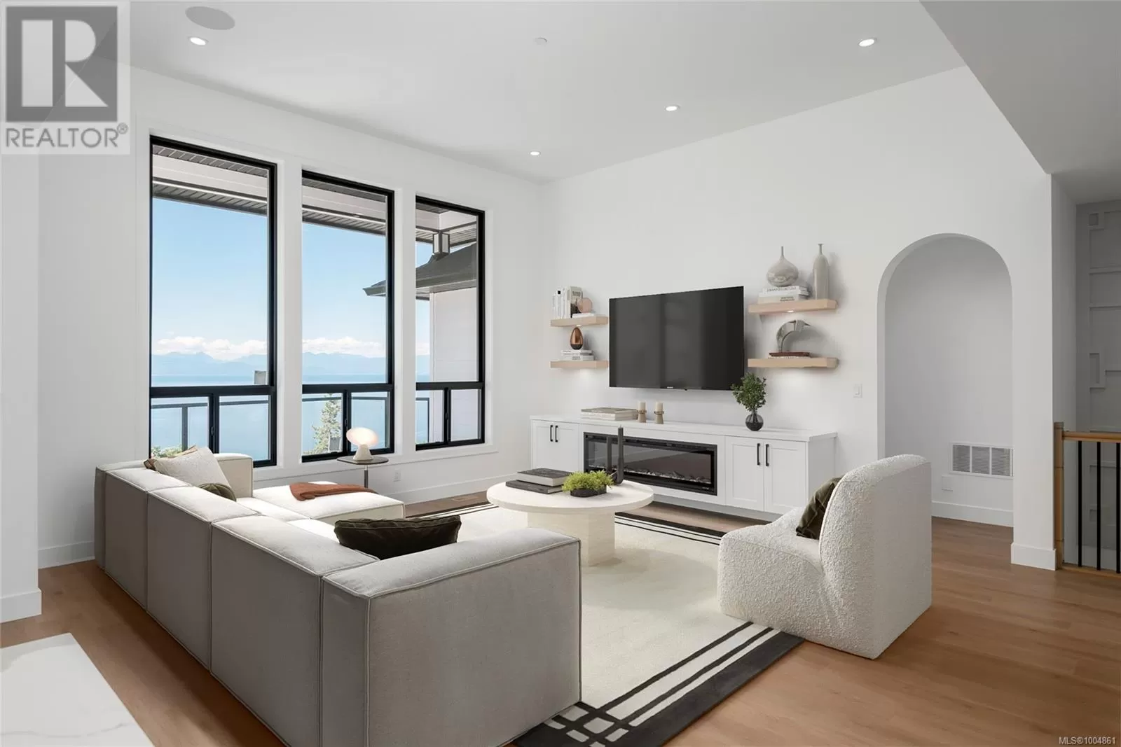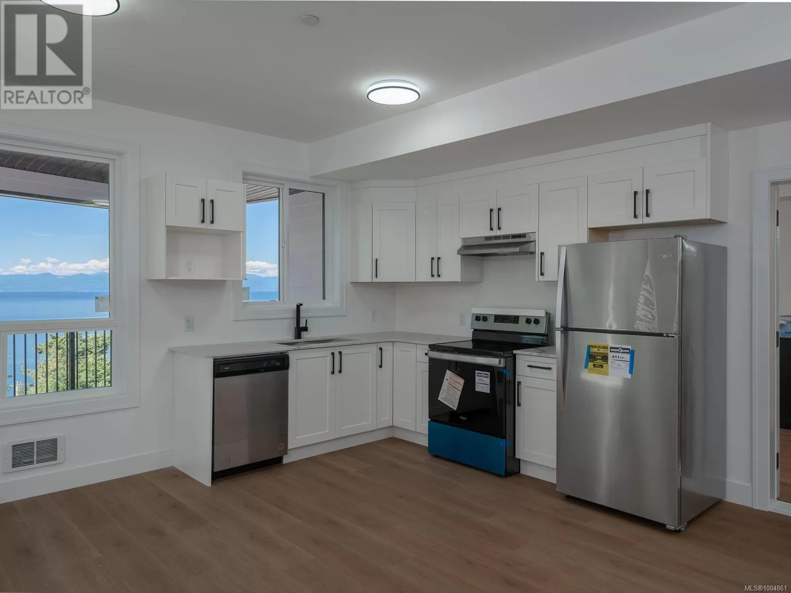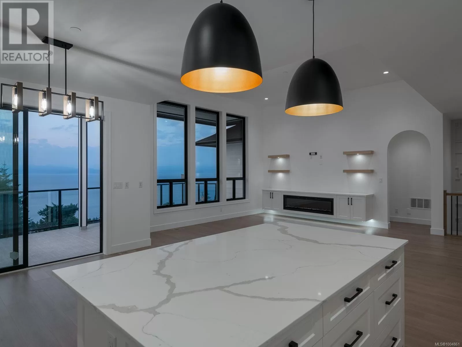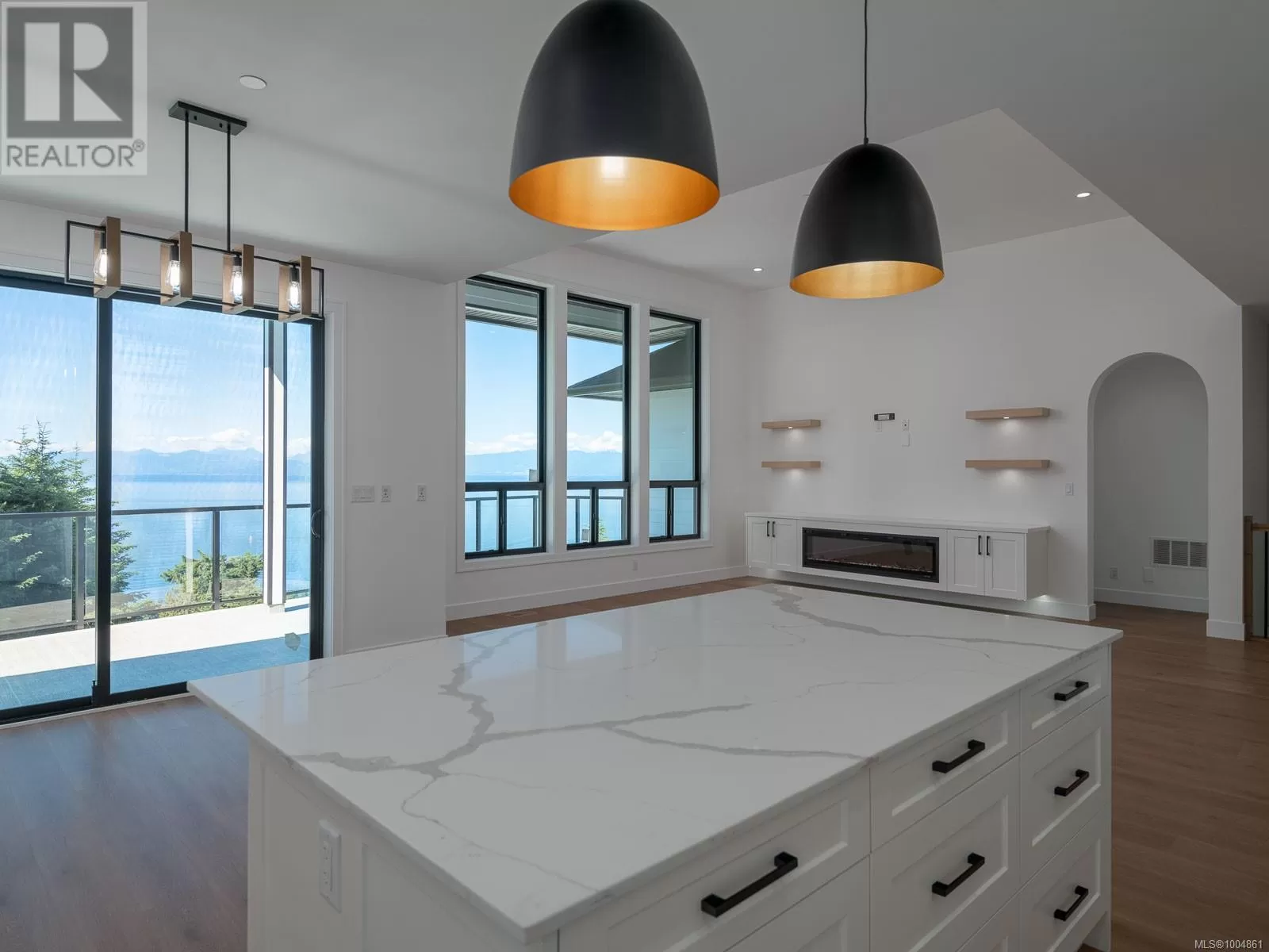 Pristine OCEAN VIEW Main Level Entry Home with legal 2-bedroom basement suite in North Nanaimo! Main floor offers 2 bedrooms including the Master with walk-in closet, built in make up vanity with LED mirror, 5 pcs ensuite including soaker tub, and stand-up shower with all customize tile work. All rooms on main floor have built in ceiling speakers. 12 ft high ceiling spacious living room with electric fireplace and customize shelving/cabinets. Spacious built in kitchen with all high-end appliances flowing to the dining room with customized built in hutch. Off the dining room is the very spacious balcony with built in speaker and beautiful views of the ocean/mountain great for entertainment. Lower level offers separate entrance rec room with built in ceiling/wall speaker and dry bar. Also, another bedroom with private ensuite. The 2 bedrooms suite is very spacious with private patio and views of the ocean/mountain. Great location close to all of North Nanaimo amenities. (id:27476)