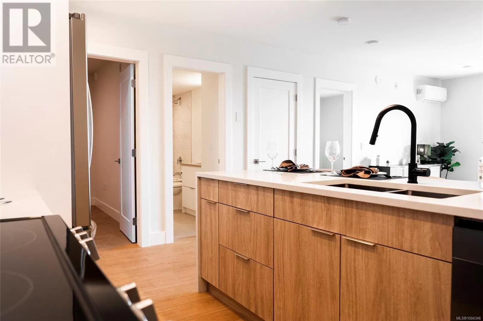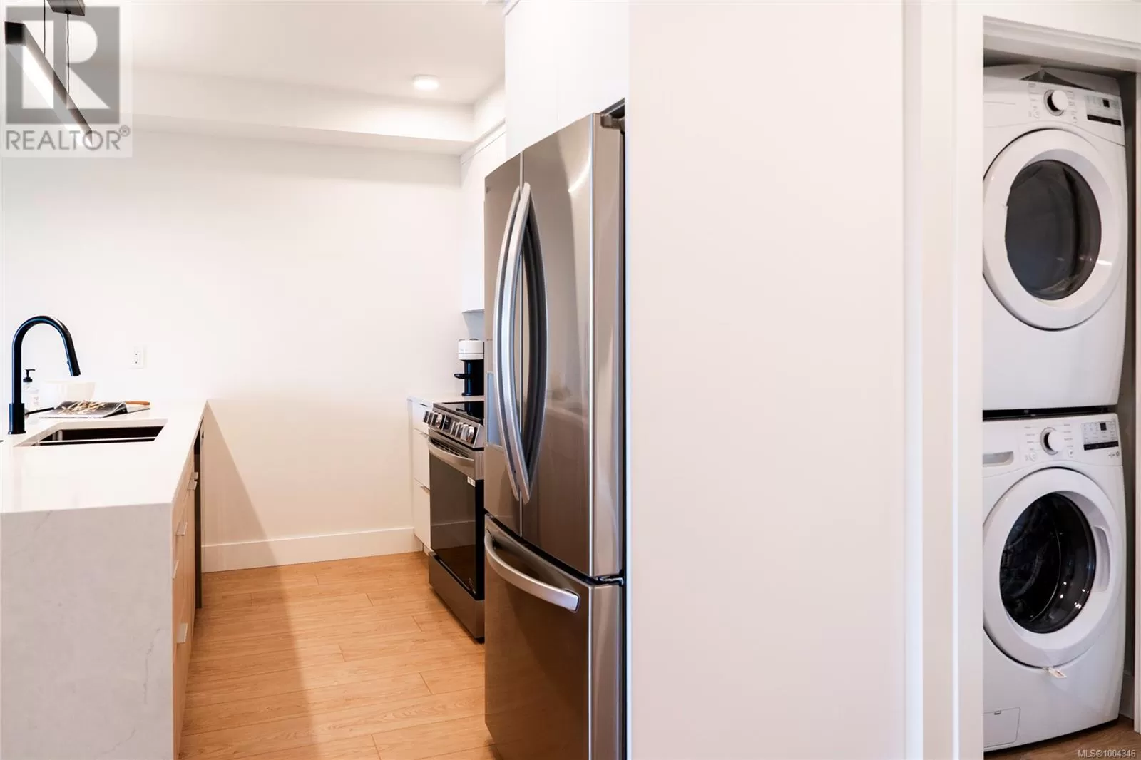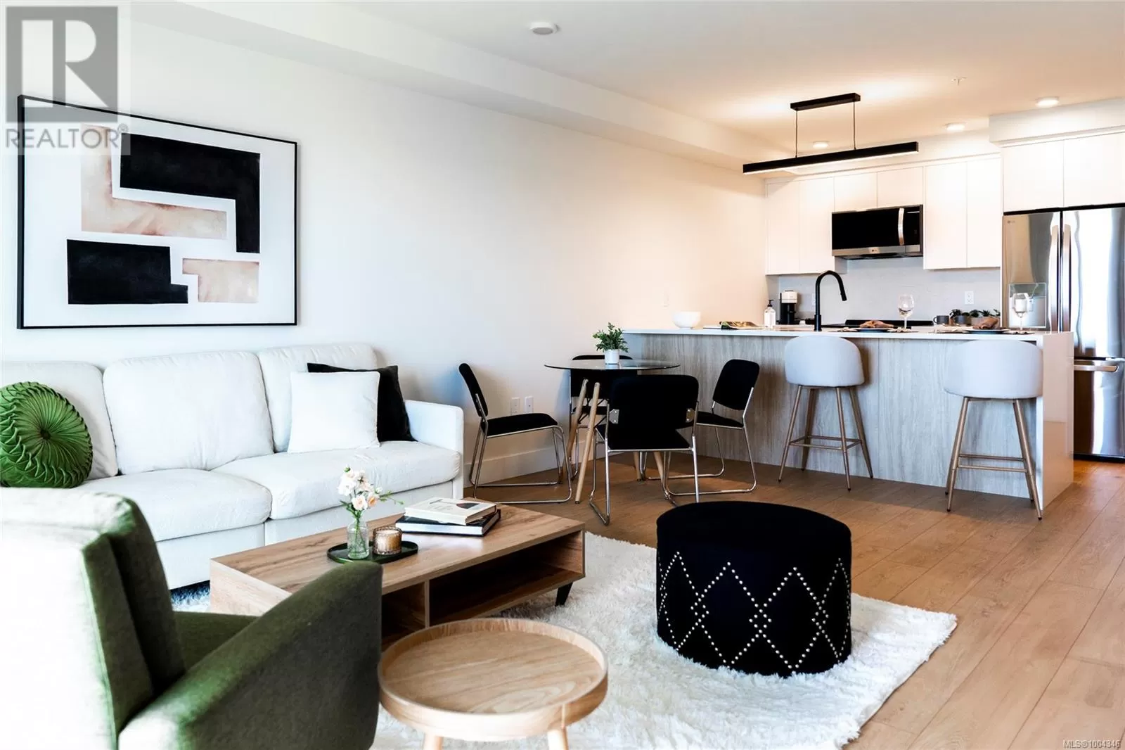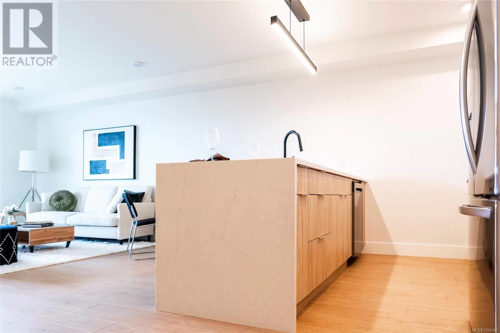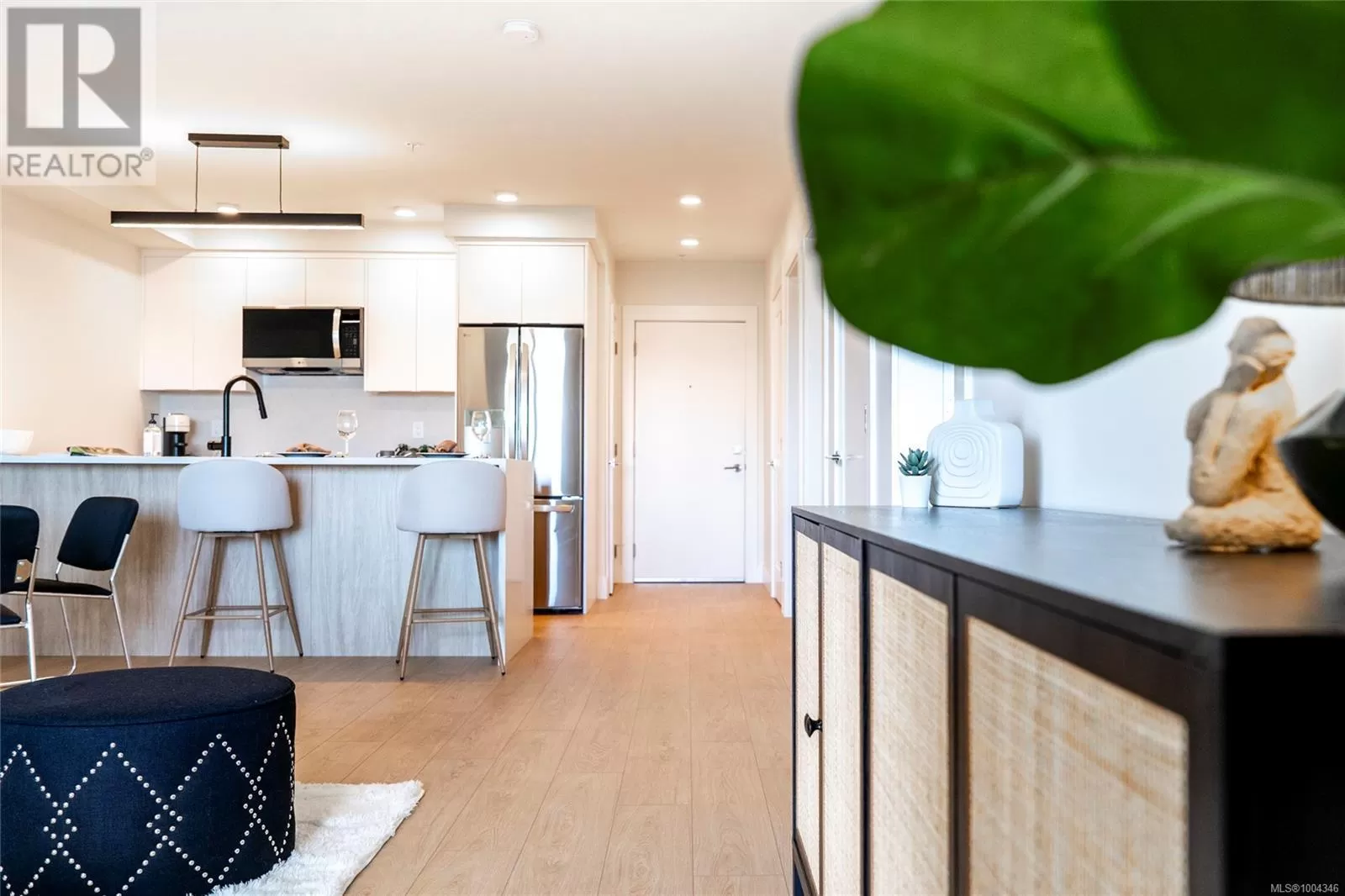 Welcome to Lumina in Harborview District, another principal property community in the heart of downtown Nanaimo, where city living meets coastal charm. Steps from the harbourfront, seawall, cafés, shops, parks, and Hullo Ferries, Lumina places you in the center of a growing, evolving district. Enjoy your mornings on the rooftop patio surrounded by lush greenspace and expansive ocean views. This beautifully designed 2-bedroom, 1-bath home features bright, open living with views of the harbour, city, and mountains â a striking blend of coastal beauty and urban energy. The kitchen stands out with waterfall-edge countertops, sleek cabinetry, and contemporary lighting, all contributing to a clean, modern aesthetic. Whether itâs a stroll along the waterfront, coffee with friends, or a rooftop sunset, this home connects you to the best of downtown â and the exciting future unfolding around it. (id:27476)
