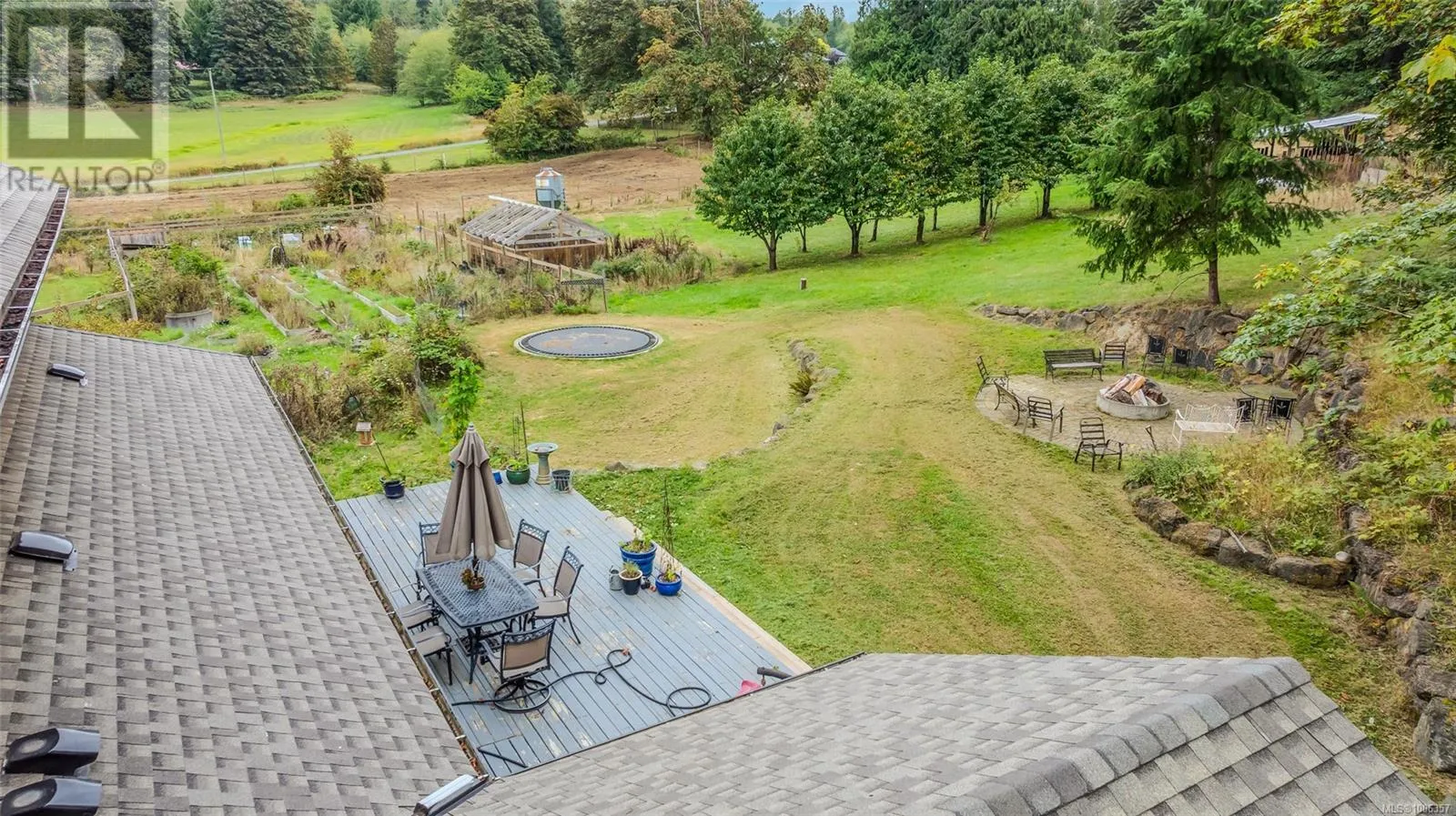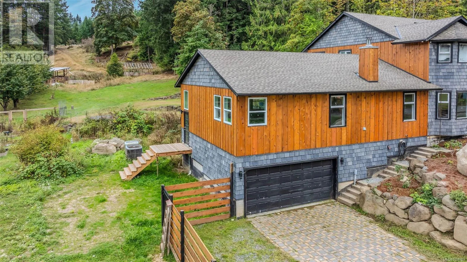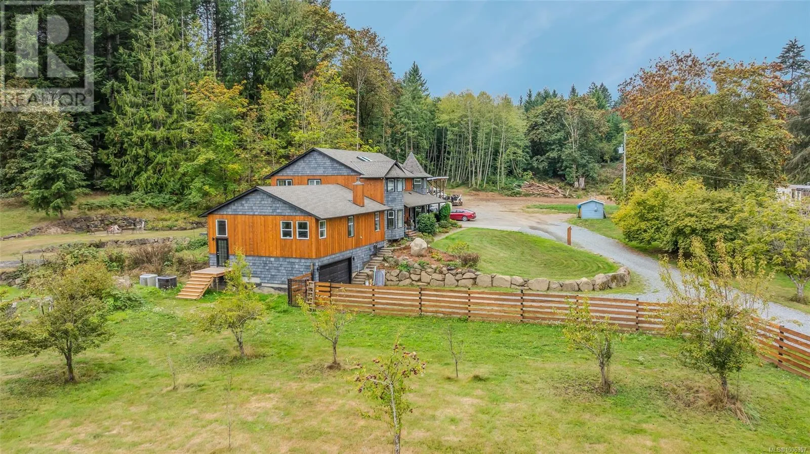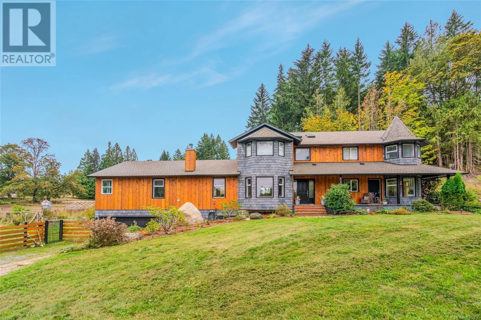 Discover this beautifully renovated, spacious custom farmhouse perfect for modern living and multi-generational families. The home features a main-floor primary suite, five additional bedrooms upstairs, and two convenient laundry roomsâone on each level. High-end acacia wood floors and an open-concept design create a warm, inviting atmosphere for entertaining. Recent updates include a new roof, siding, and more. Set on 31.5 acres of productive farmland, it offers hay fields, fruit and hazelnut trees, and 3+ acres of prime soil for blueberries or other crops. The long driveway leads to a private, mostly level meadow with a gentle rise to the westâideal for horses or livestock. Excellent water quality from a drilled well and a pond suitable for trout farming add to the farmâs appeal. Located near schools, shopping, and just 12 minutes from Nanaimo. (id:27476)