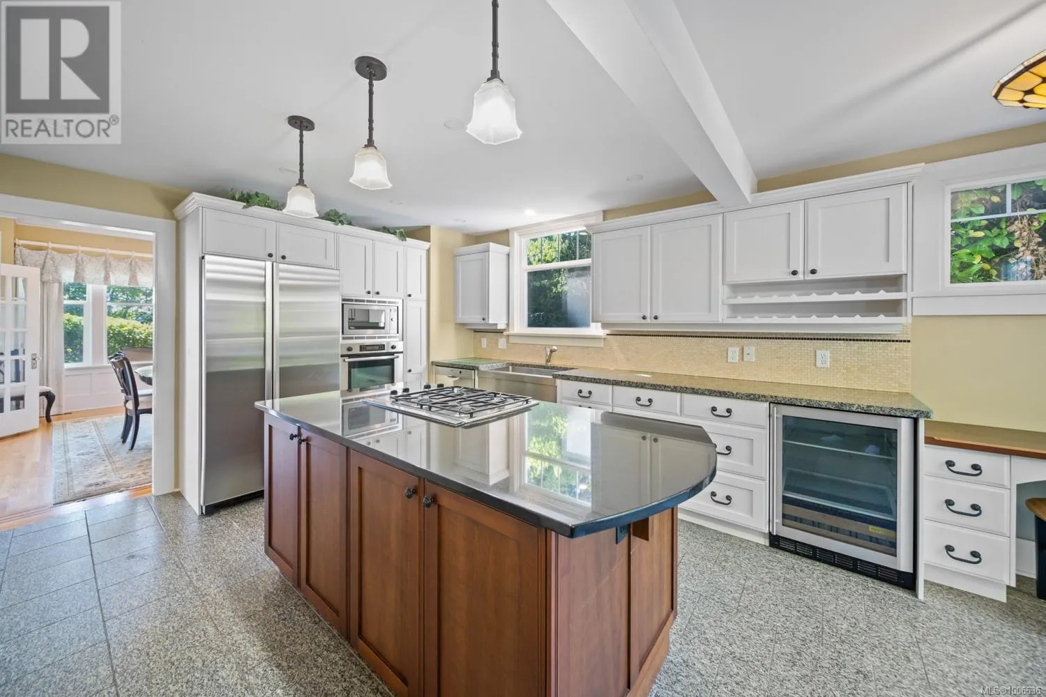 Welcome to 135 Newcastle Avenue a rare blend of heritage, character, and stunning harbour views in the heart of Nanaimo. Built in 1923 by a prominent architect, this exceptional 4-bedroom, 3-bathroom home has been thoughtfully preserved and extensively updated, offering over 3,200 sq ft of timeless design and modern comfort within itâs 8300 sq ft property. Situated on a quiet street, the property offers panoramic views of Newcastle Island, Protection Island, and the bustling Nanaimo Harbour. The seawall path directly in front of the home provides scenic walks to the Nanaimo Yacht Club, downtown, and parks with a crabbing pier and ferry to Newcastle Island. For those traveling to the mainland, both the ferry terminal and seaplane dock are just a 5-minute drive away offering the perfect balance of peaceful island living with convenient access to Vancouver and beyond. Inside, discover original fir floors, handcrafted mouldings, coffered ceilings, and a grand staircase that speaks to the homeâs historic roots. The renovated gourmet kitchen features granite countertops, stainless steel appliances, and a large island ideal for entertaining. Upstairs, the primary suite includes a luxurious ensuite with a soaker tub overlooking the water. The finished basement adds a bar, rec room, gas fireplace, and storage space. Outdoor features include a covered front porch, hot tub deck, landscaped yard with a magnolia tree, and a detached garage-turned-games room with pool and ping pong tables. Recent upgrades total over $350,000, including a new front pathway, roof, gutters, exterior paint, and hot water tank. (id:27476)